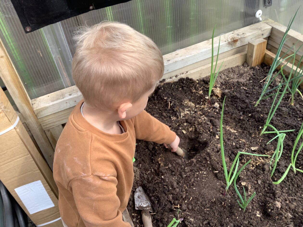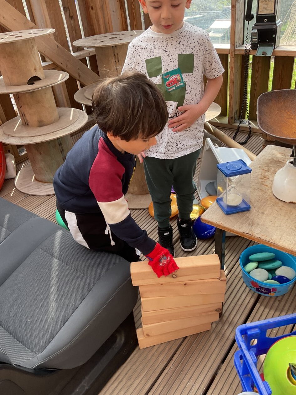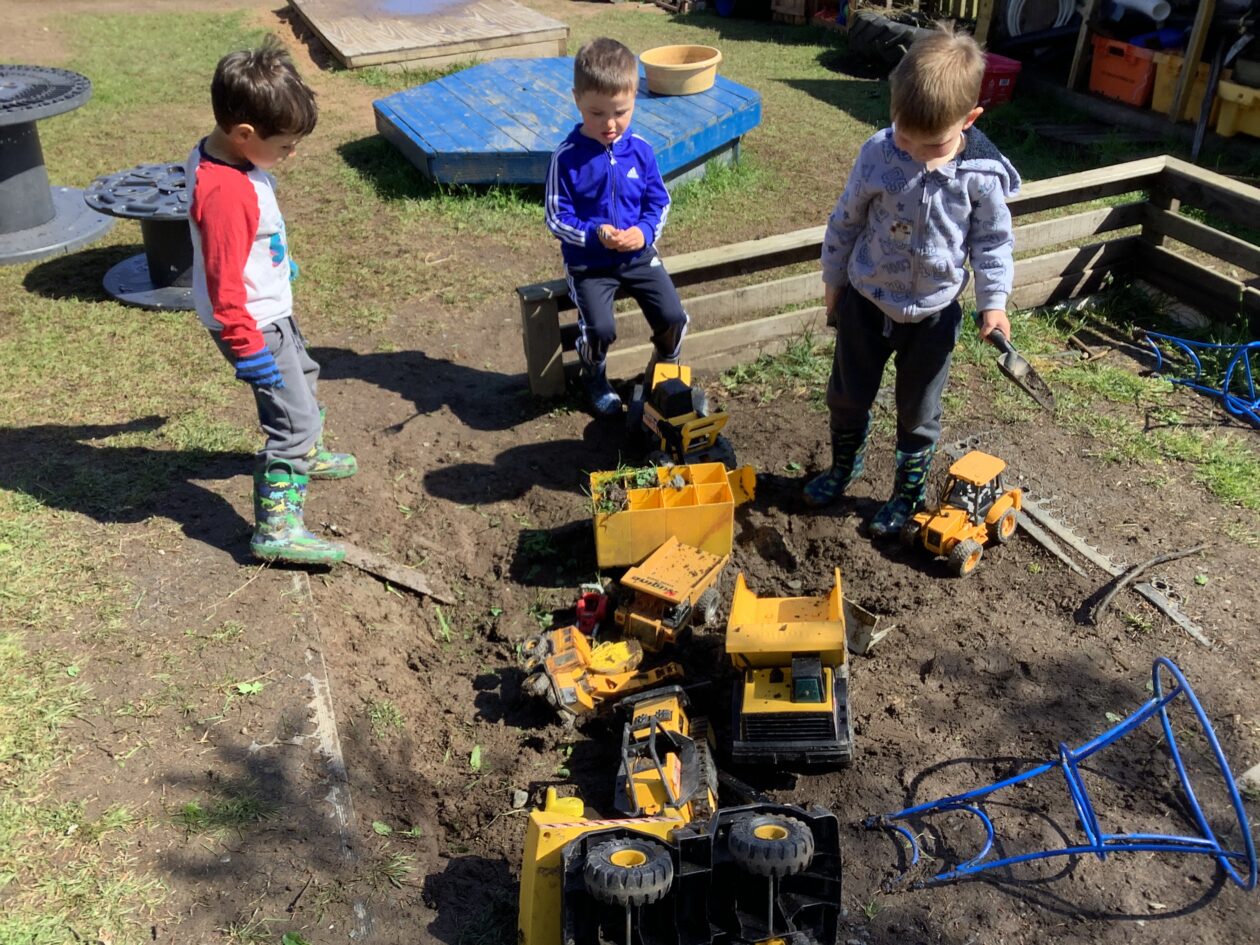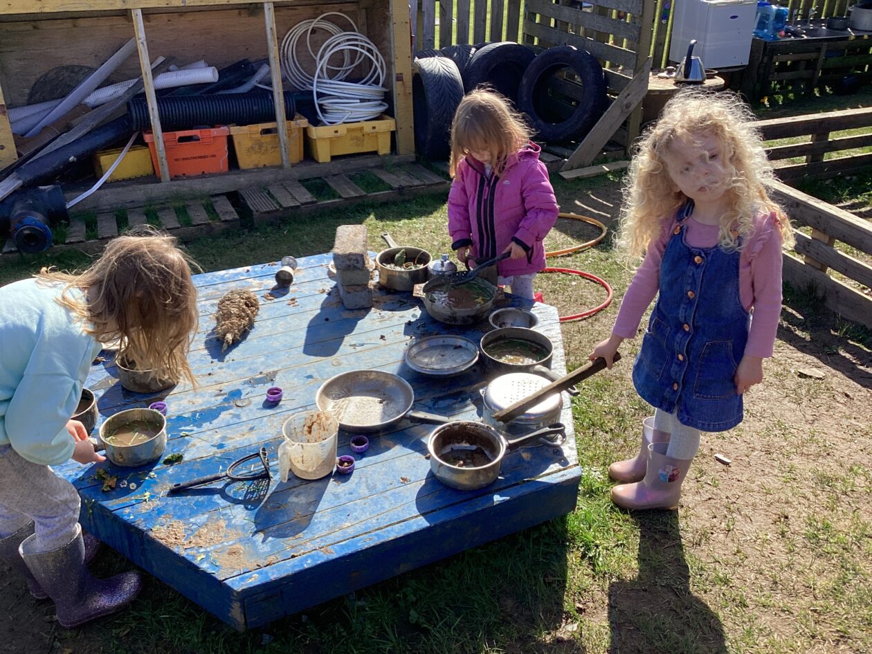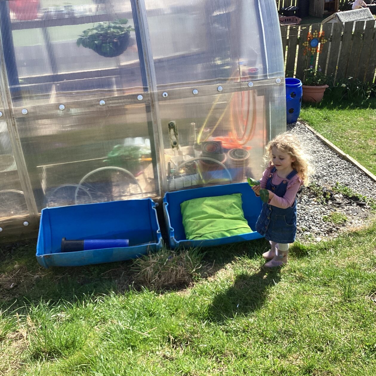We have made the most of the fine weather again this week.  The bairns have planted brussel sprouts, used trowels and forks to dig in the dried up muddy puddle discovering many treasures, built dens, had band practice, created a potion station and a bug hotel.