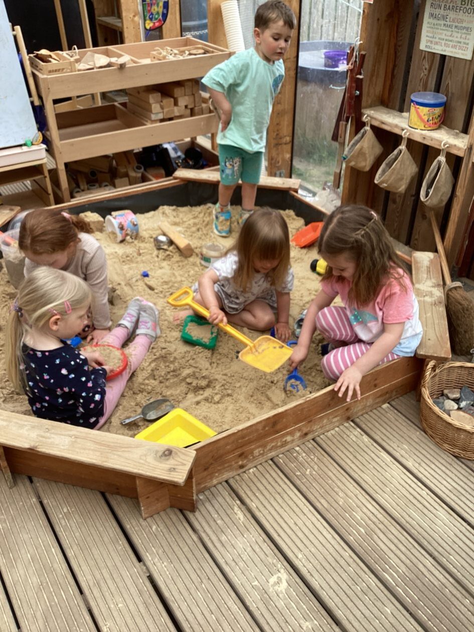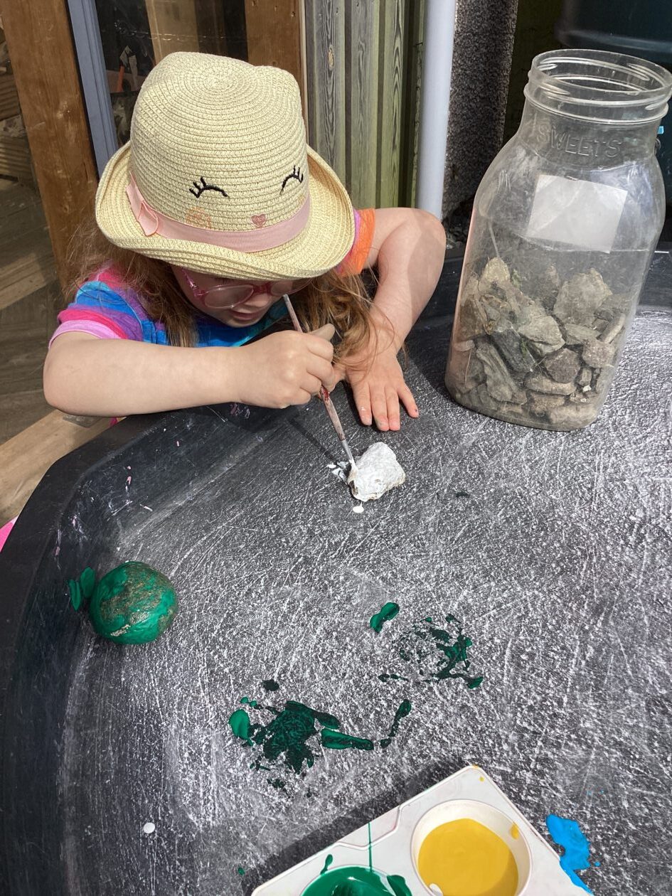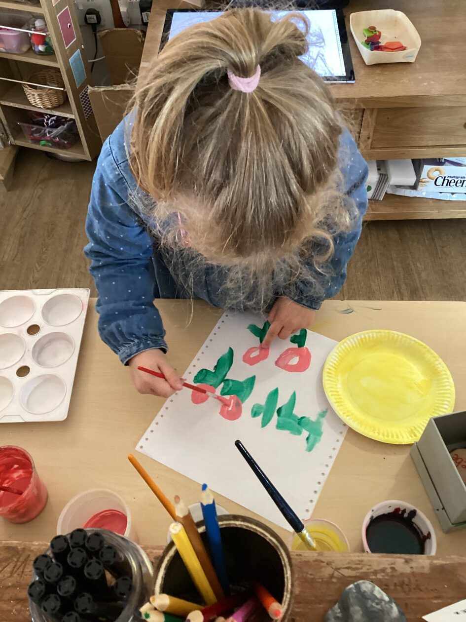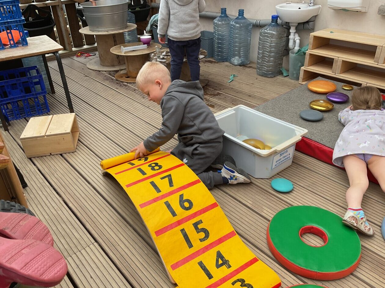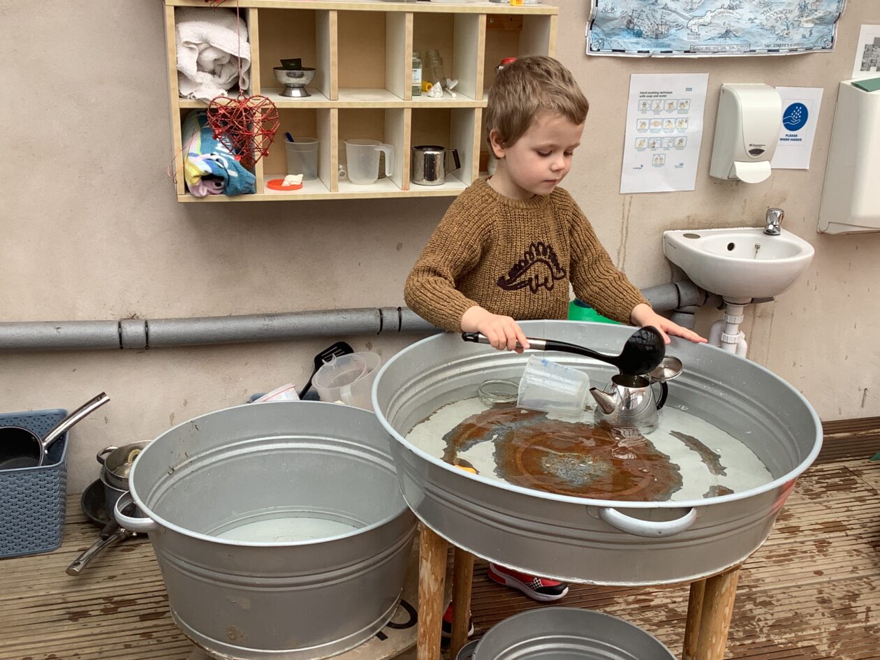 Our outdoor play has focused on water play, bug hunting and singing about the rain.  The bairns have been engaged in sensory play with water, paint and shaving foam.  Trevor put up our new basketball hoop and we’ve planted neeps.