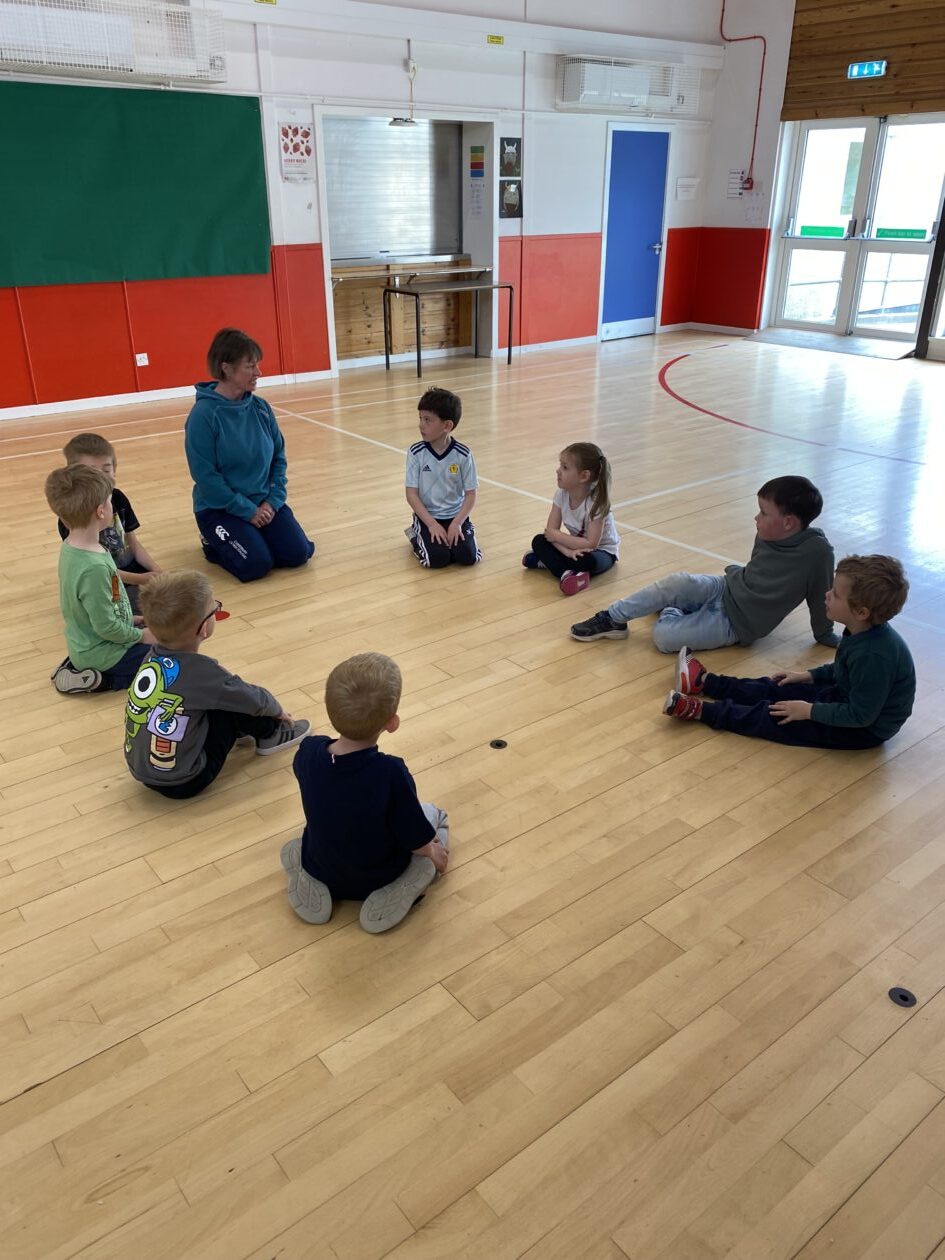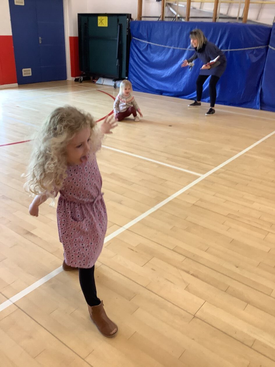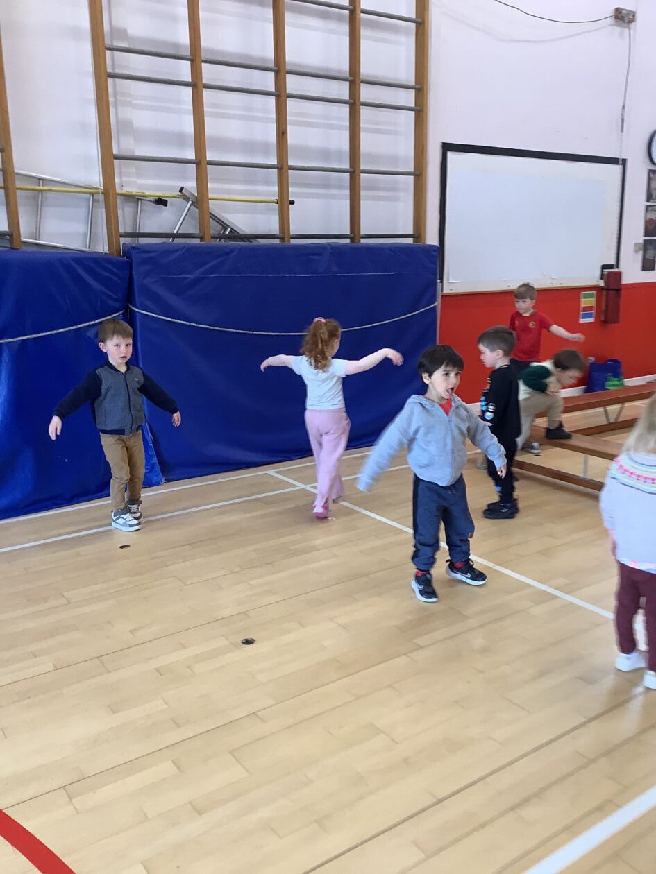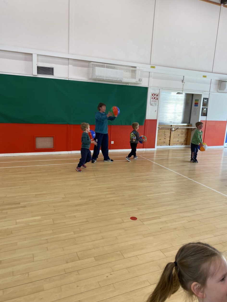 The pre-schoolers had their first P.E. session this week.  They gathered in a circle and each said their name.  Then they had to move around the hall as different animals starting with A-M.  They also played ball games and then came back to nursery ready for a drink and snack.