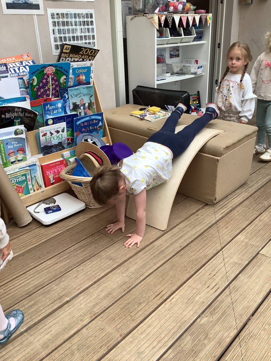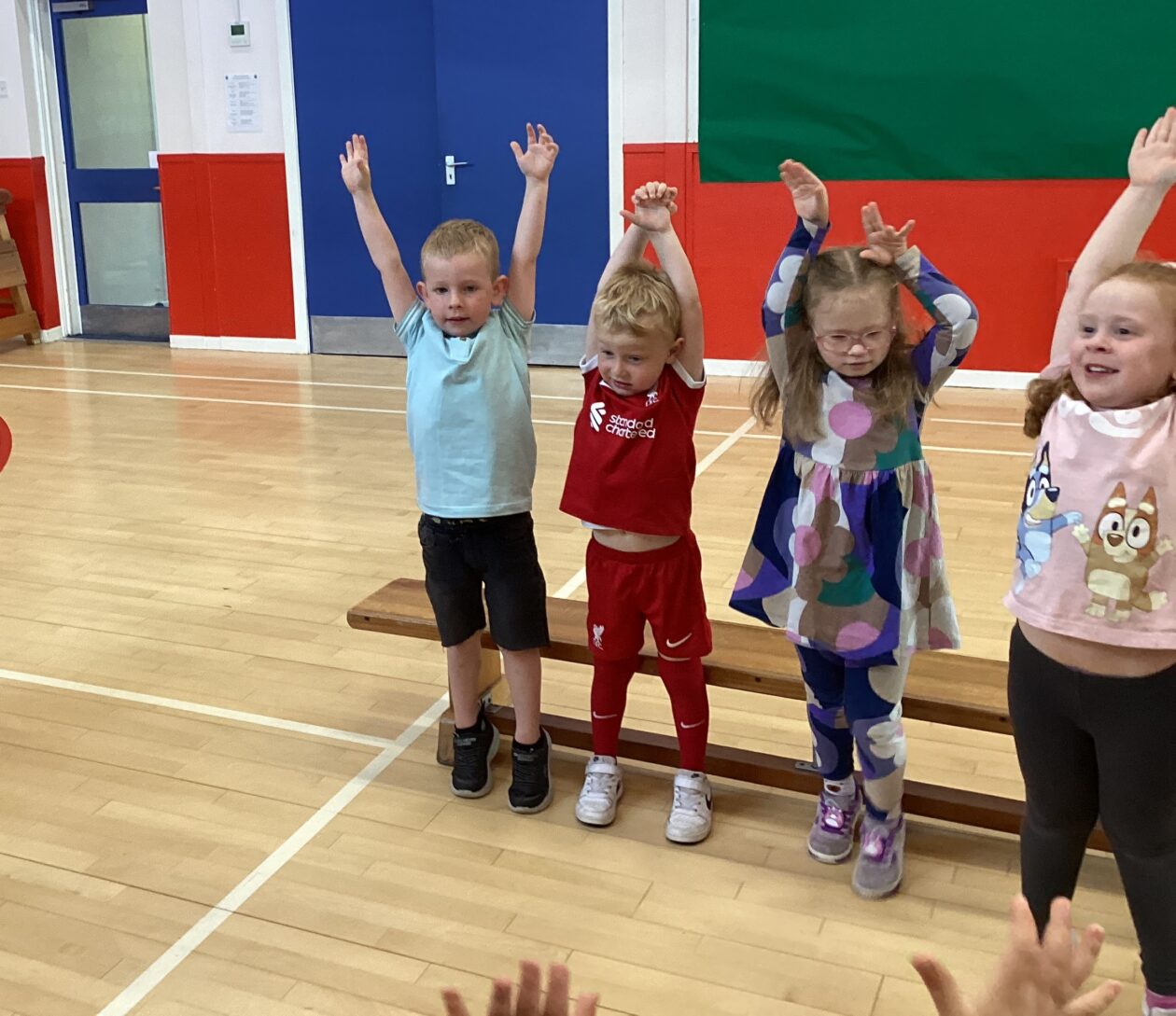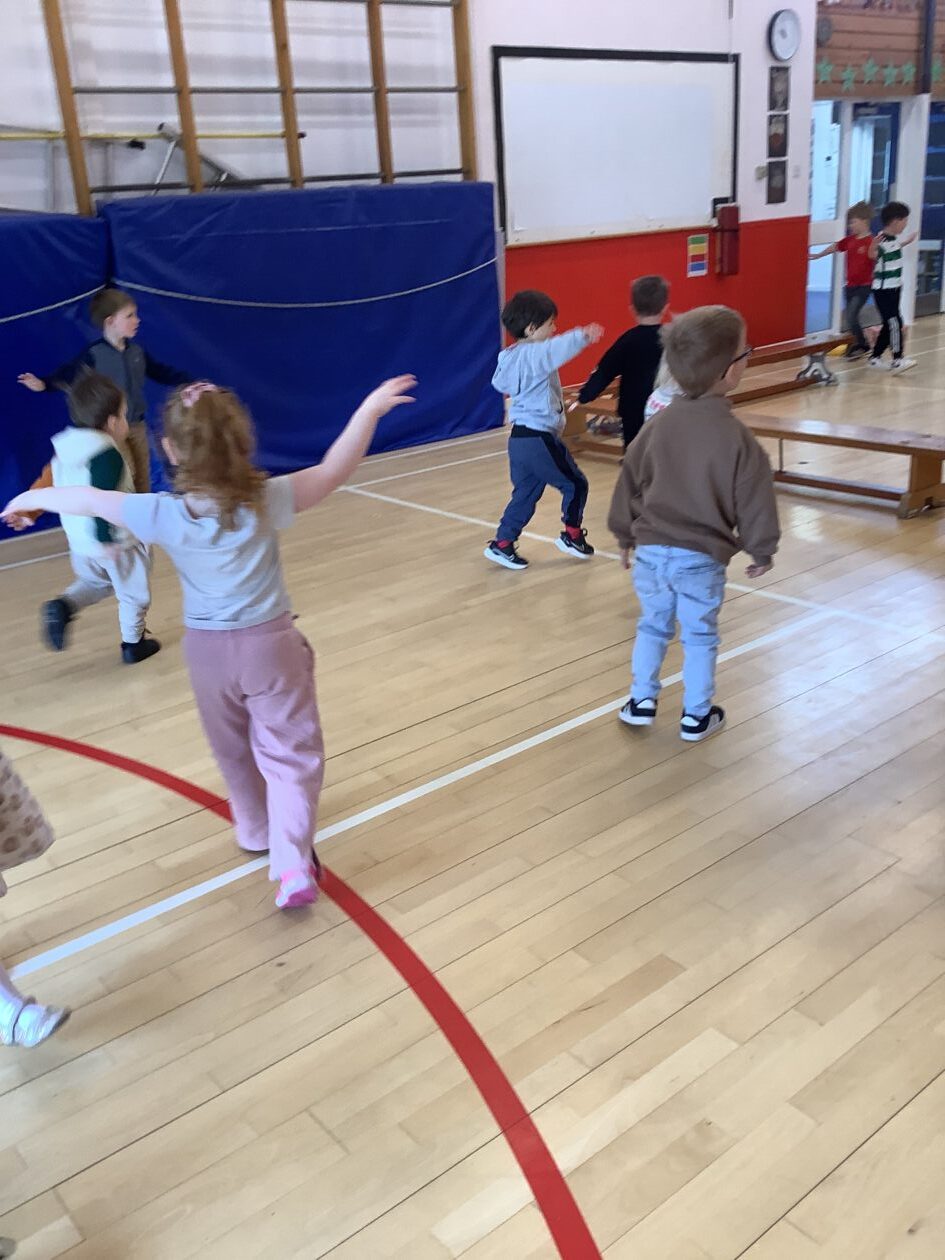 The pre-schoolers had their first P.E. session this week.  They gathered in a circle and each said their name.  Then they had to move around the hall as different animals starting with A-M.  They also played ball games and then came back to nursery ready for a drink and snack.