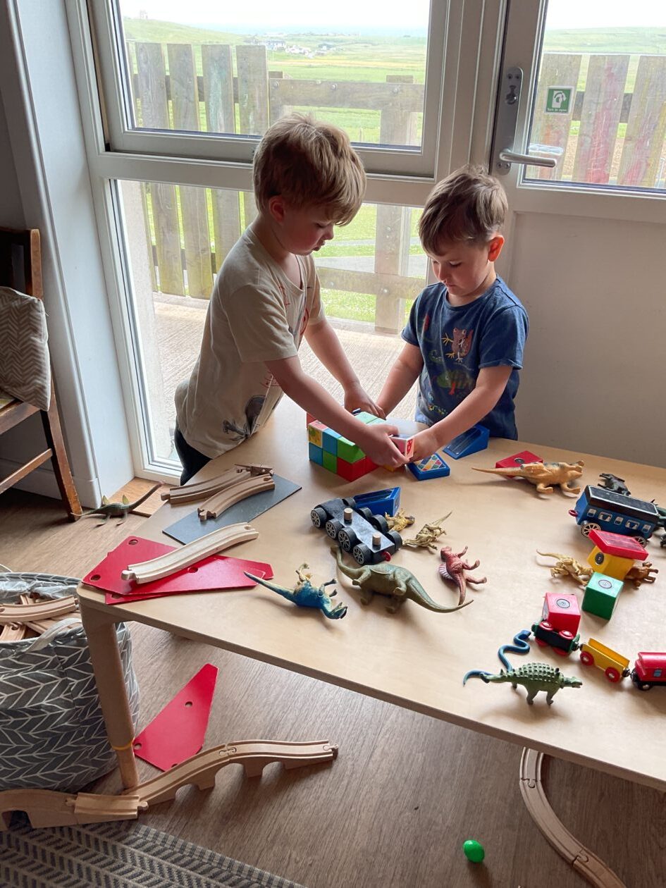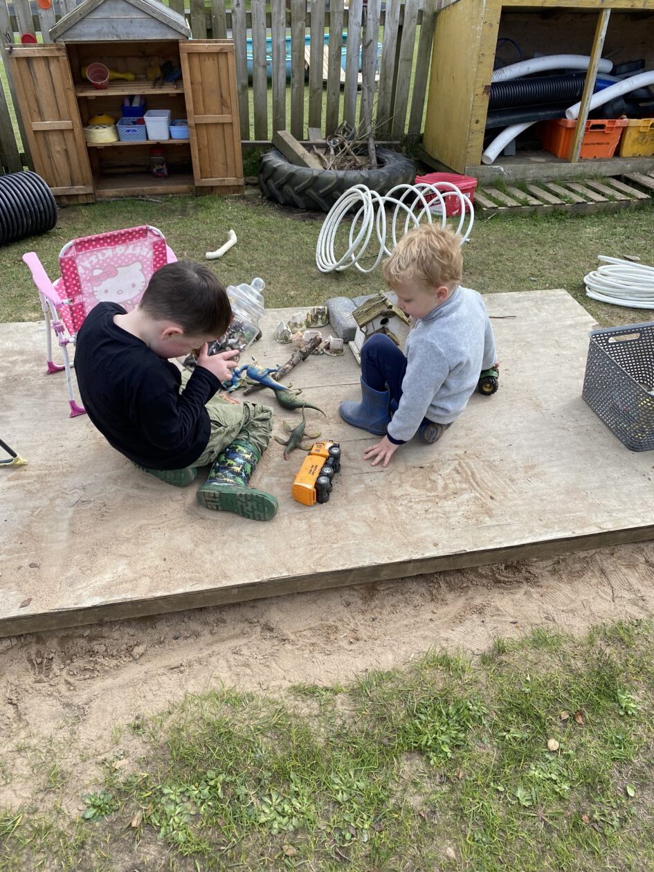 Here is a selection of our play and learning from the rest of the week.  The bairns have read books, made snack, created small world environments, played games and built a fishing boat in the outdoor room.