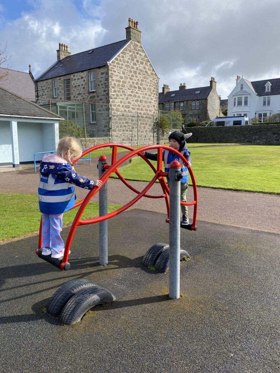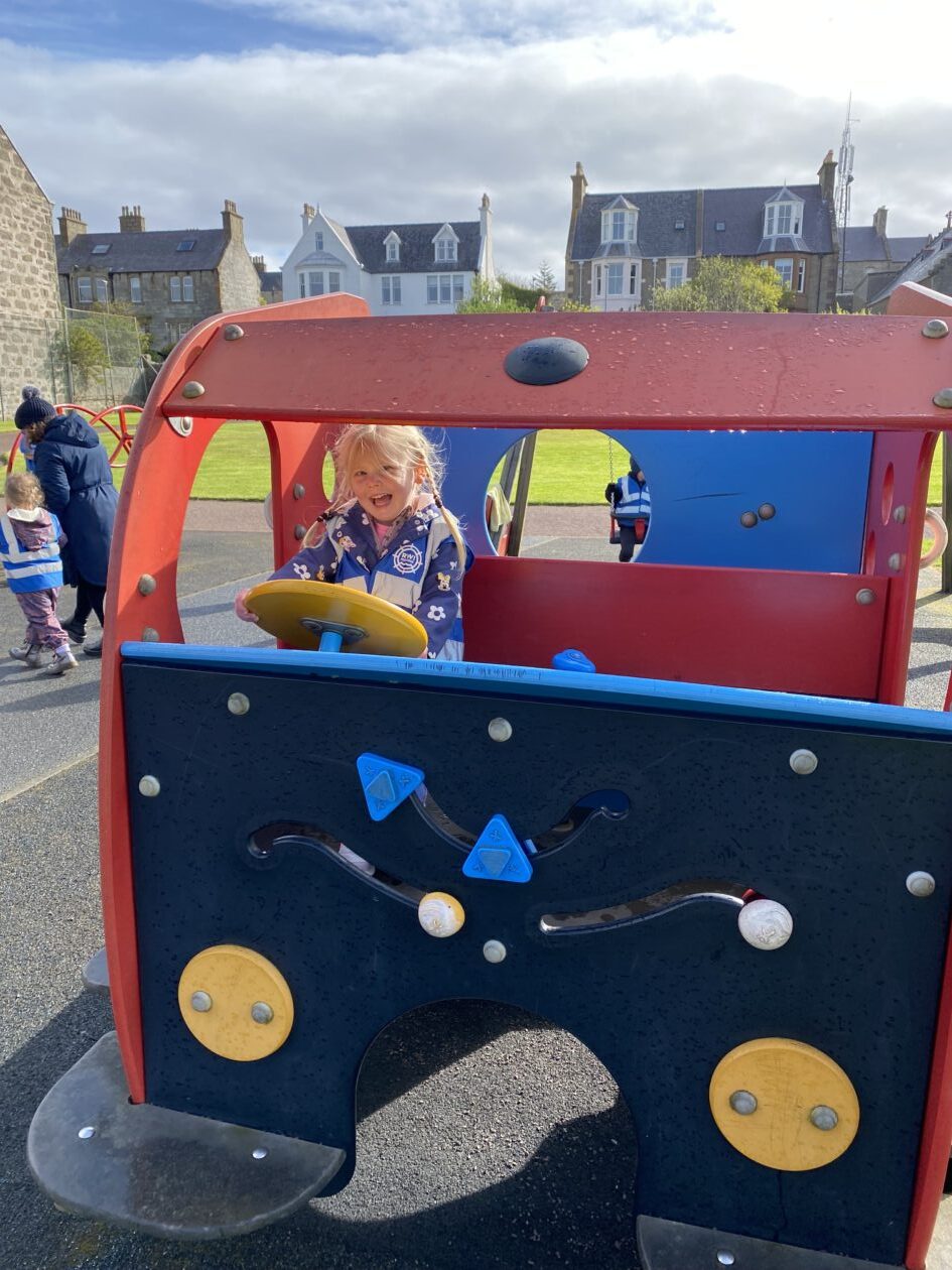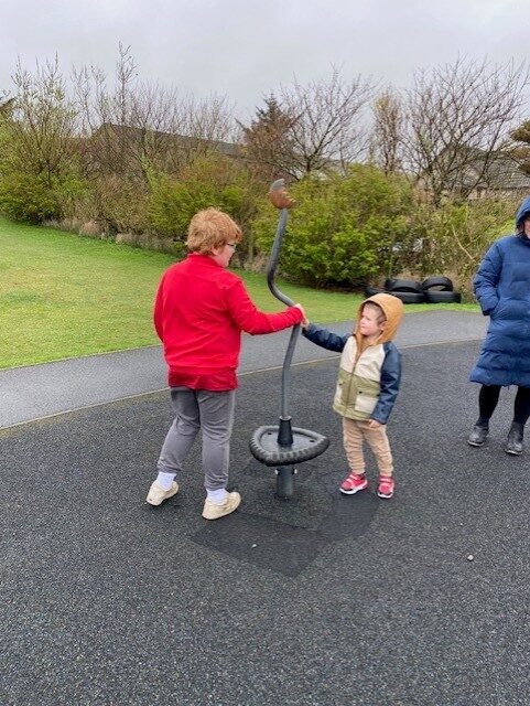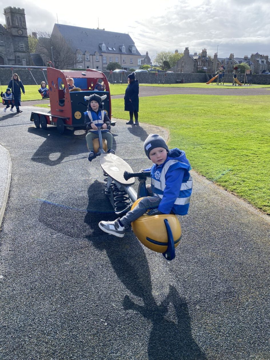 The P6 buddies came through to pick up their nursery buddies and headed to the playpark.  They played chasing games and helped each other on the equipment.  “That was fun!”