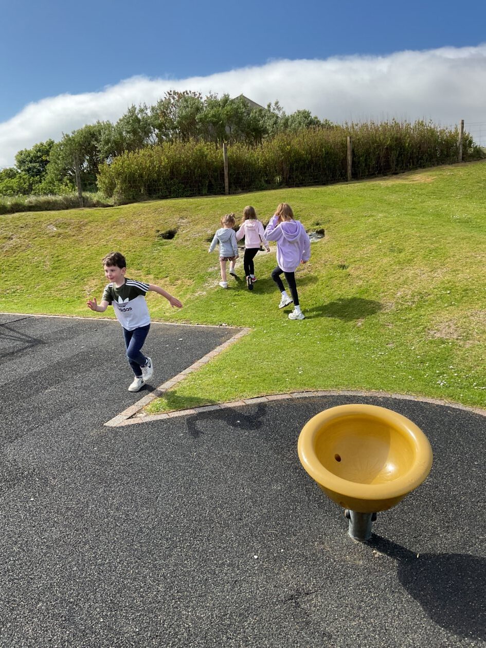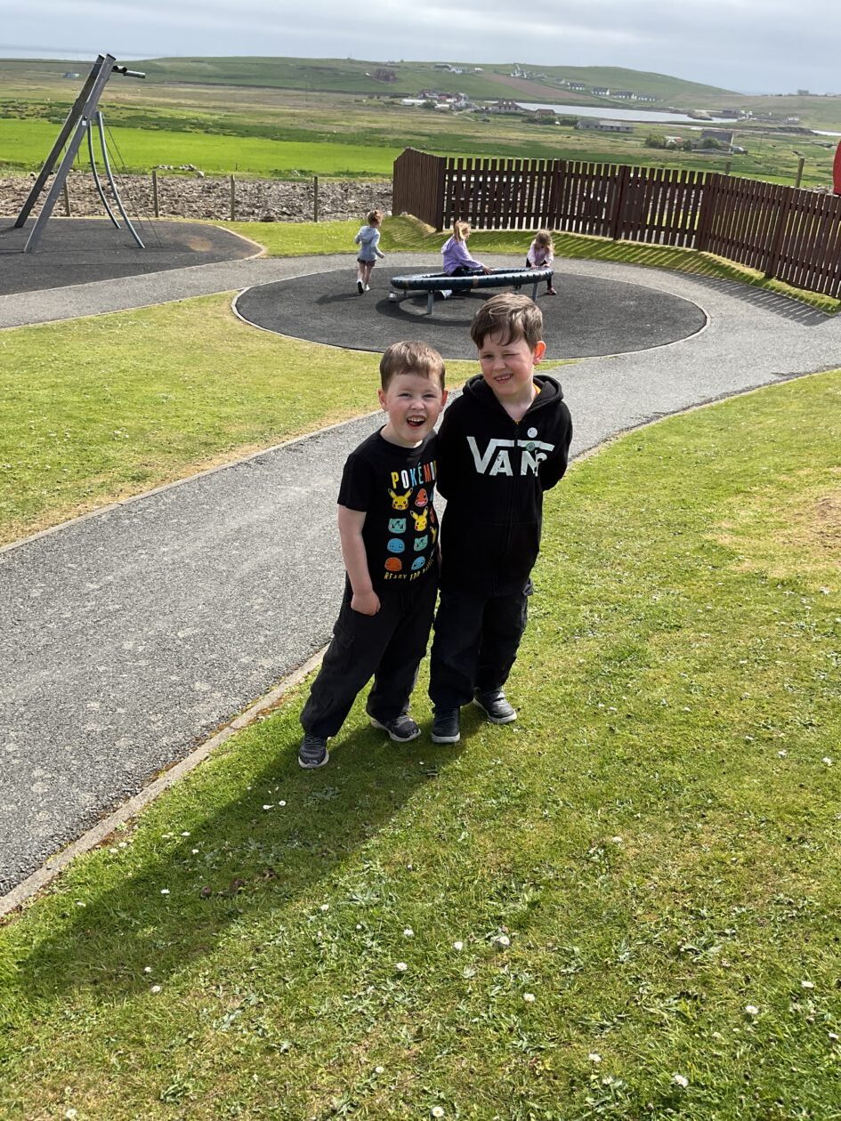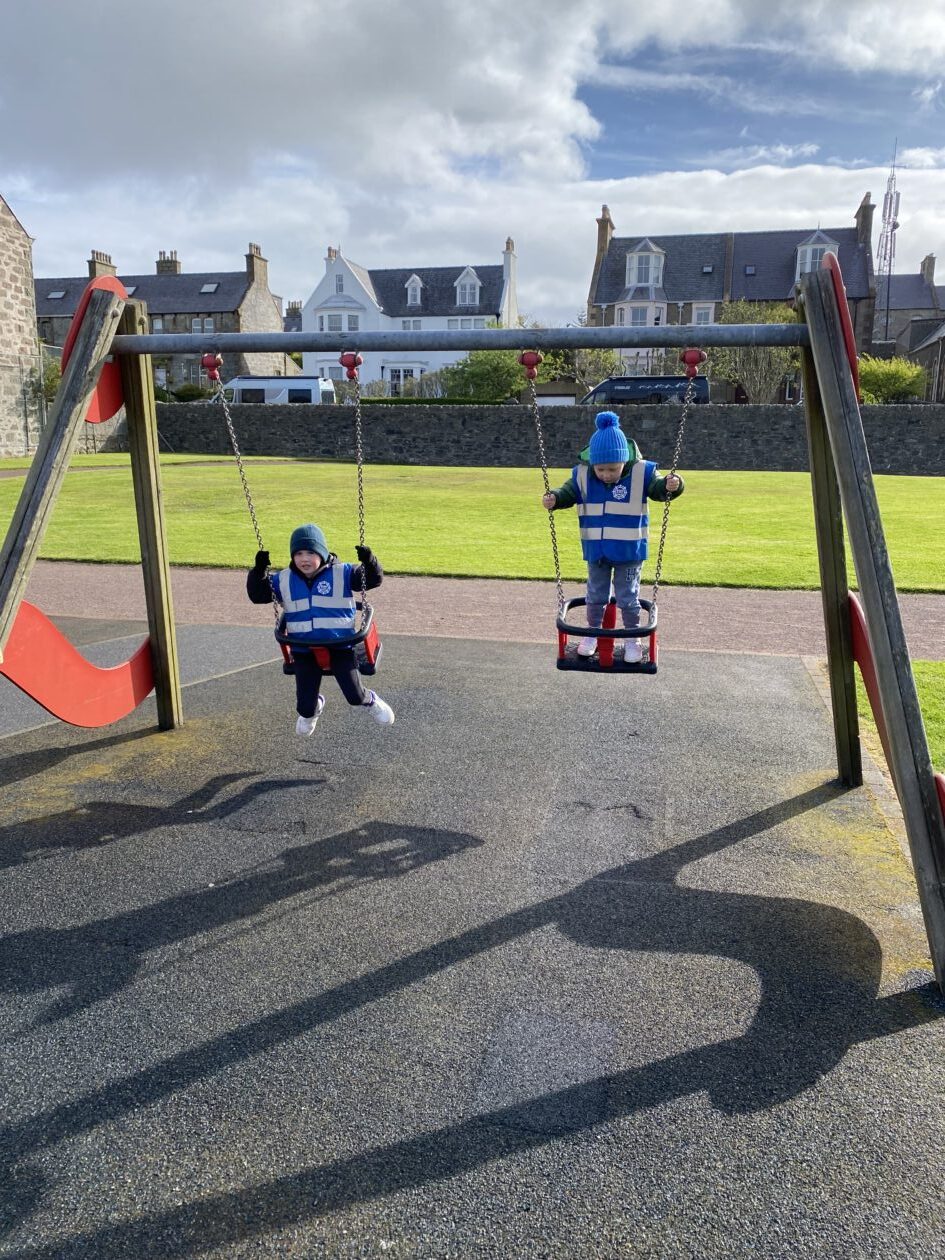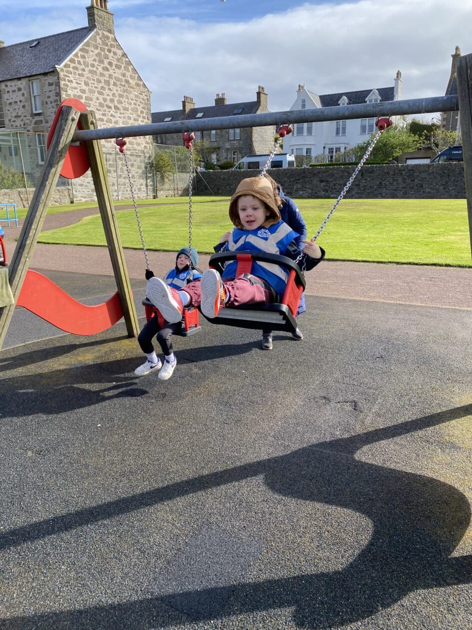 The P6 buddies came through to pick up their nursery buddies and headed to the playpark.  They played chasing games and helped each other on the equipment.  “That was fun!”