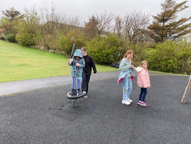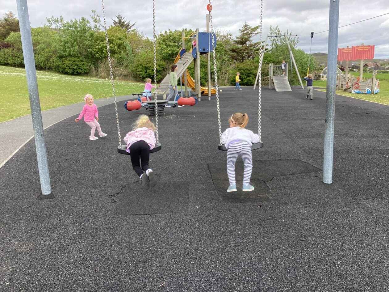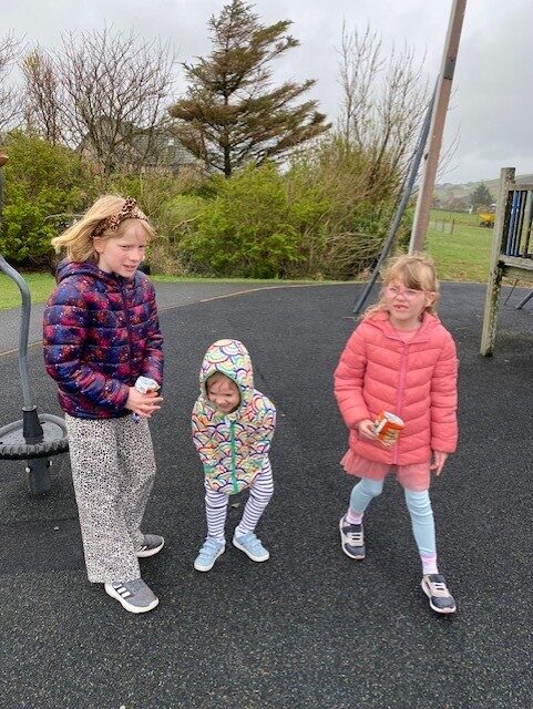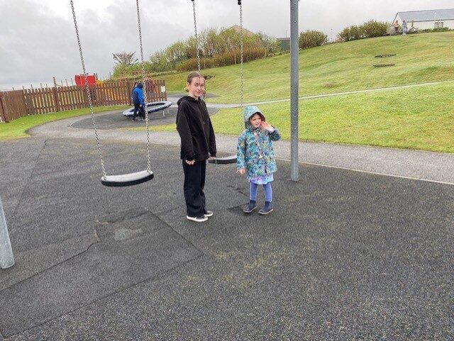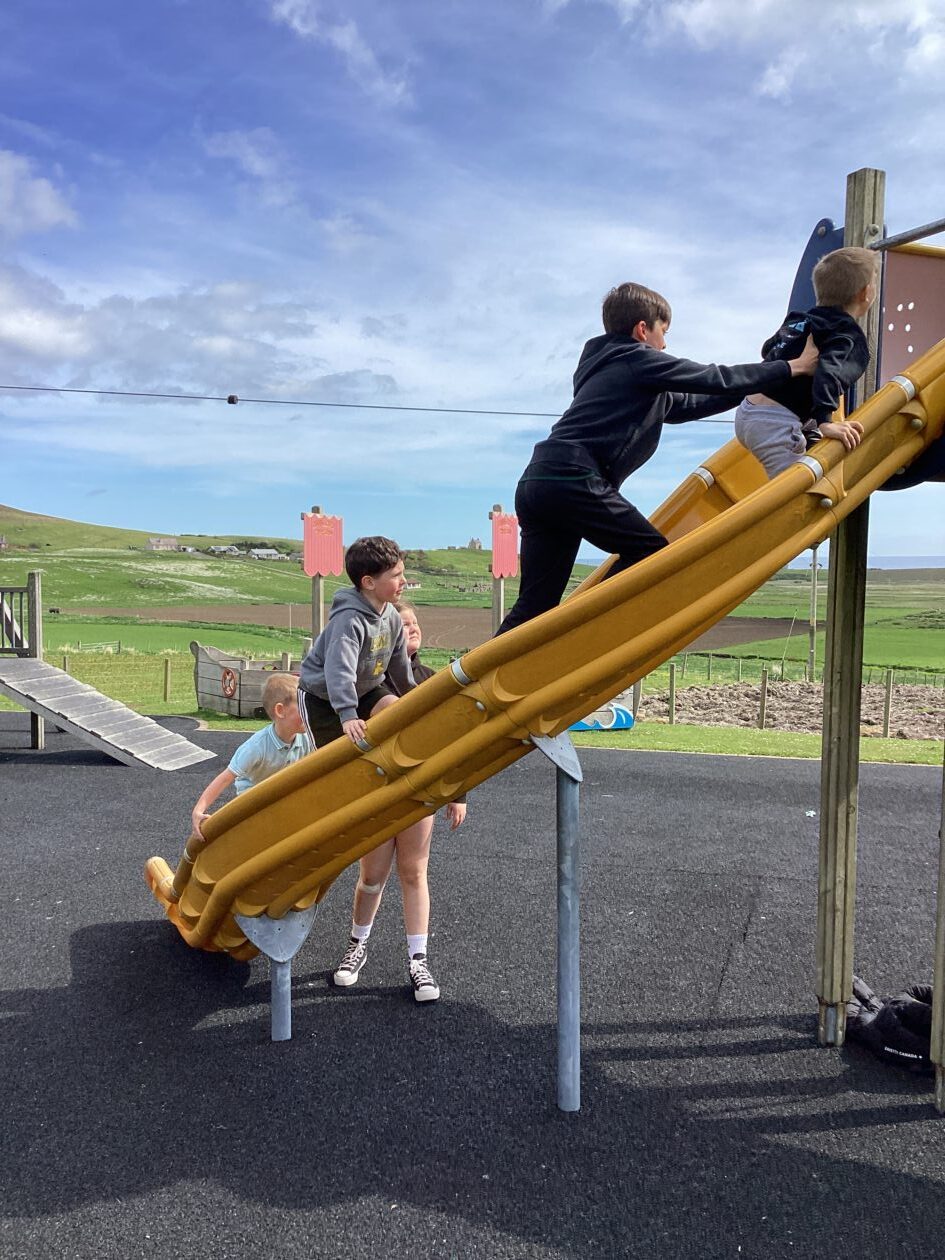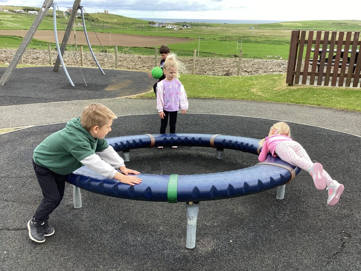 The P6 buddies came through to pick up their nursery buddies and headed to the playpark.  They played chasing games and helped each other on the equipment.  “That was fun!”
