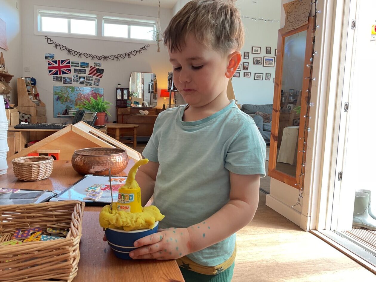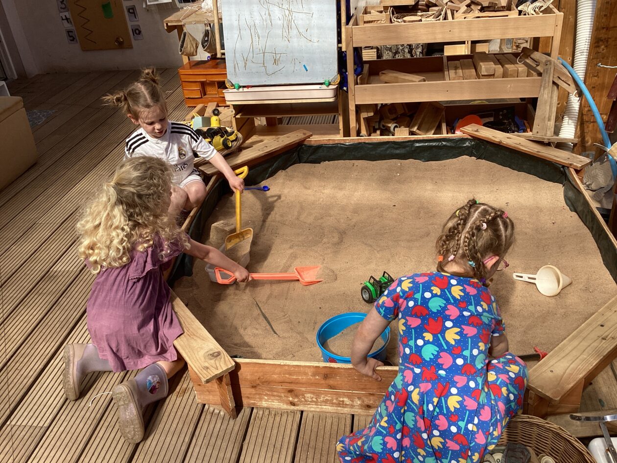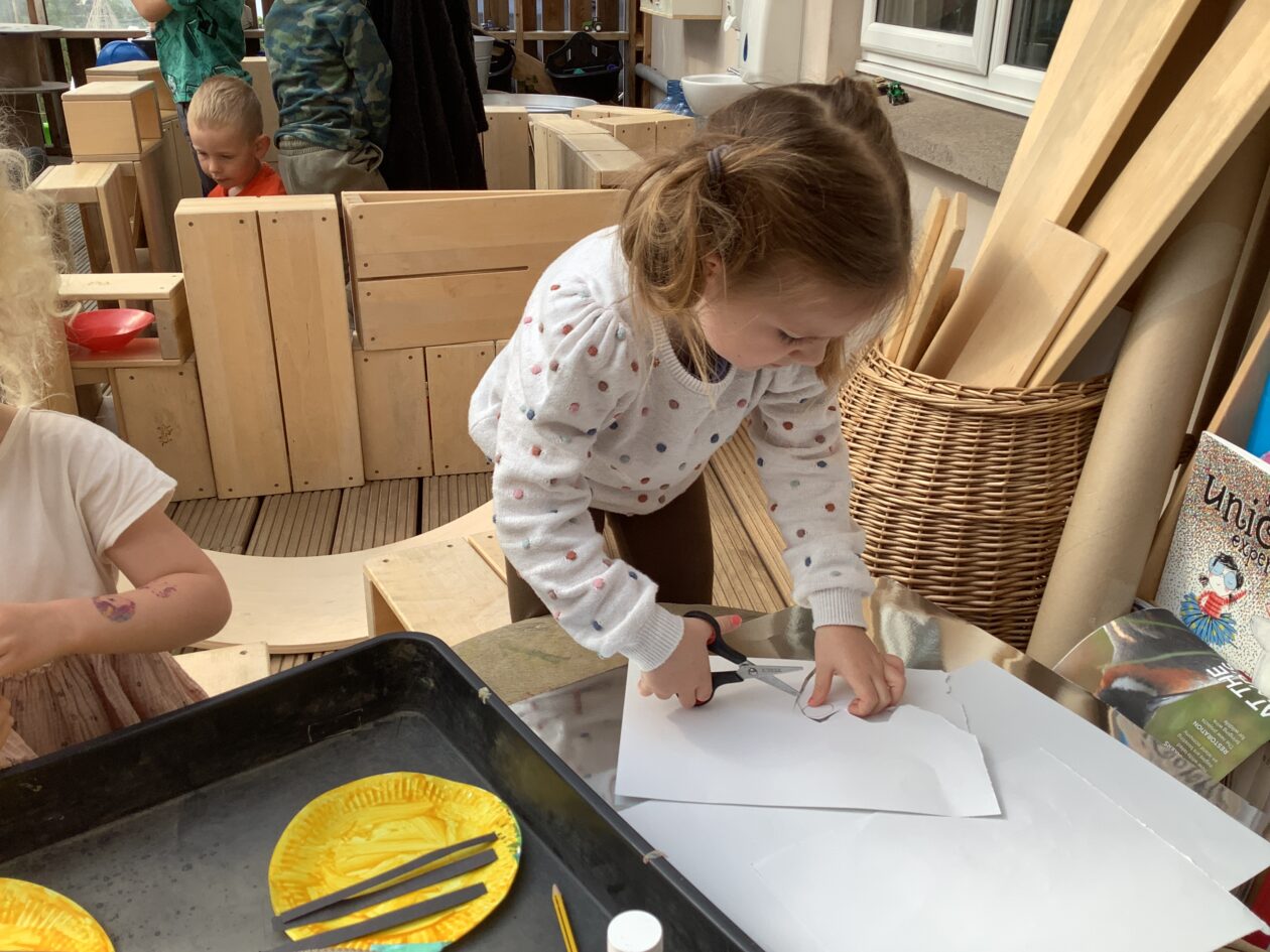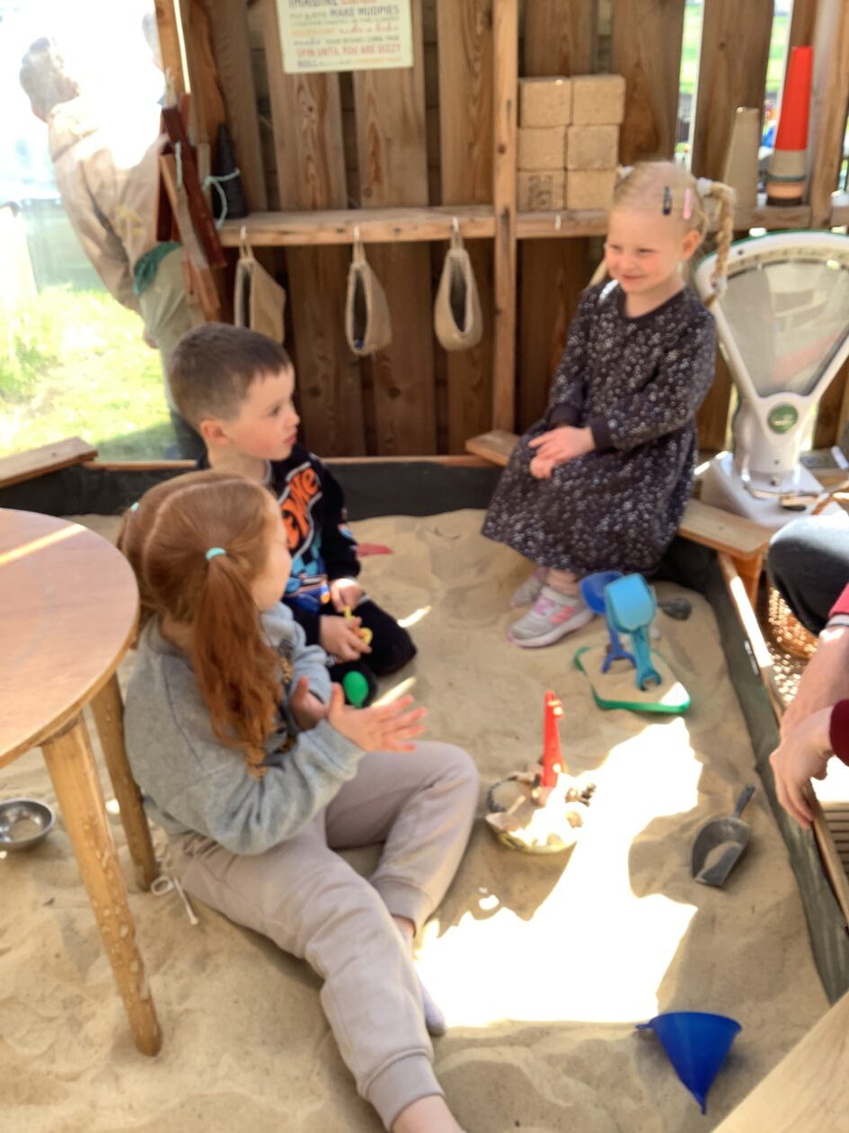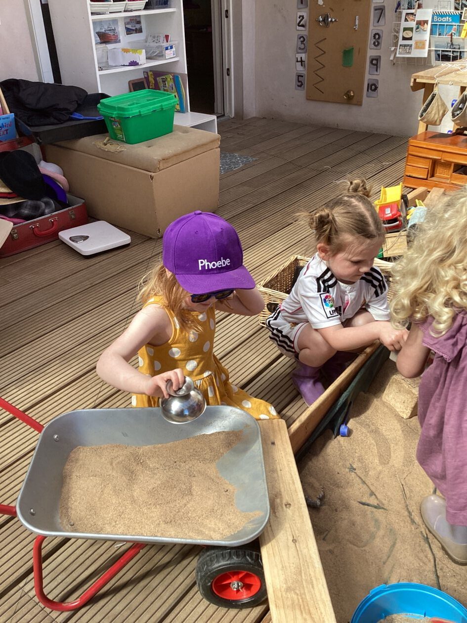 Here is a selection of the remainder of our play and learning from the week.  The bairns have emptied and refilled the sand pit in the last couple of weeks.  We always have great helpers for snack.  The bairns have created origami butterflies and rubber band powered butterflies.