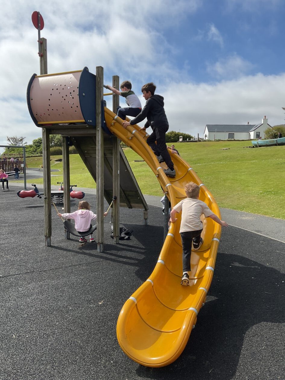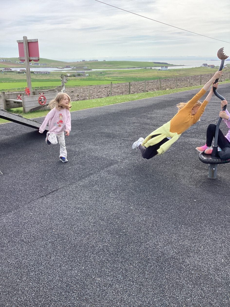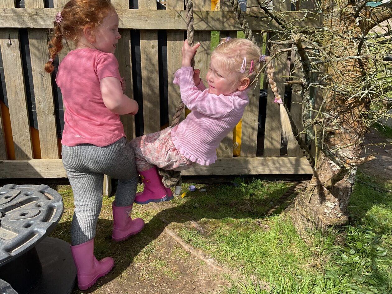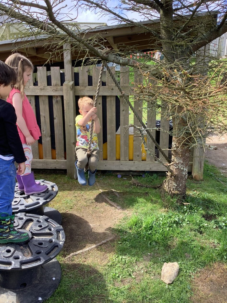 The bairns have been taking turns on the rope swing.  Encouraging each other and showing how to get the best swing.  “That was awesome!”  “I did it all by myself.”