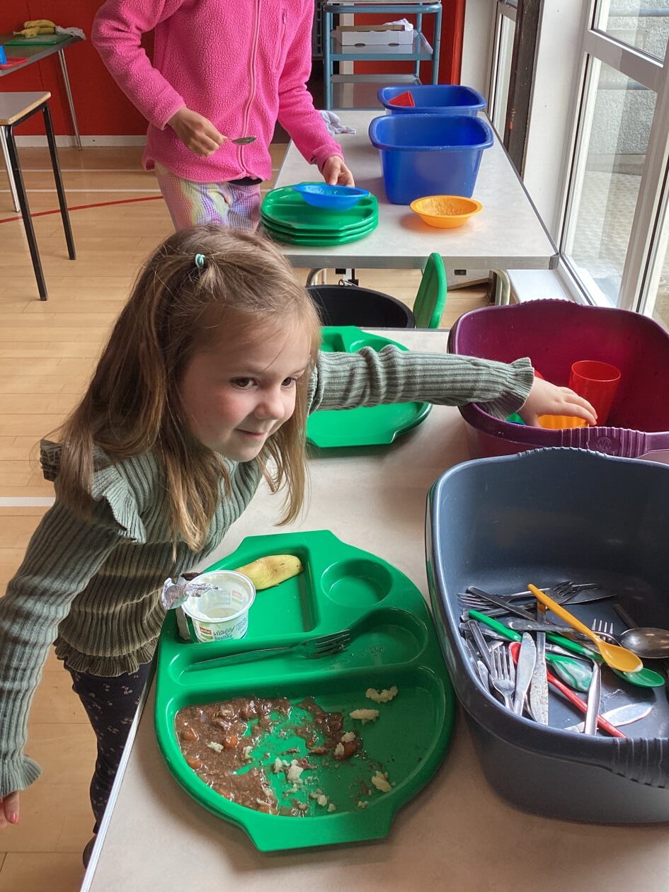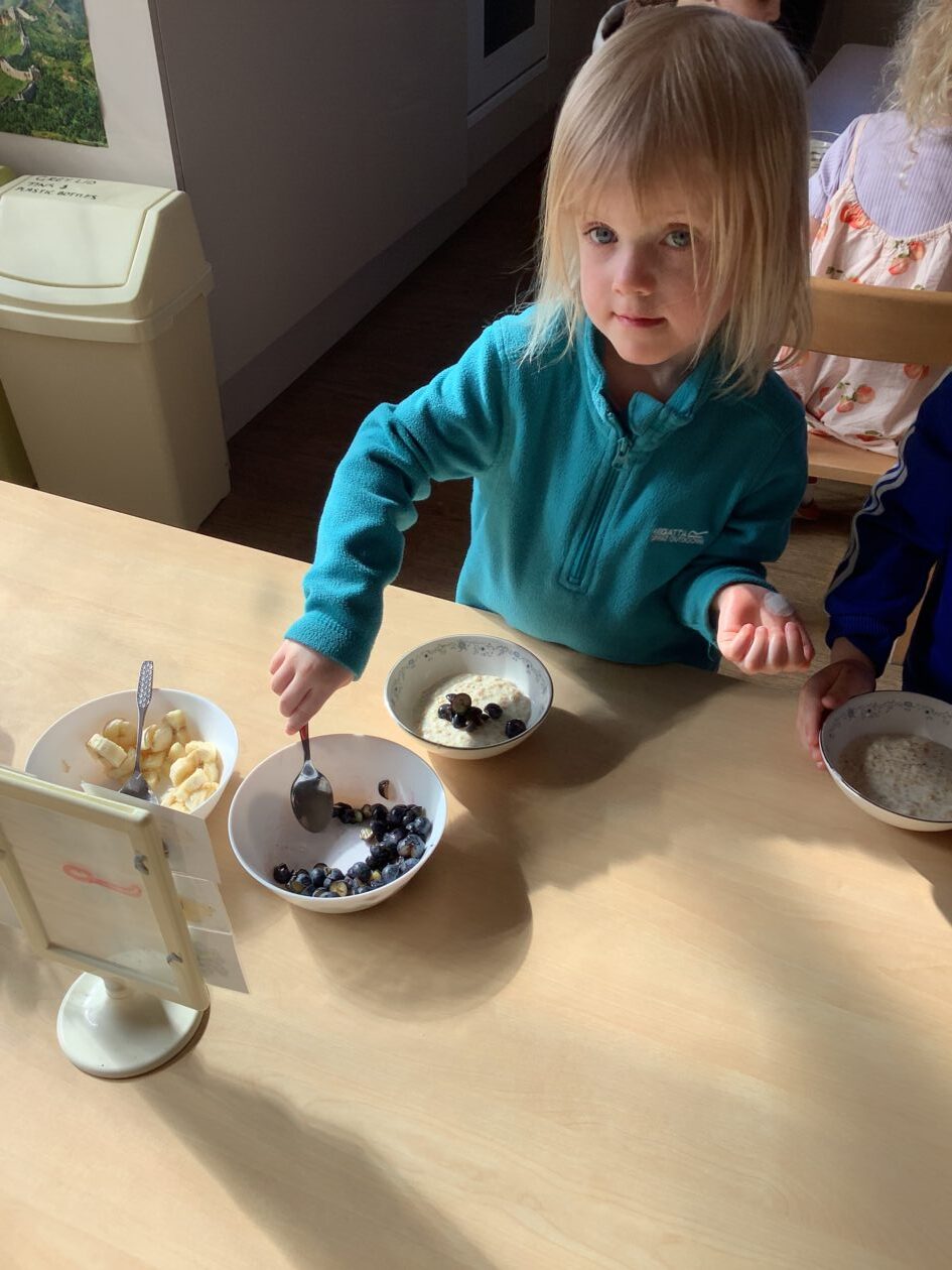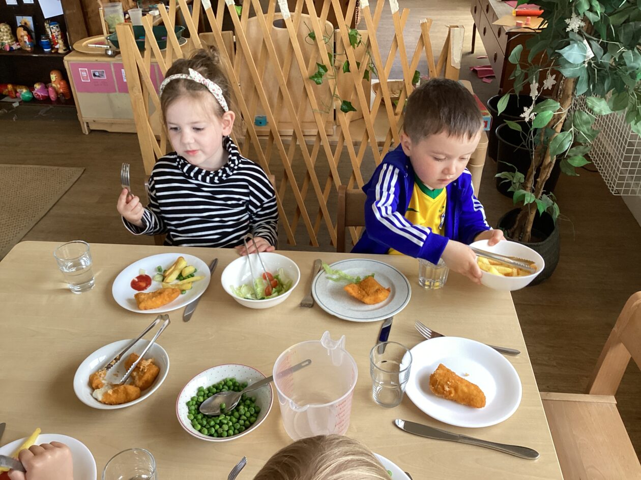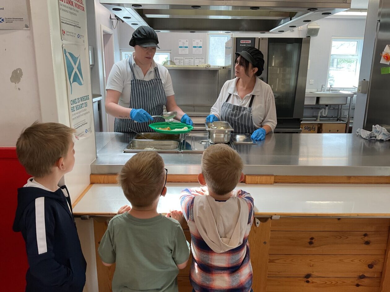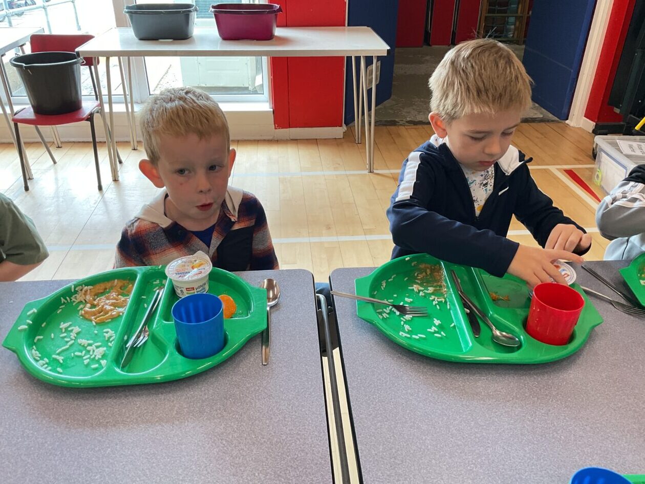 The bairns put their lunch transition skills to good use again this week.  They lined up , got their tray and pudding, collected their cutlery and filled up their cup with water.  When they were finished, they scaped their tray into the bin.
