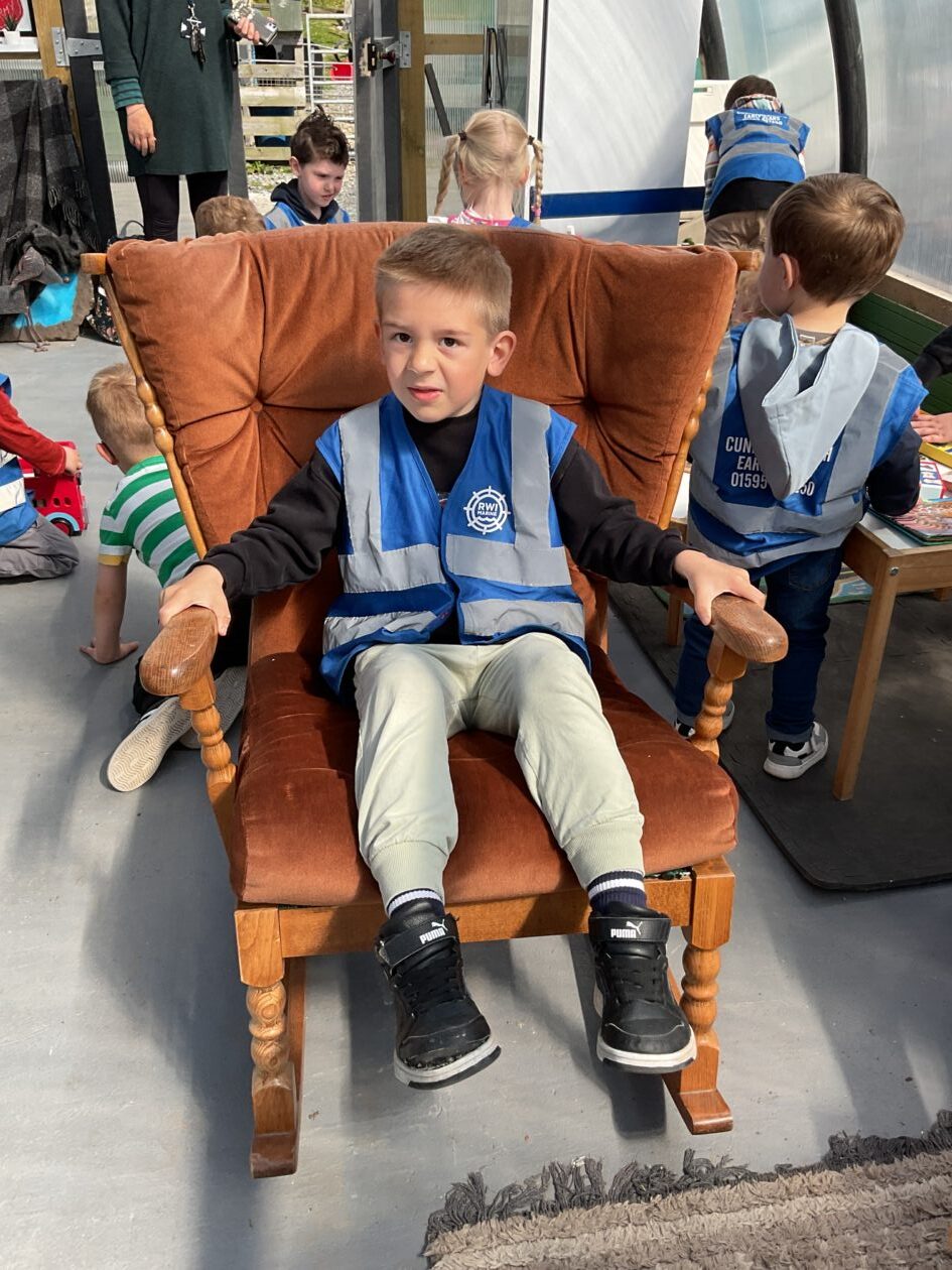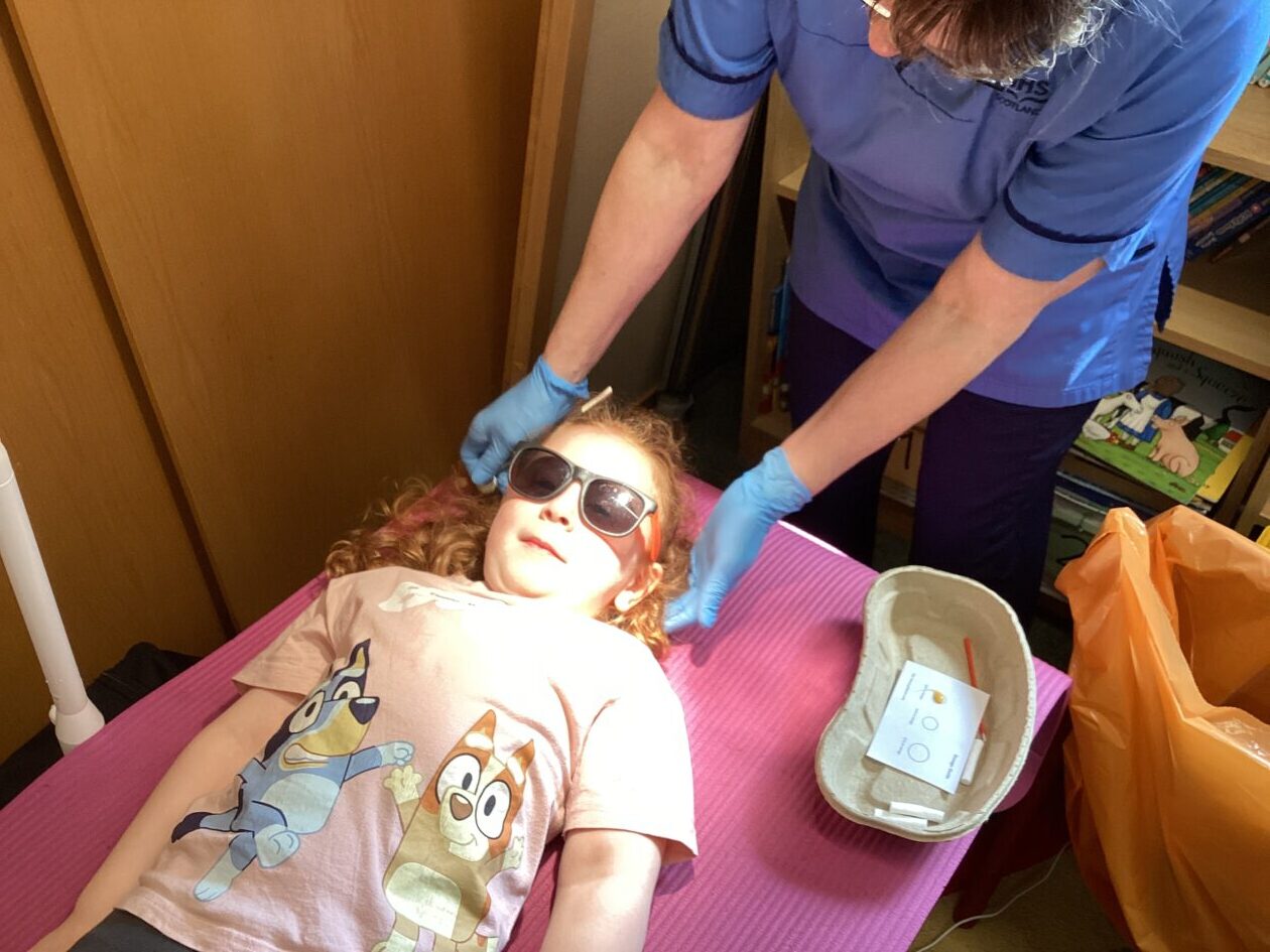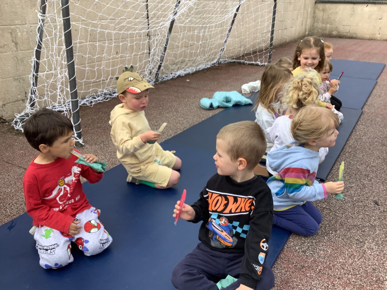 Childsmile visited on Monday to apply fluoride varnishing to the bairns’ teeth.  They were given sunglasses to wear and asked to open wide for the varnish to be applied.  “It tasted like ‘nanas!”