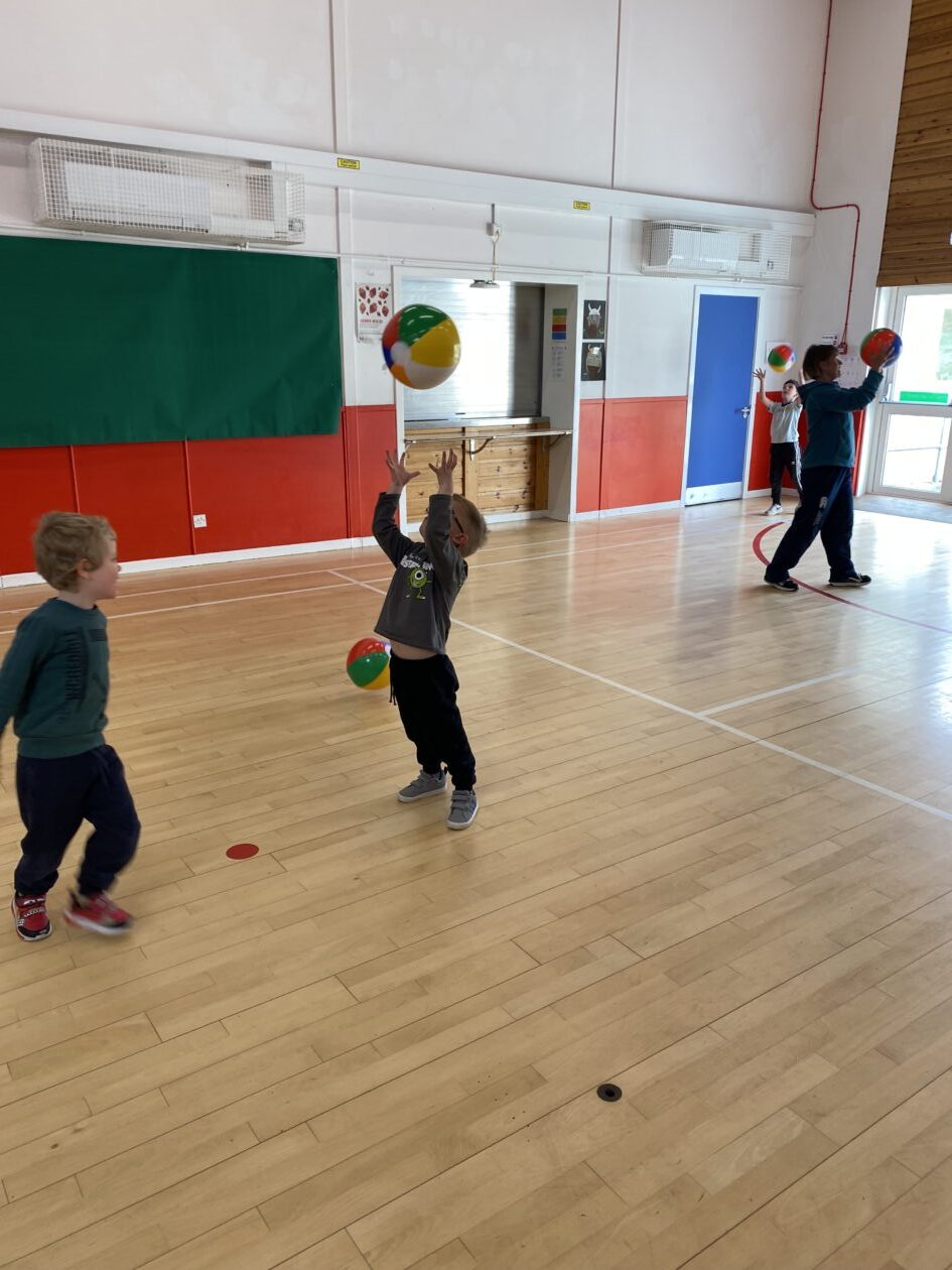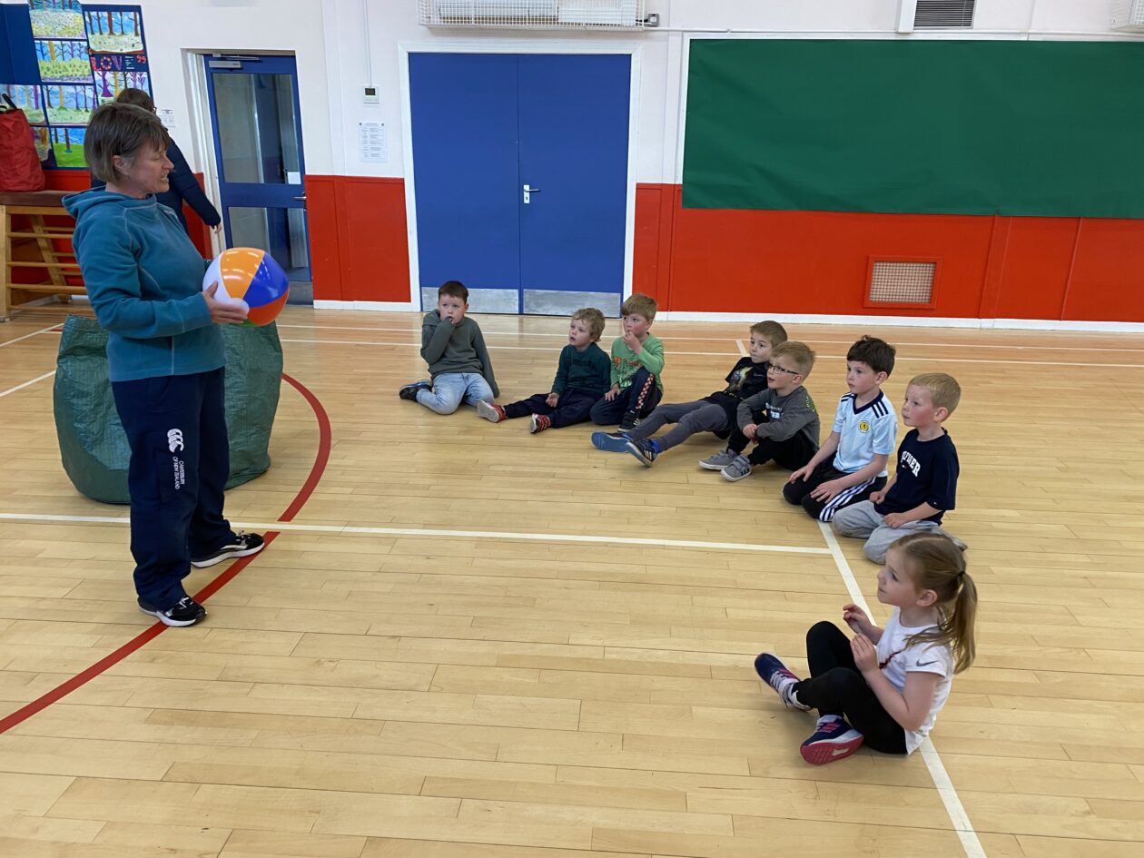 The bairns had their last transition P.E. lesson this week.  This was the perfect time to practice for Sports Day with jumping, running and an egg and spoon race.  Mrs Ritchie asked the bairns what they would like to do and they agreed that ball play would be fun.