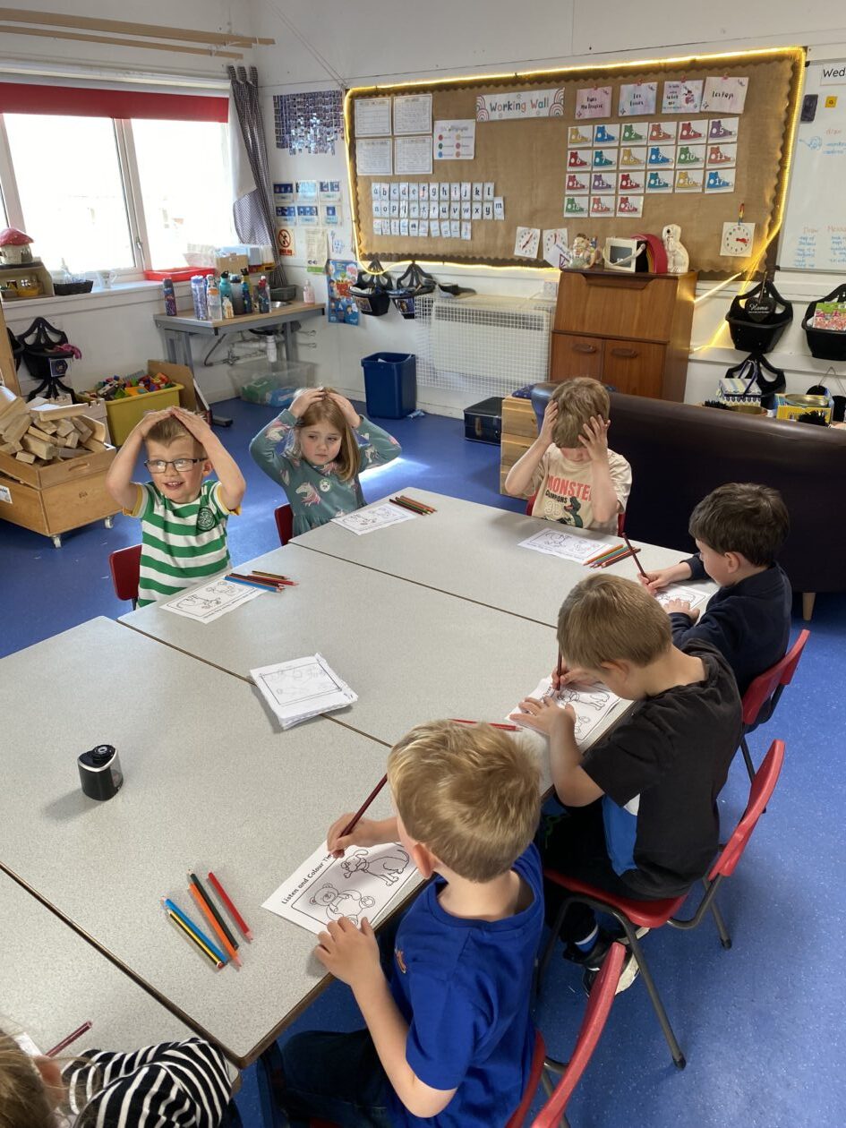 During the P1 classroom visit this week, the bairns were set a colouring challenge where they had to listen out for three key words.