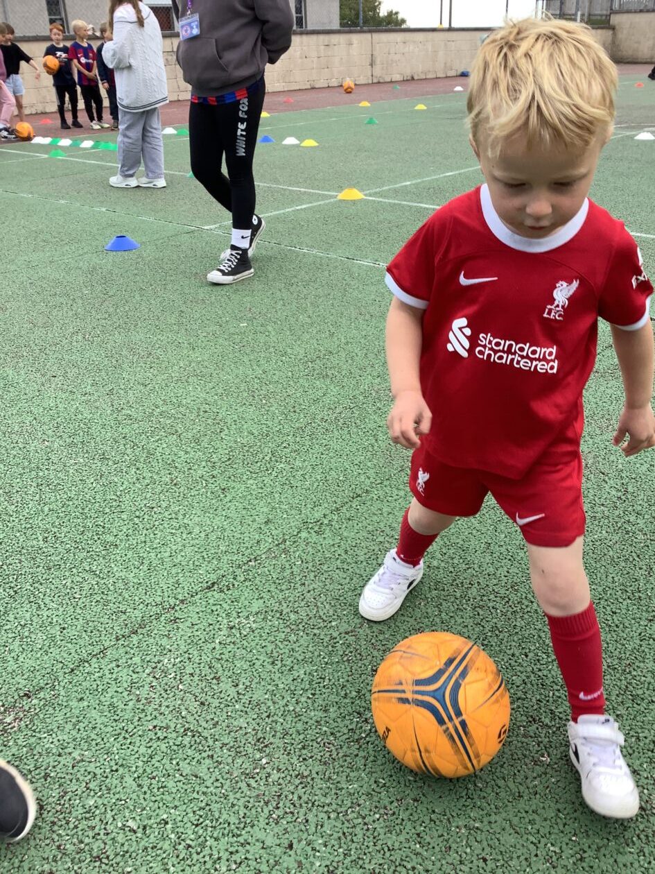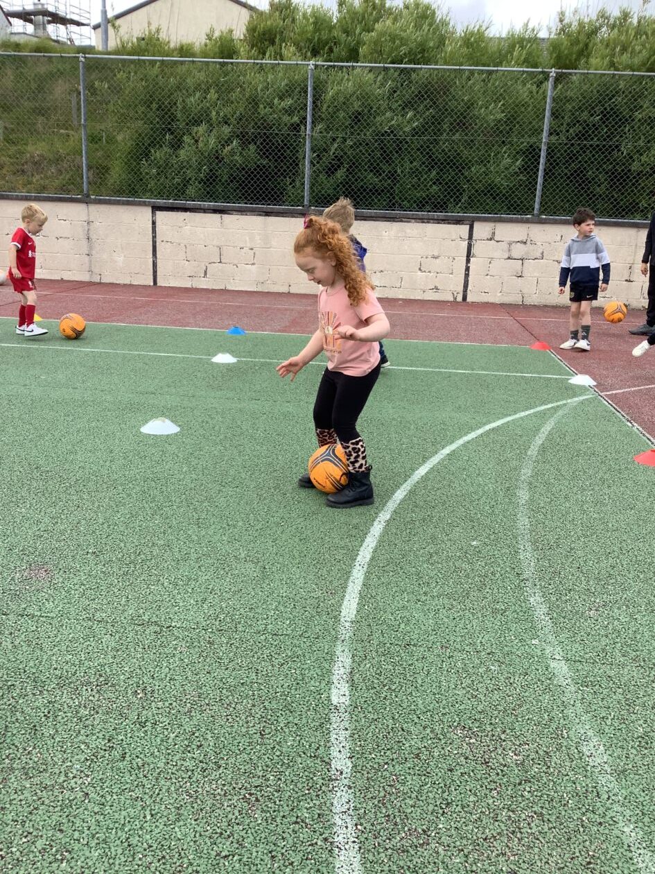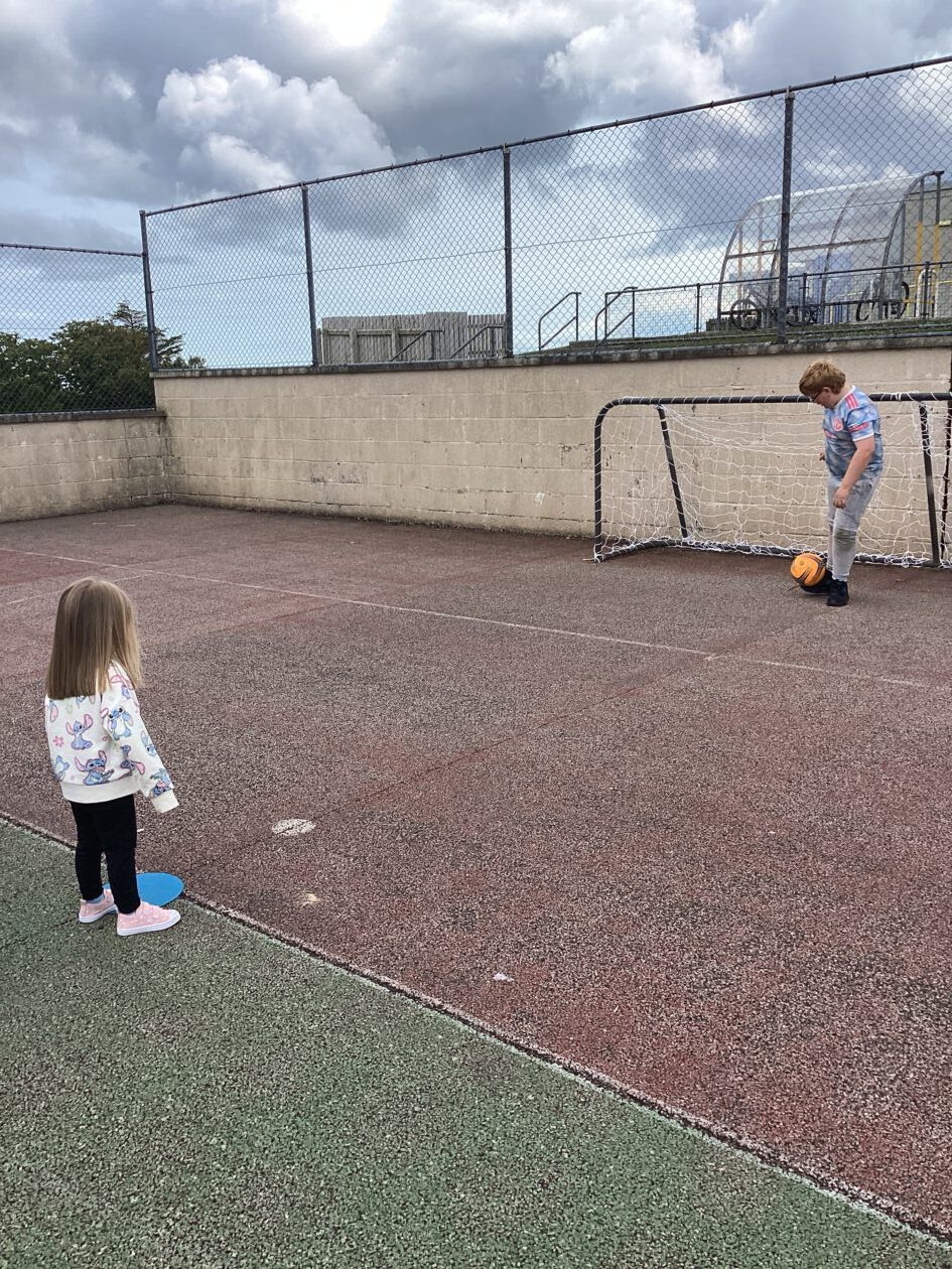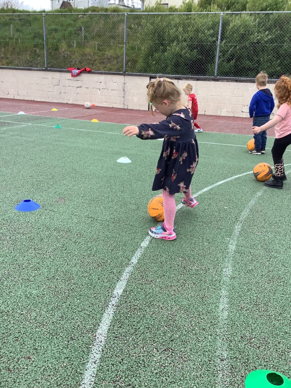 The Primary 7 bairns held another Monster Kickabout and took the nursery bairns to the multicourt for coaching sessions focusing on football skills.  They played games like Duck Duck Goose, Simon Says and Ship Shore Sea.  The bairns had a turn at dribbling and a penalty shoot-out.  They made a circle and practiced passing the ball to each other.  The bairns also submitted their medal colouring in sheets.