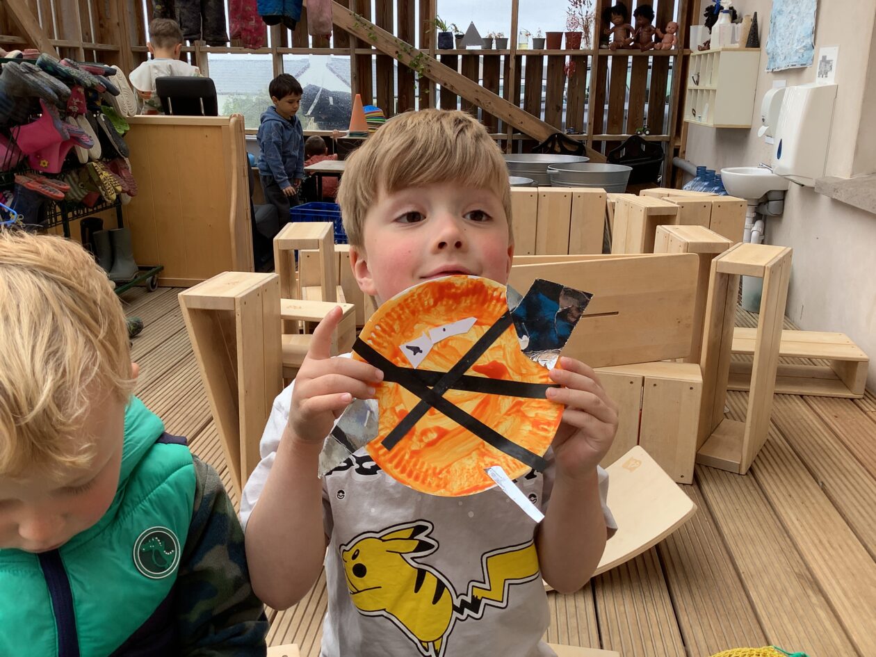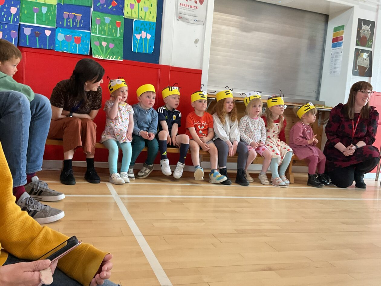 The bairns decorated plates as bees for the backdrop for the Leavers’ Assembly and added messages for Father’s Day as a peerie surprise.  Everybody did a splendid job on the day, singing and playing their kazoos.  We are all super proud of our peerie superstars heading off to Primary 1 after the holidays.