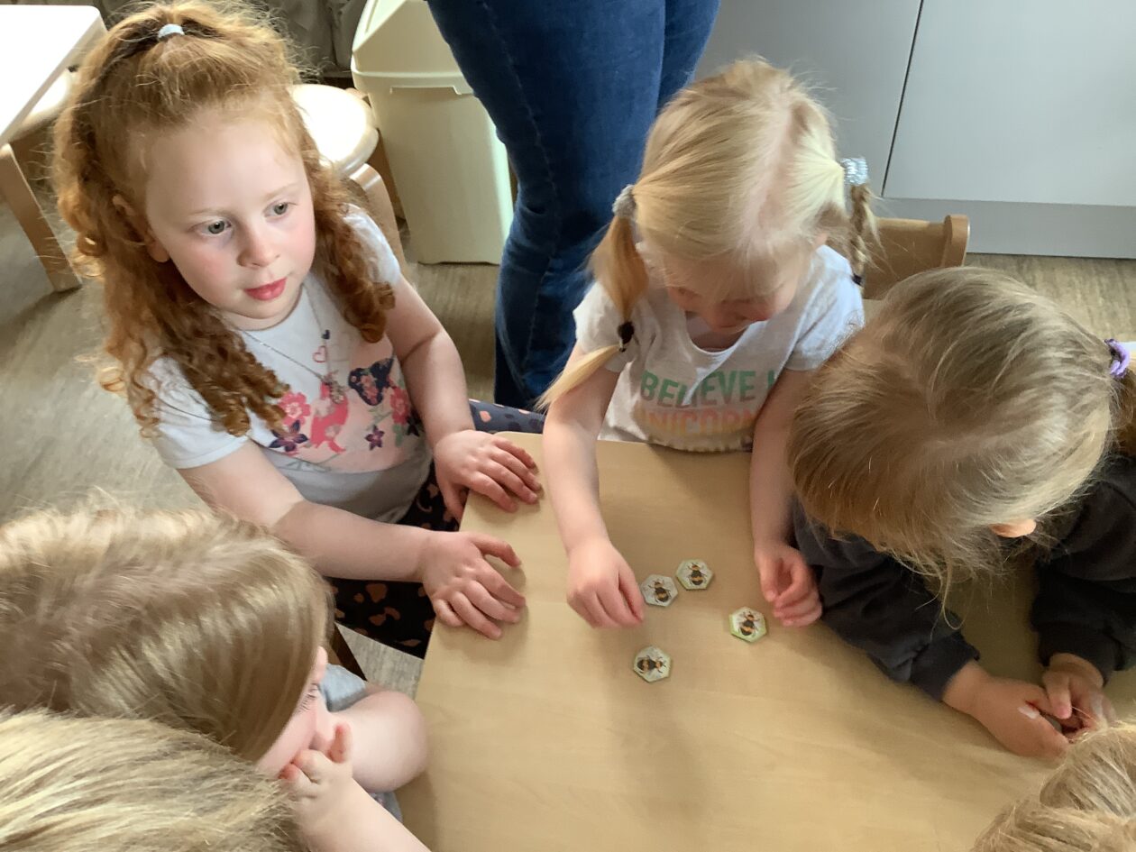 The suspense is over!  Out of the 150 bees that were hidden all around the setting, there were 131 that were found during the stay and play.  We have found a few since but there are still some that have stayed hidden.  The bairns took turns counting out their bees and adding their number to the tally.