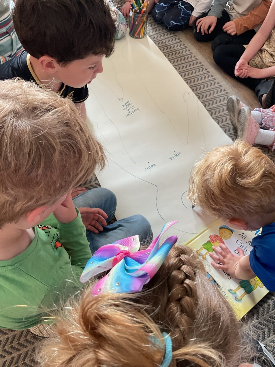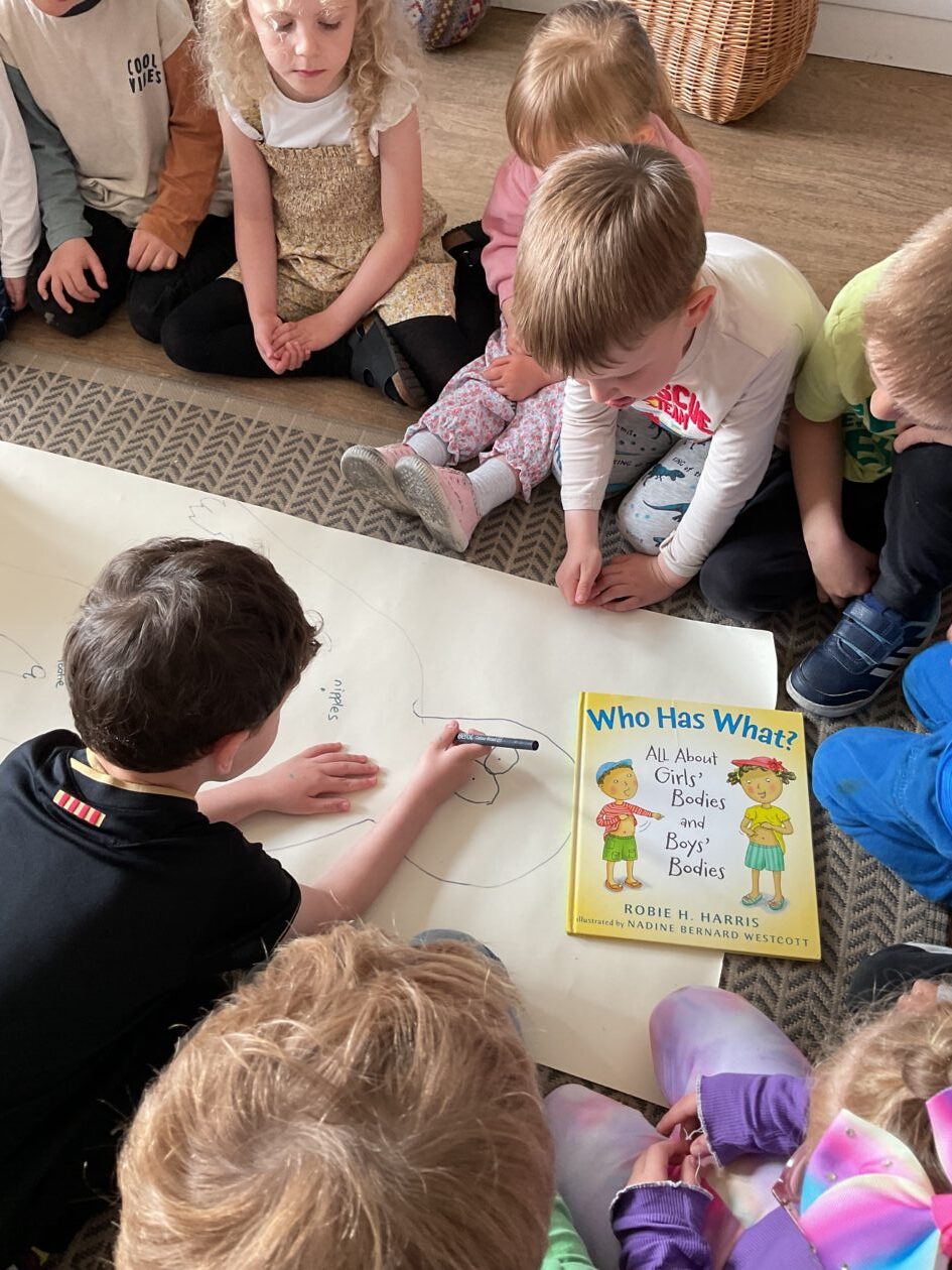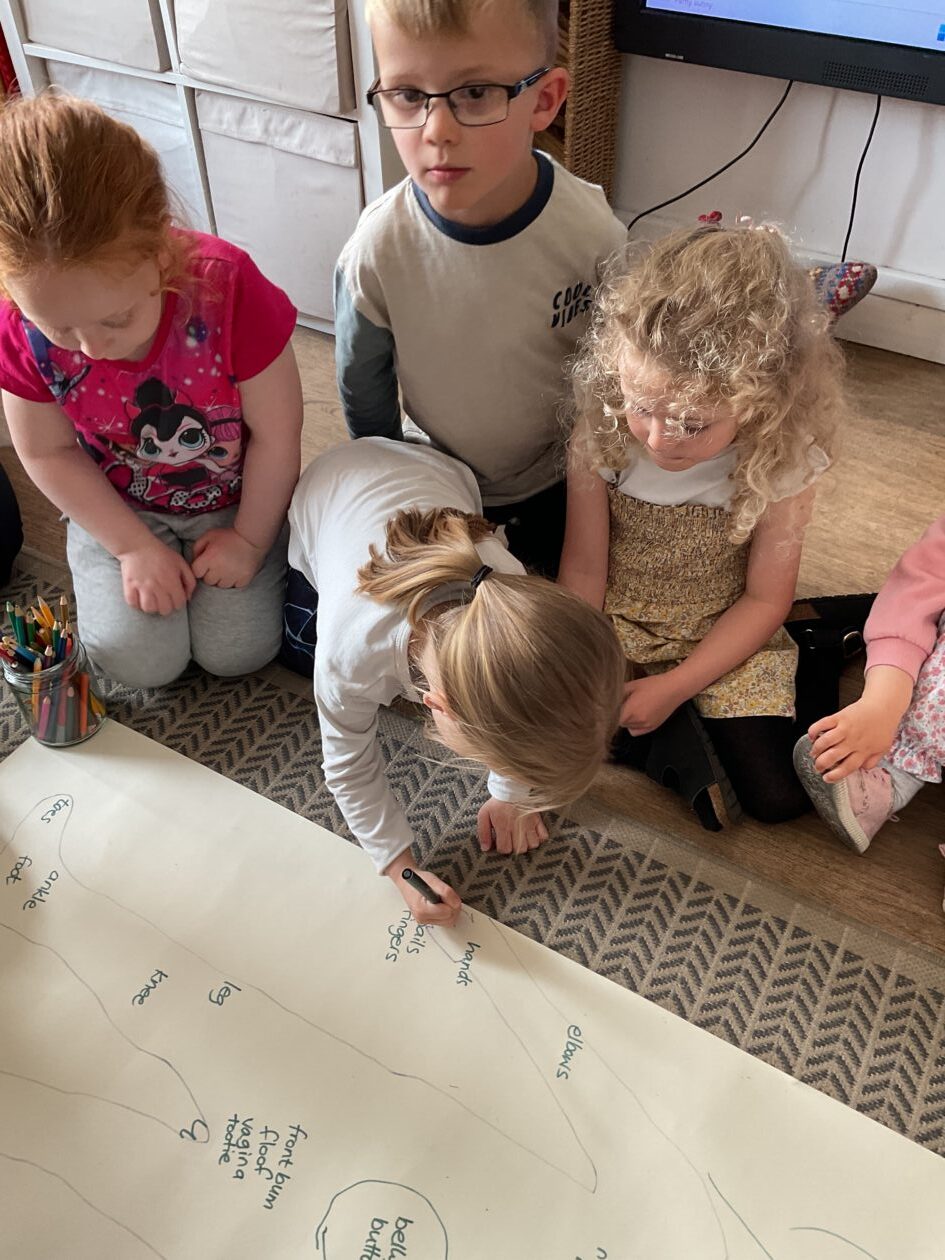 We started Wir Ain Peerie Bodies this week.  We have read several books which cover the differences and similarities between male and female bodies, our feelings, what to do if someone tries to touch us under our pants and who we can speak to if something makes us uncomfortable.  We drew around a boy and a girl to create a male and a female body.  The bairns then named all the body parts, remembering what they had learned from the books.  The bairns decorated pants to protect their privacy and we will revisit this again next week.
