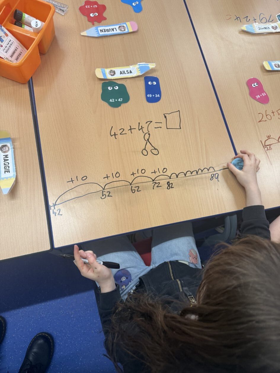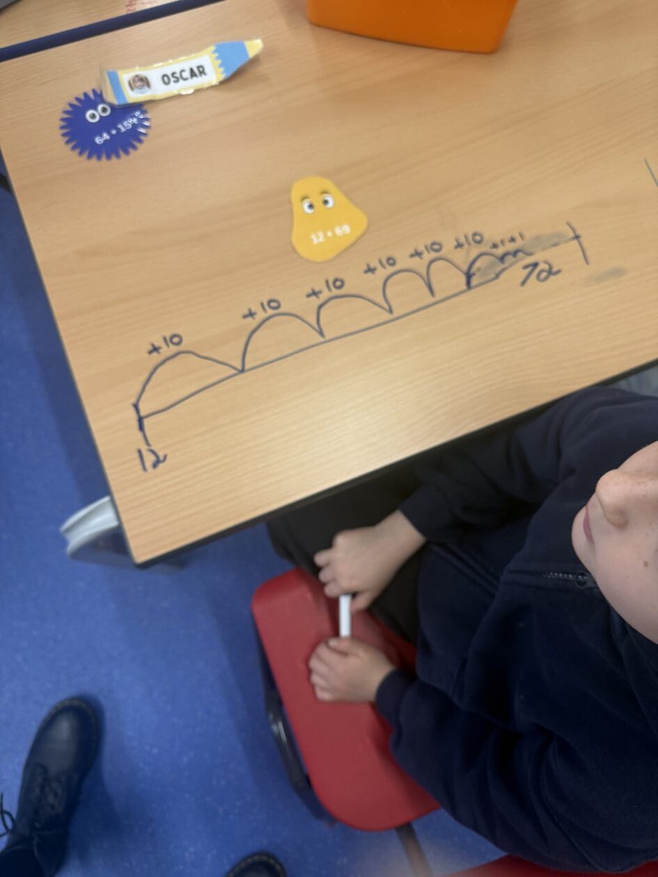 In maths this week we continued developing our understanding of the jump strategy for addition, helping the children strengthen their confidence when solving addition problems using number lines and mental strategies.