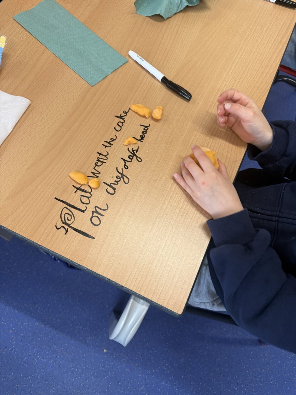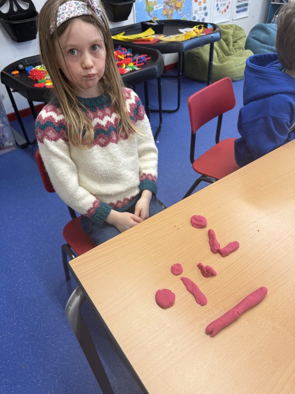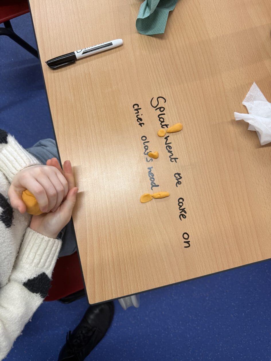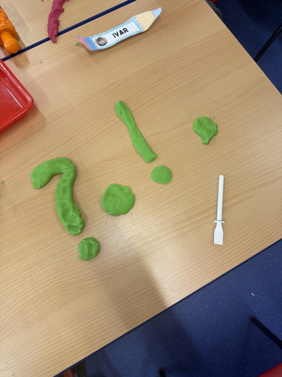 On Friday we used Play-Doh to explore sentence structure and punctuation in a hands-on way. The children created punctuation marks and used them to build sentences while listening to a short story about a Viking who liked icing, which made the activity both creative and memorable.