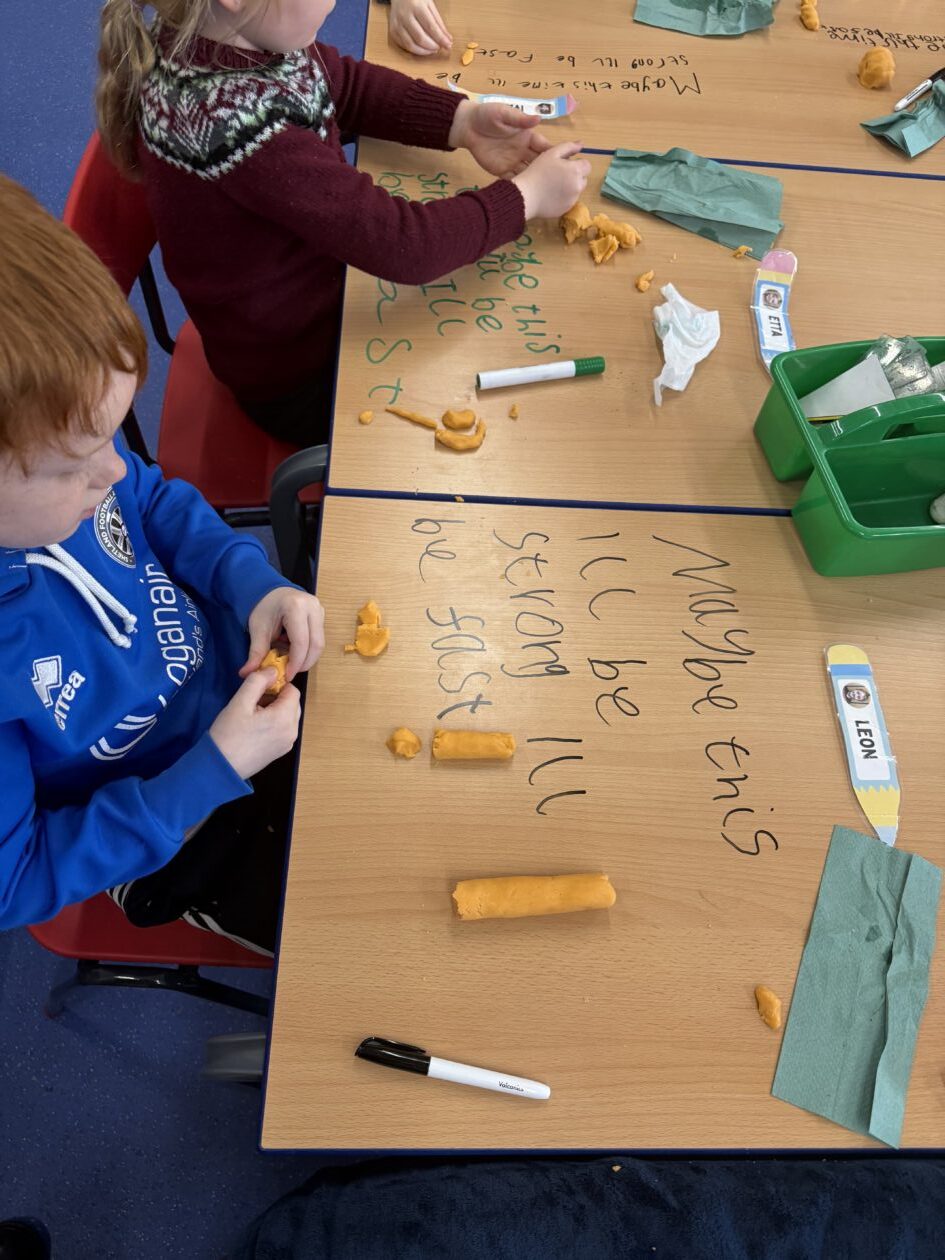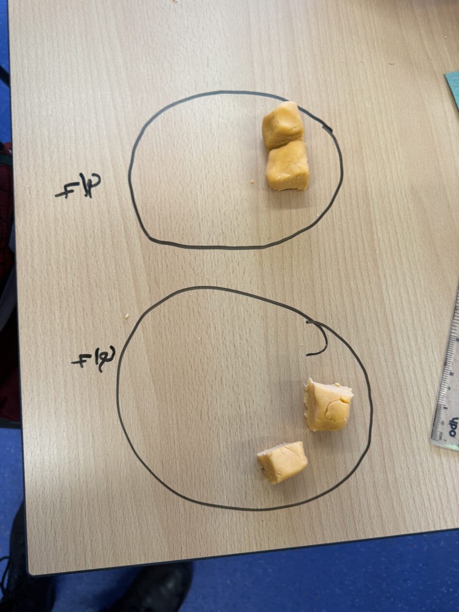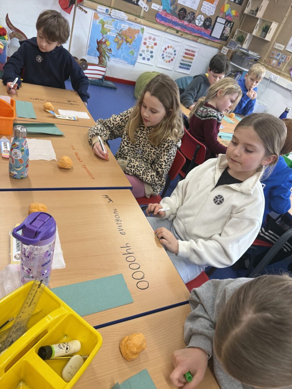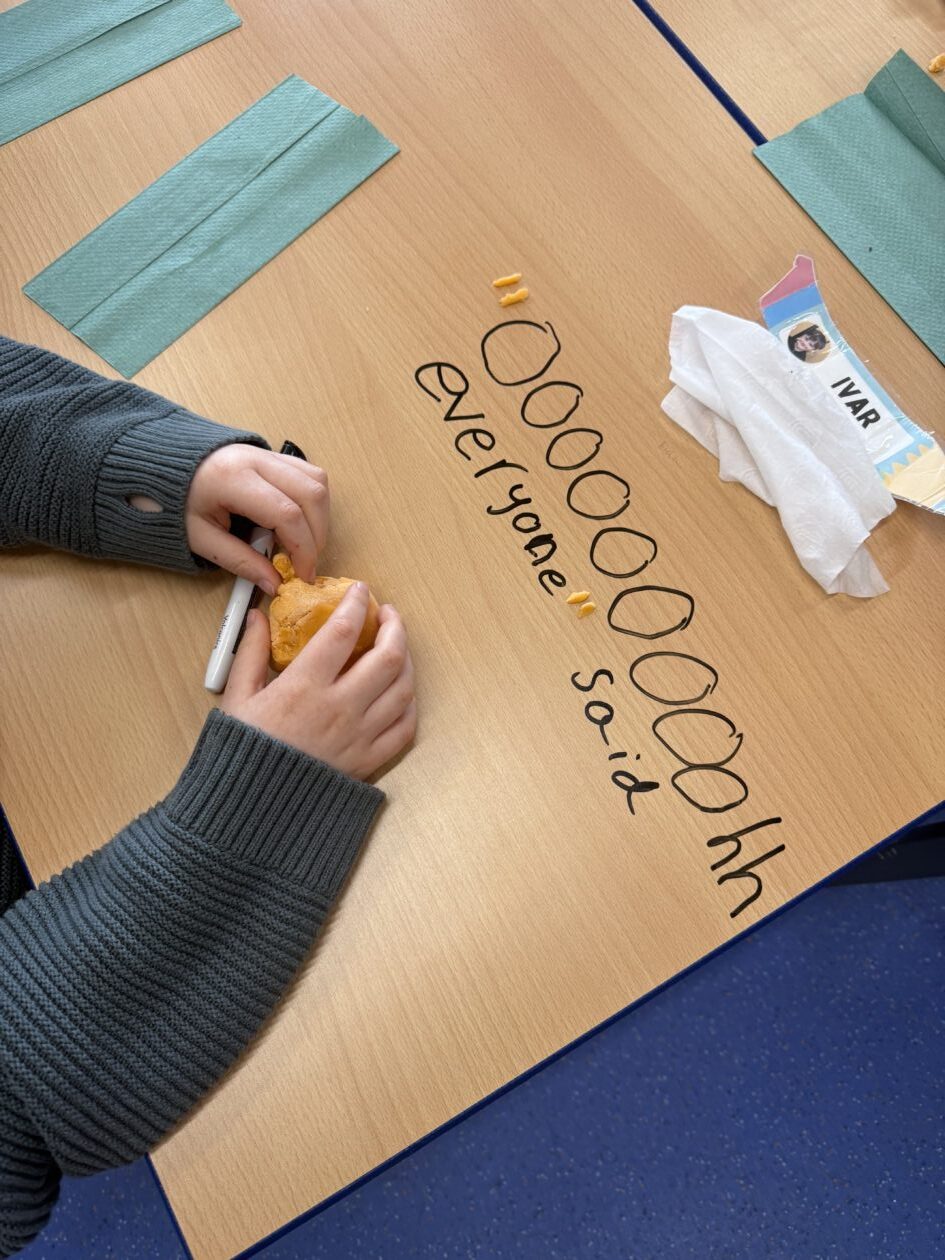 On Friday we used Play-Doh to explore sentence structure and punctuation in a hands-on way. The children created punctuation marks and used them to build sentences while listening to a short story about a Viking who liked icing, which made the activity both creative and memorable.