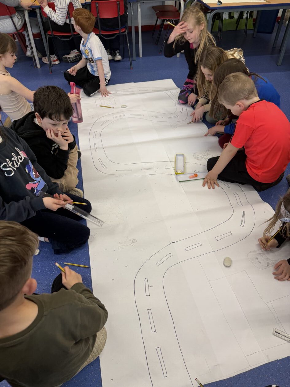 Our Primary 4 pupils also took part in a STEM activity day, where they explored coding and robotics. They worked with small programmable robots, learning how to code them to move and complete tasks while thinking about accuracy, measurement, and problem-solving.