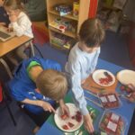 • A pancake shape station, adding shapes they have been learning about as creative β€œtoppings”