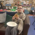 In Week 1, we focused on Charlie Cook’s Favourite Book. The children enjoyed watching a special video created by Mrs Teale for Shetland Arts during the Covid period, which brought the story to life and sparked lots of discussion about books, storytelling, and imagination.