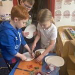 Our play provision continued to be very busy and creative. Alongside our Viking-themed resources, the children explored woodworking with hammers and nails, built structures using a range of materials, and created Viking ruin-style stones. These were turned into messages, with children writing and sharing rune-inspired messages with one another, linking play, writing, and topic learning beautifully.