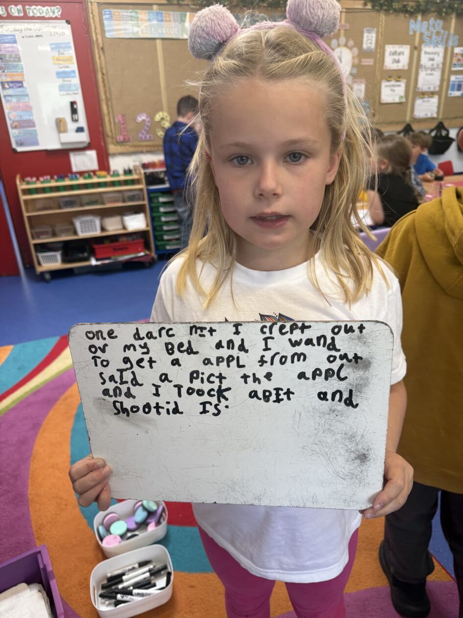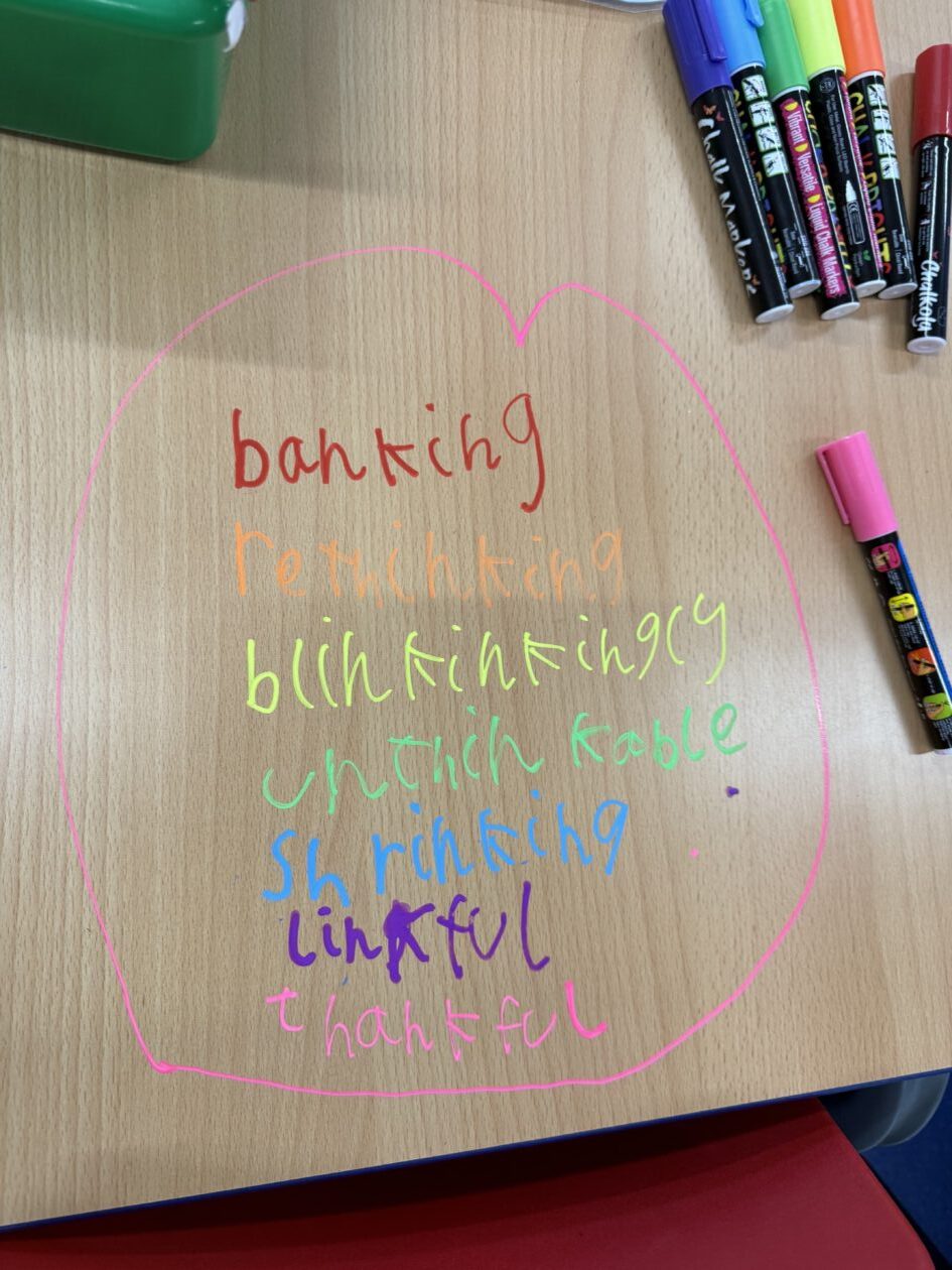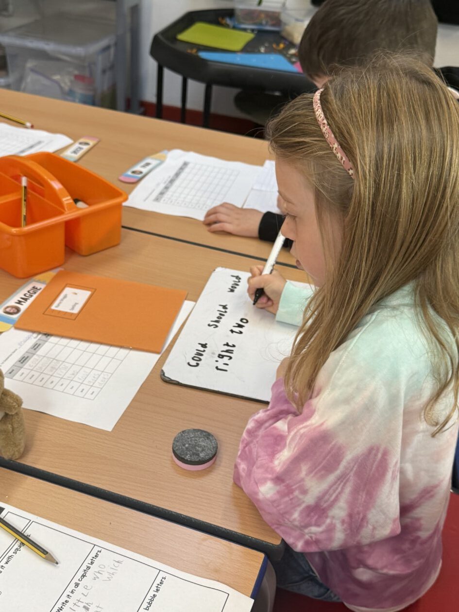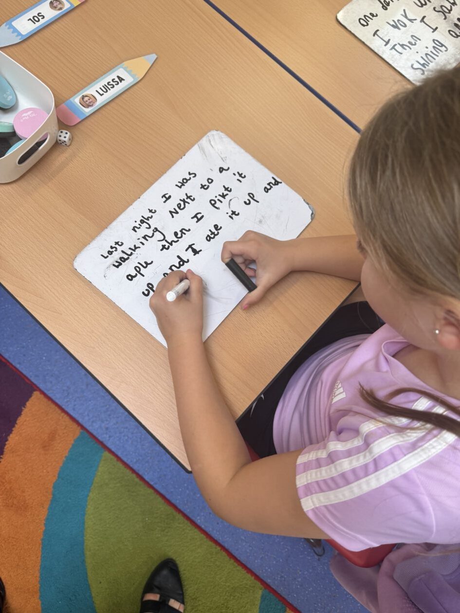 In spelling, our sound focus was ‘er’. We worked on spelling strategies that we use each week with all of our words, including breaking words into sounds, syllables, and rhymes.