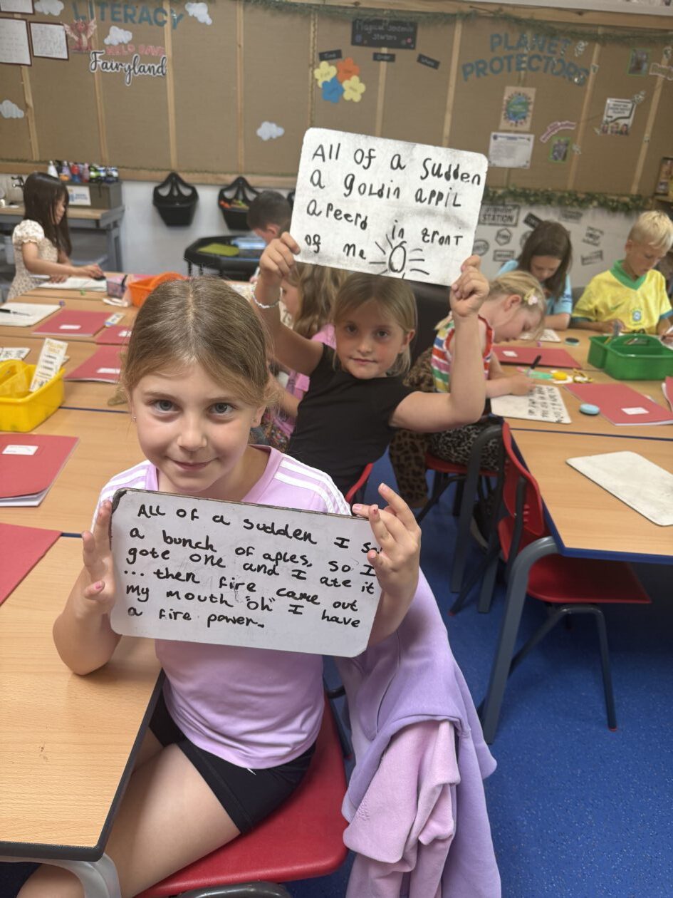 The Magic Dragon delivered The Gingerbread Man, which led to some fantastic literacy activities. We wrote instructions for catching the gingerbread man and explored how to persuade our audience around the question: “Should the Gingerbread Man have run away?” This created some brilliant debate and discussion, with children learning how to share their opinions respectfully and listen to different viewpoints.