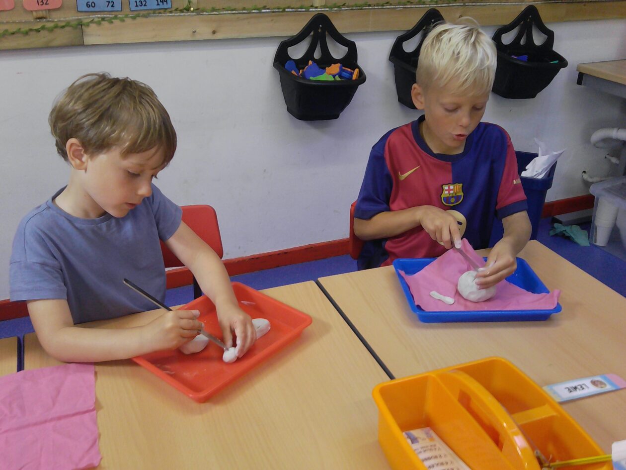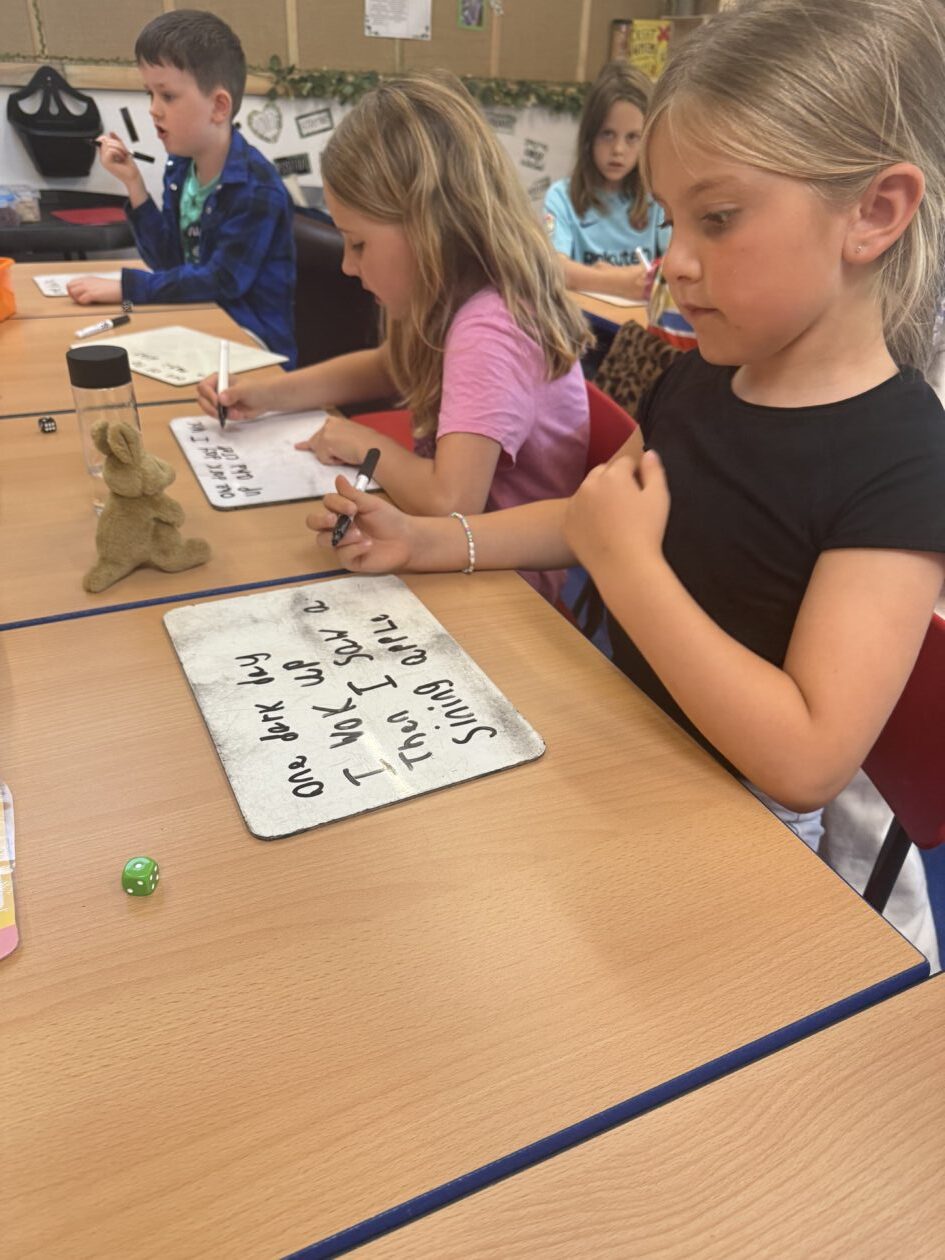 We’ve been practising more tricky words this week, finding creative ways to help us remember them. We have been focusing on adding exciting sentence openers in our writing. Our magical dragon friend also returned, bringing us new stories and writing challenges. The class is helping him save Fairyland by reading and writing fairy tales — and their imaginations have been truly wonderful! They have even made clay fairyland items today!