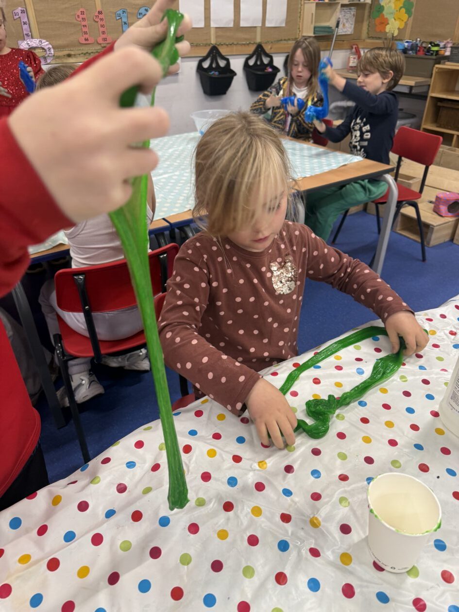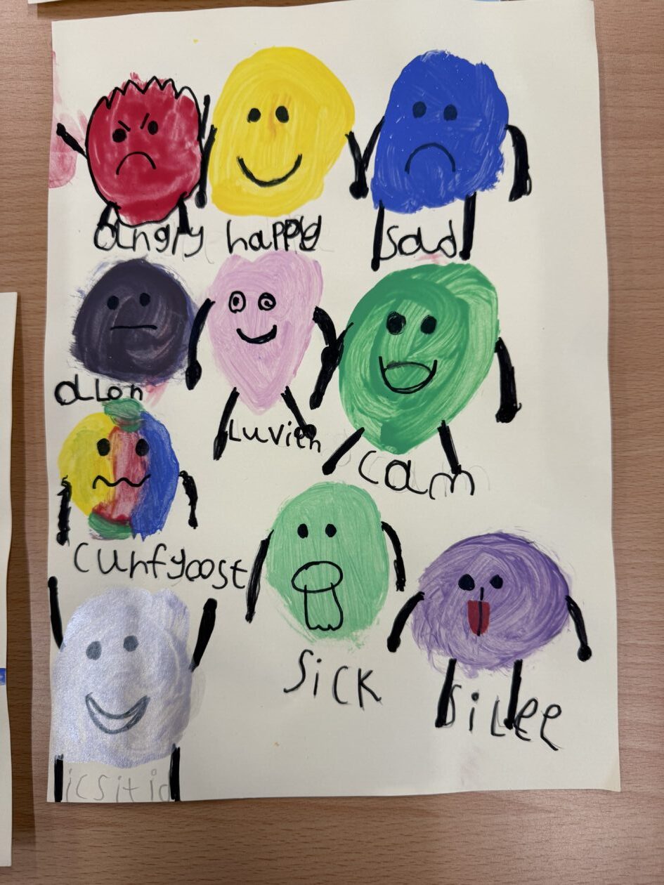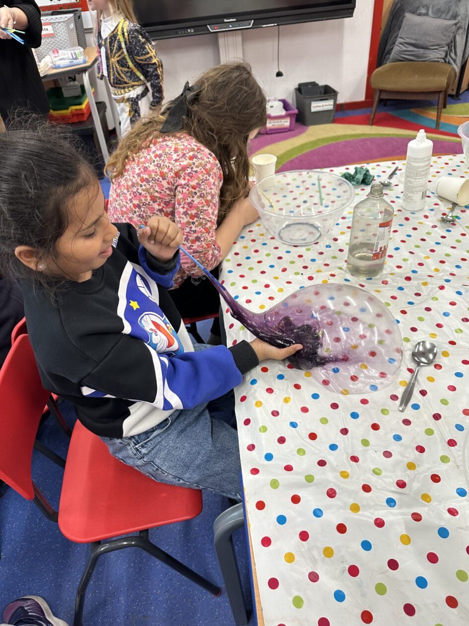 This term we’ve moved on to a new writing focus: vocabulary. Our first area is adjectives – describing words. To get us started, we created our own slime monster pictures and wrote fantastic descriptions using lots of interesting adjectives to bring our monsters to life!