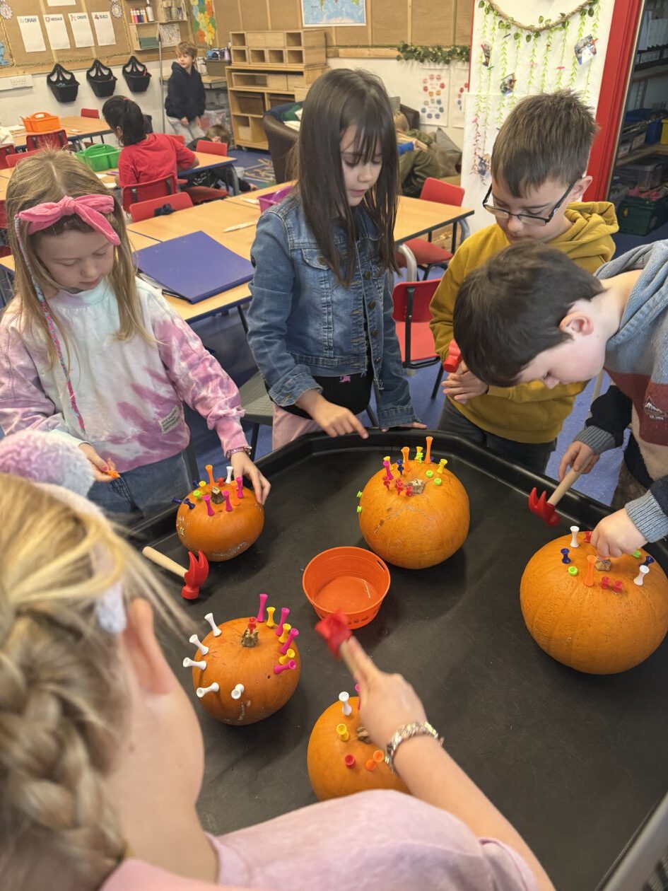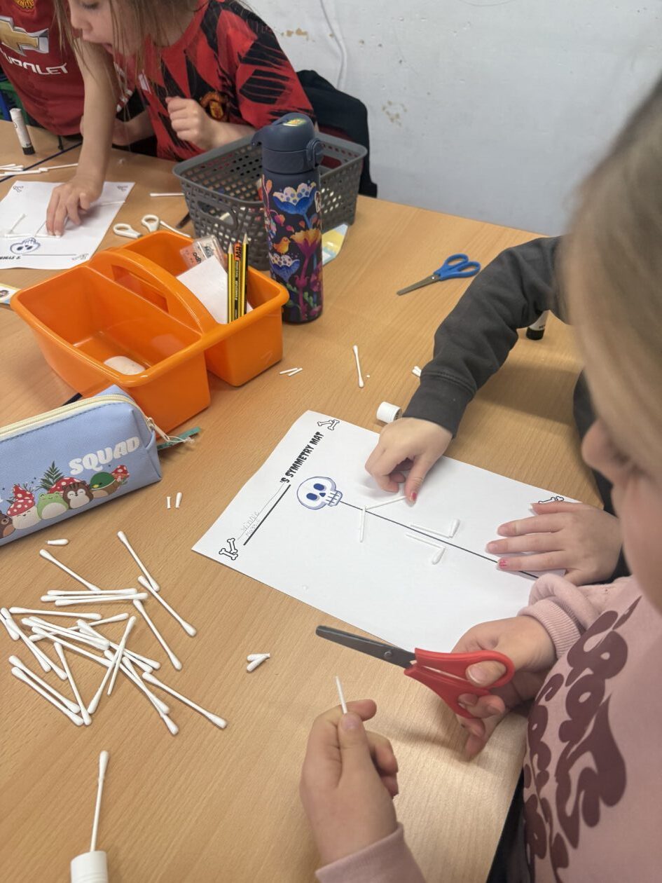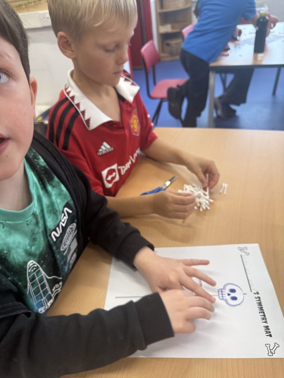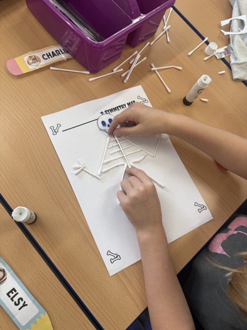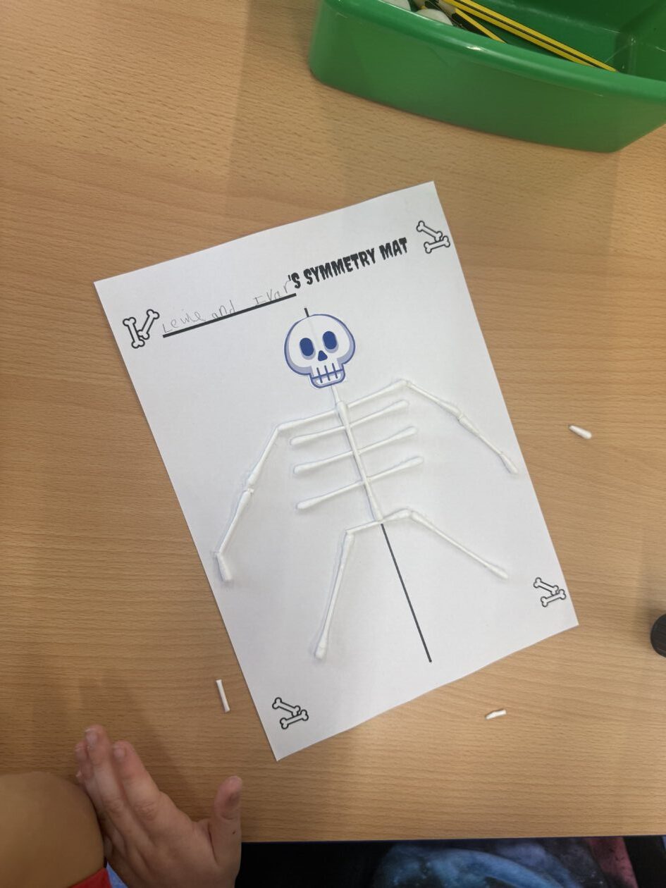We began the term by recapping place value with a fun skeleton hunt around the classroom. We also started exploring symmetry, learning how to identify when something is symmetrical and what makes it balanced. The children then created their own symmetrical skeletons, showing great creativity and accuracy!
