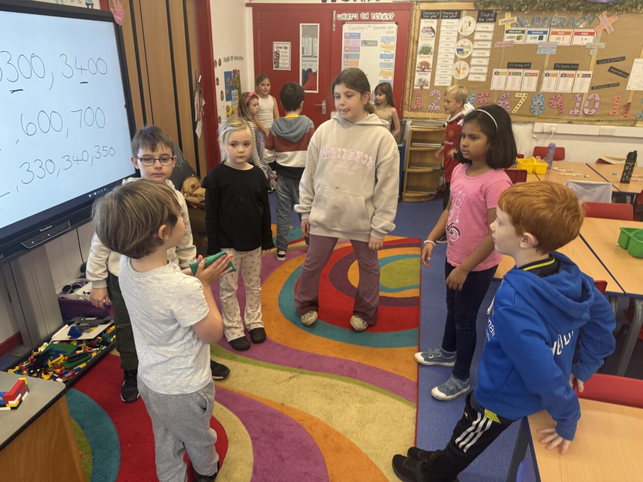 In maths, our focus this week was rounding to the nearest 10 , 100 and 1000. We began with clear teaching input, giving the children time to practise and explain their thinking.