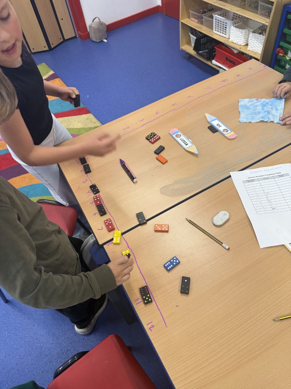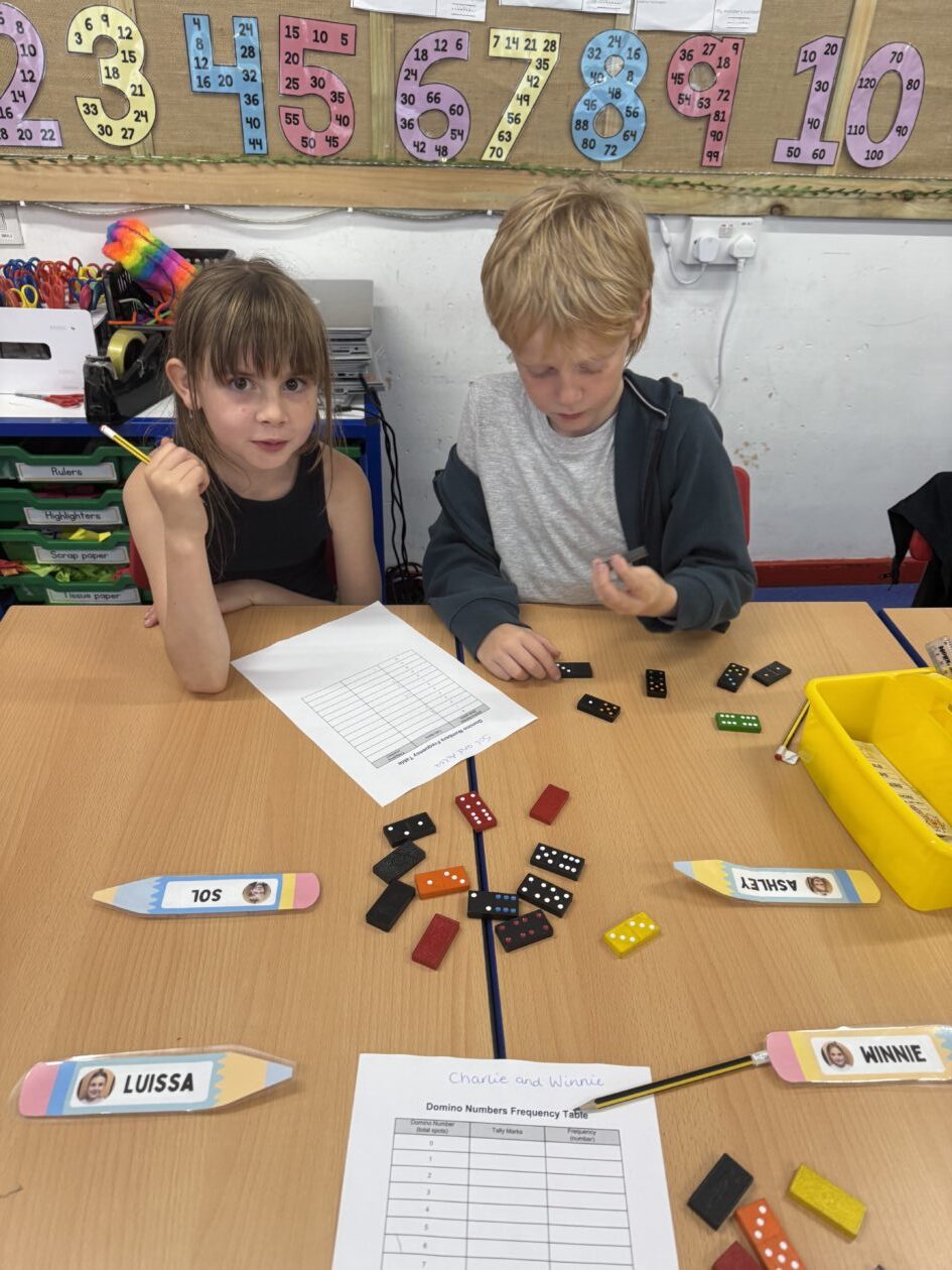 In maths, we used our place value knowledge to practise ordering and comparing numbers. We also continued our work on data handling, collecting information and presenting it in tally charts, frequency tables, and pictographs. Our hands on domino pictographs turned out to be a great display of team work, resilience and problem solving too!