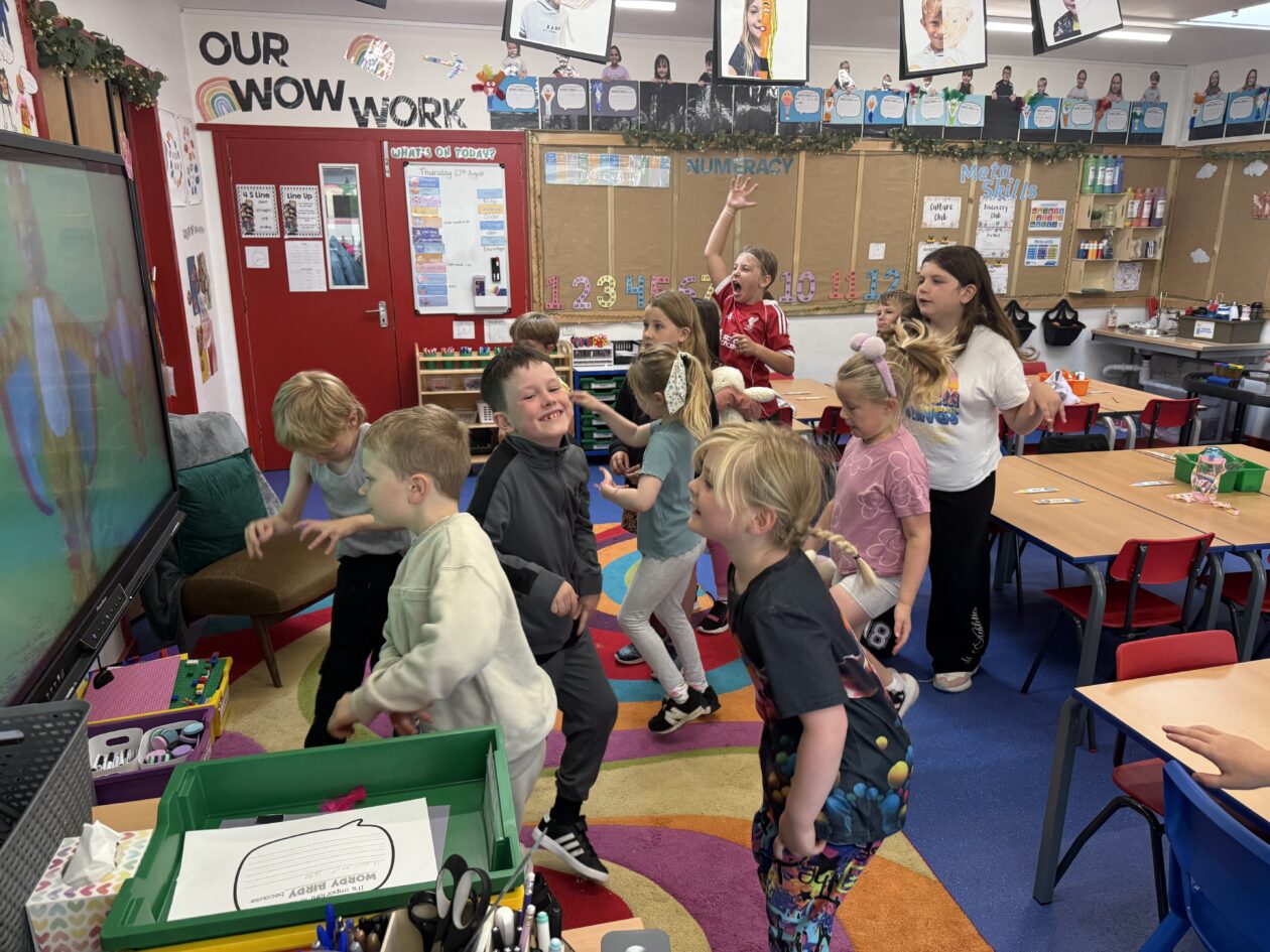 On Thursday afternoon, we revisited our knowledge of time by making playdough clocks. Afterward, we enjoyed some free play with the dough, using our imaginations to create and mould different shapes. We wrapped up the day with an energetic and joyful dough disco!