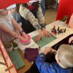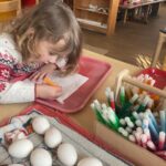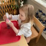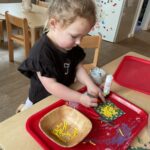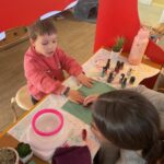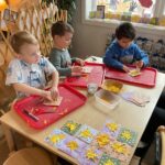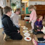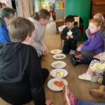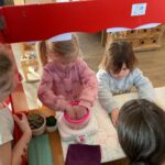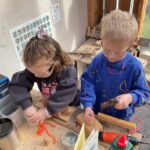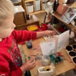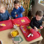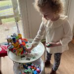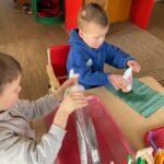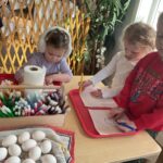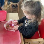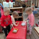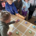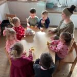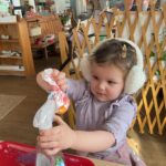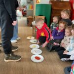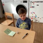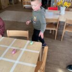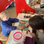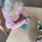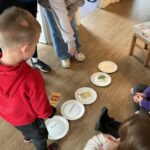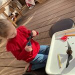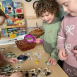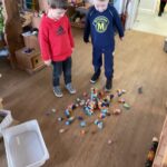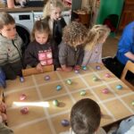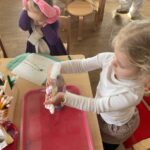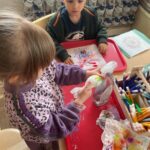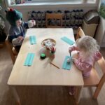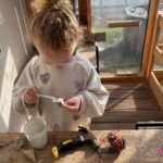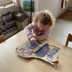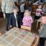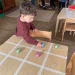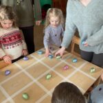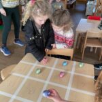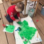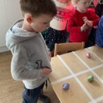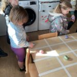The bairns asked if we could deliver something to our neighbours next to nursery. They settled on Easter chick cards using shredded paper for feathers. The bairns also decorated eggs by drawing a pattern on a piece of kitchen roll, wrapping up their egg and spraying it with water to transfer the colour to their egg shell. The bairns asked for an egg hunt. We numbered the eggs and they matched them up the numbers on the table. Some of the eggs were very well hidden but not well enough for our intrepid hunters!