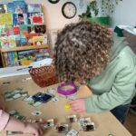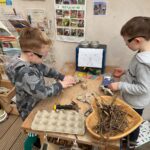The bairns have been really interested in bugs. We were able to find a collection of bugs encased in resin. Their was rich discussion around their colours, texture and the number of legs. “What’s dis one? It looks creepy!” The bairns also used magnifying glasses to get a closer look.