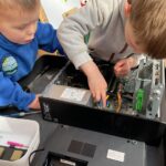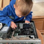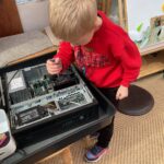 We had a generous donation of old hard drives for the bairns to take apart. They used screwdrivers to loosen the screws and find out what was inside. “That’s a fan, see.”