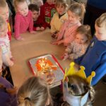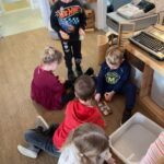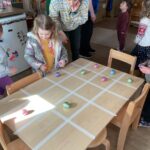 Here is a selection of our play and learning from the remainder of the week. The bairns have been playing team games, building a den in the outdoor room, celebrating a birthday, sliding down the icy path, checking flight paths, measuring carrots and accessing QR codes.