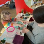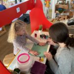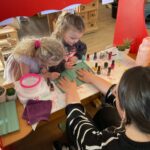 The bairns set about decorating their spa with pictures and signs. They laid out towels, blankets and mats. The bairns phoned to make an appointment for their treatment. When they arrived at the spa, they chose their nail polish colour, a tattoo and they could use the Orbeez hand and nail spa. The spa was a very popular place and there were even some appointments left for the adults!