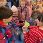 We had a visit from some of the Primary 7 bairns who spoke about healthy eating, screen time and exercise. There were plenty of interactive games for the bairns to join in.