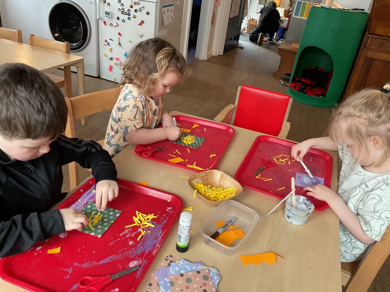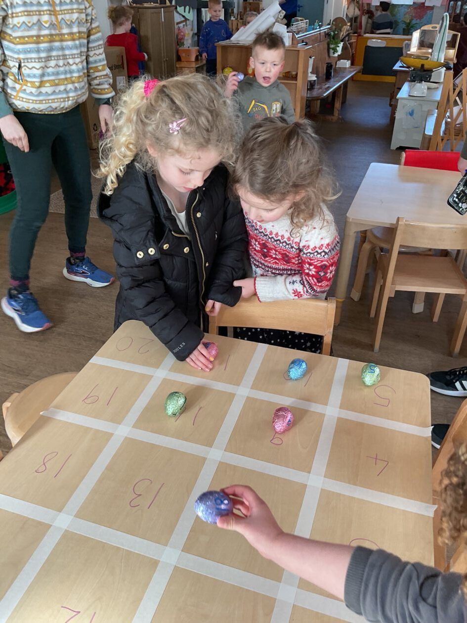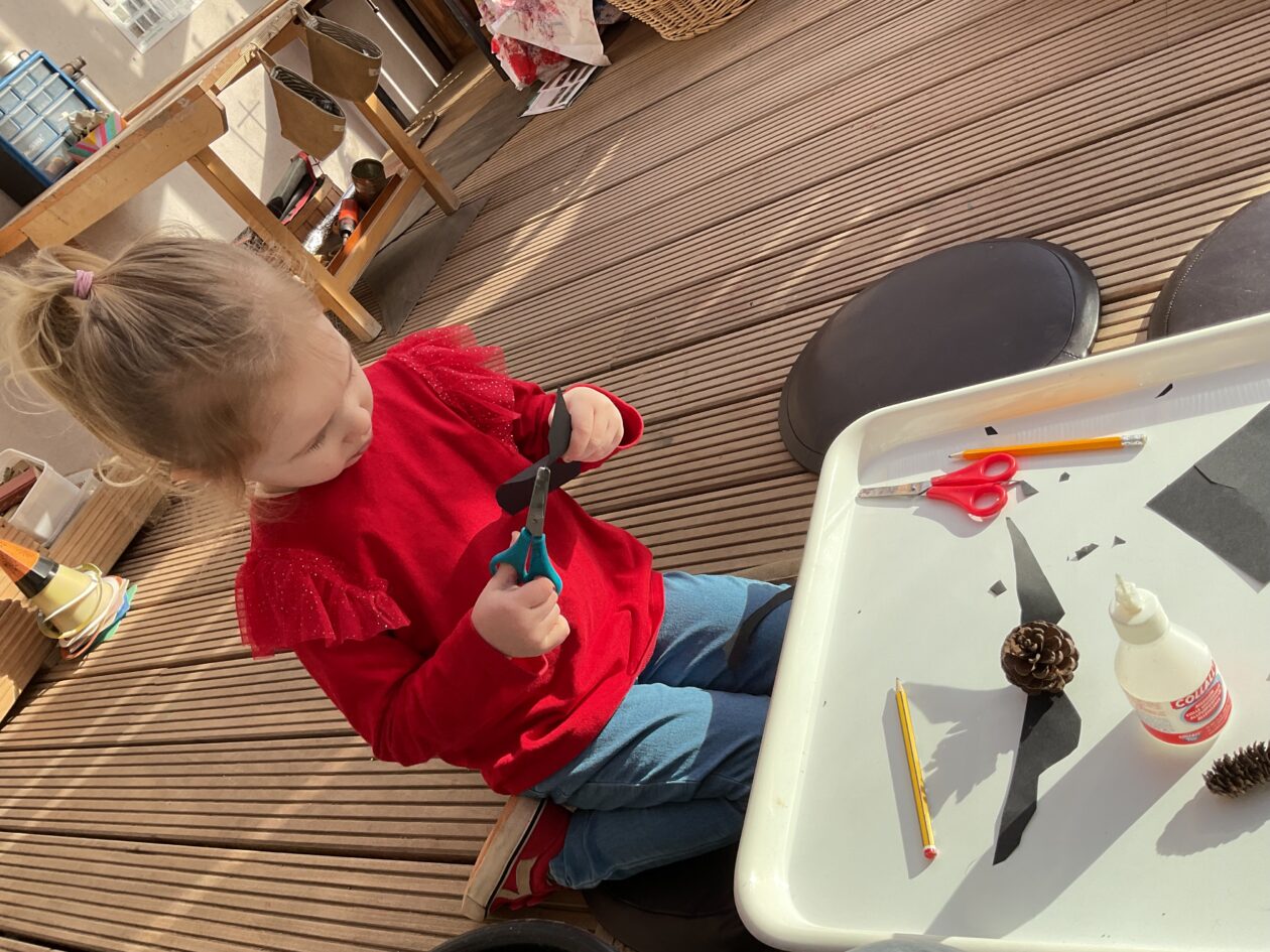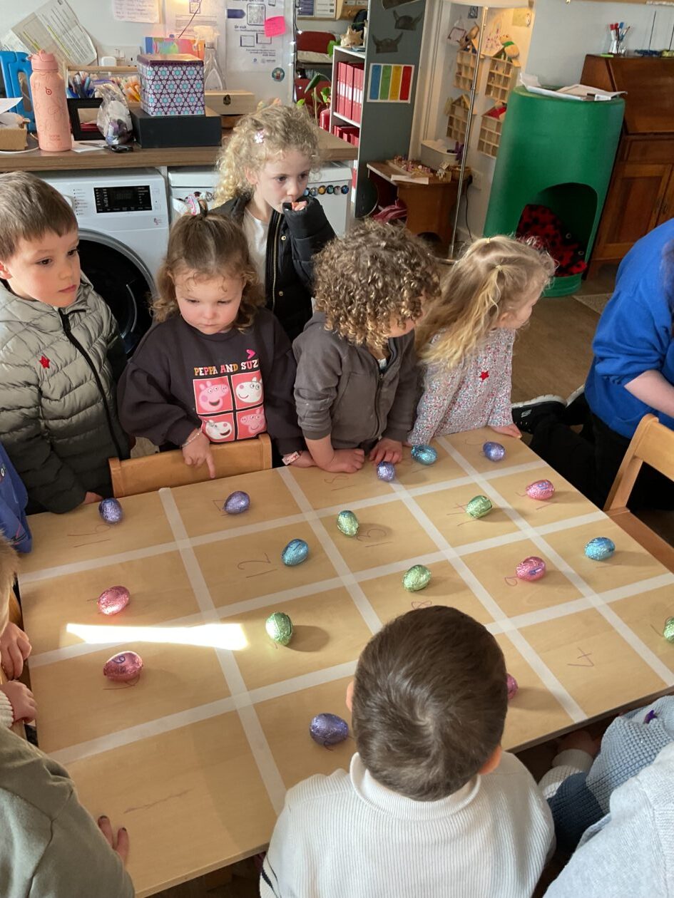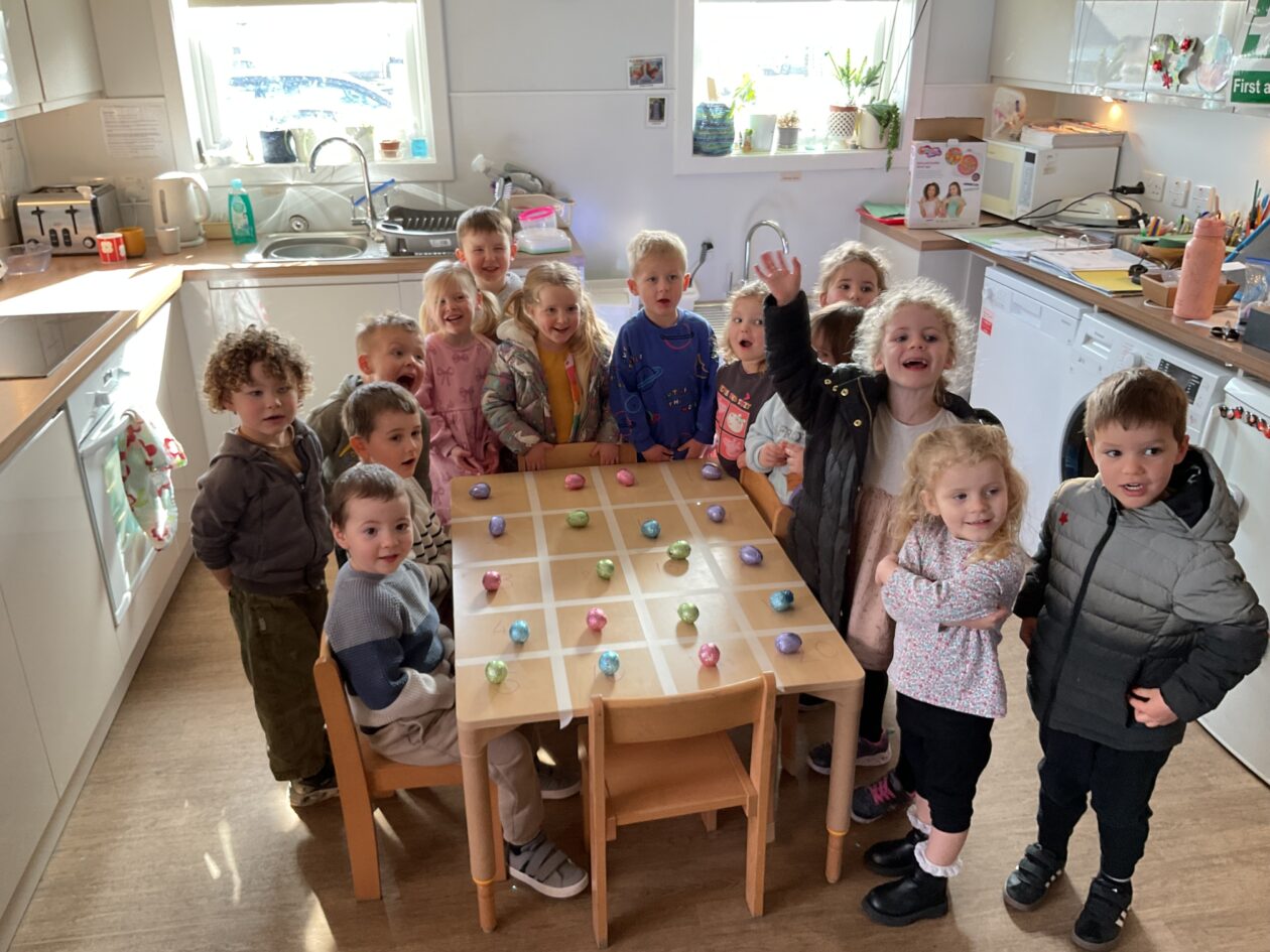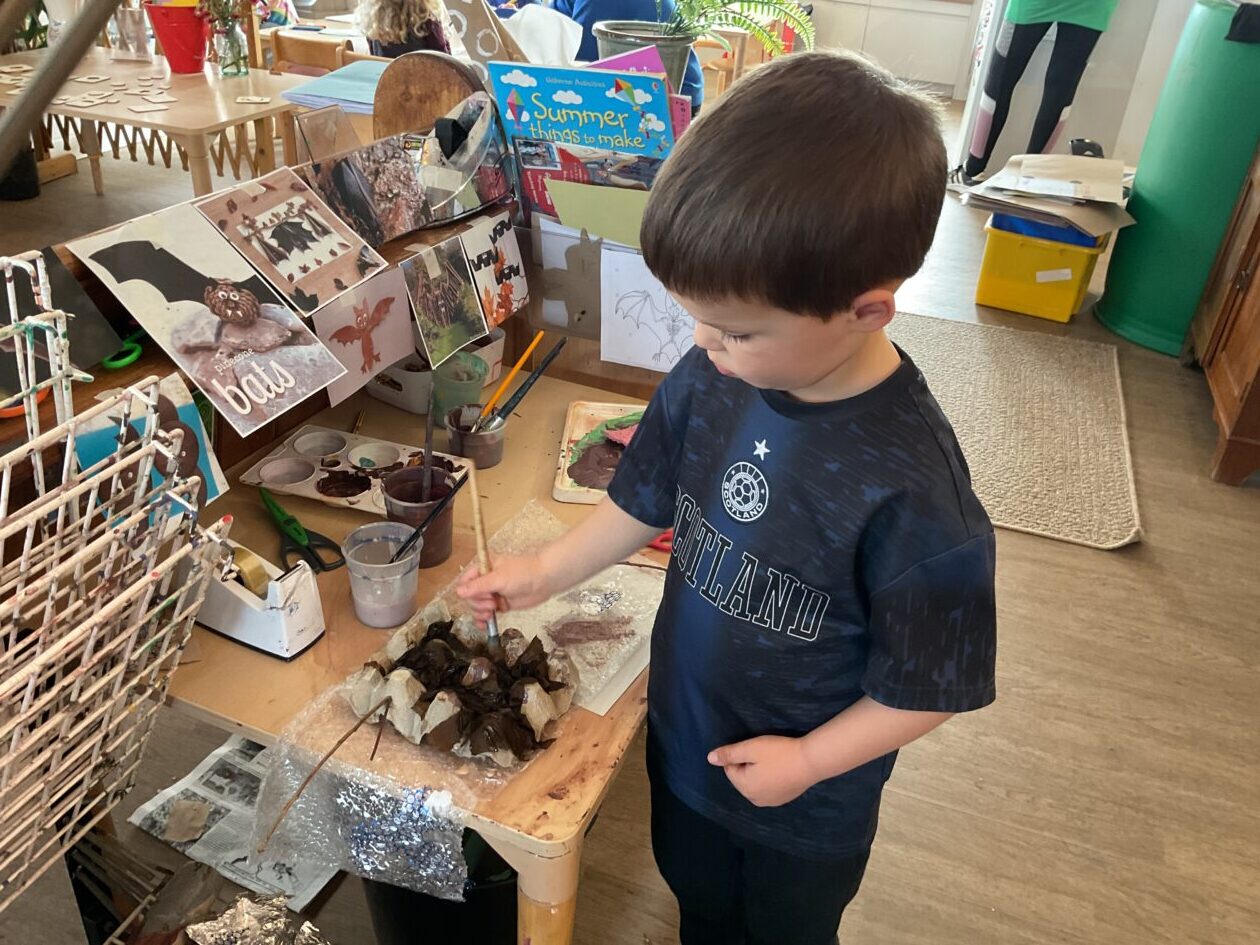 The bairns asked if we could deliver something to our neighbours next to nursery. They settled on Easter chick cards using shredded paper for feathers. The bairns also decorated eggs by drawing a pattern on a piece of kitchen roll, wrapping up their egg and spraying it with water to transfer the colour to their egg shell. The bairns asked for an egg hunt. We numbered the eggs and they matched them up the numbers on the table. Some of the eggs were very well hidden but not well enough for our intrepid hunters!