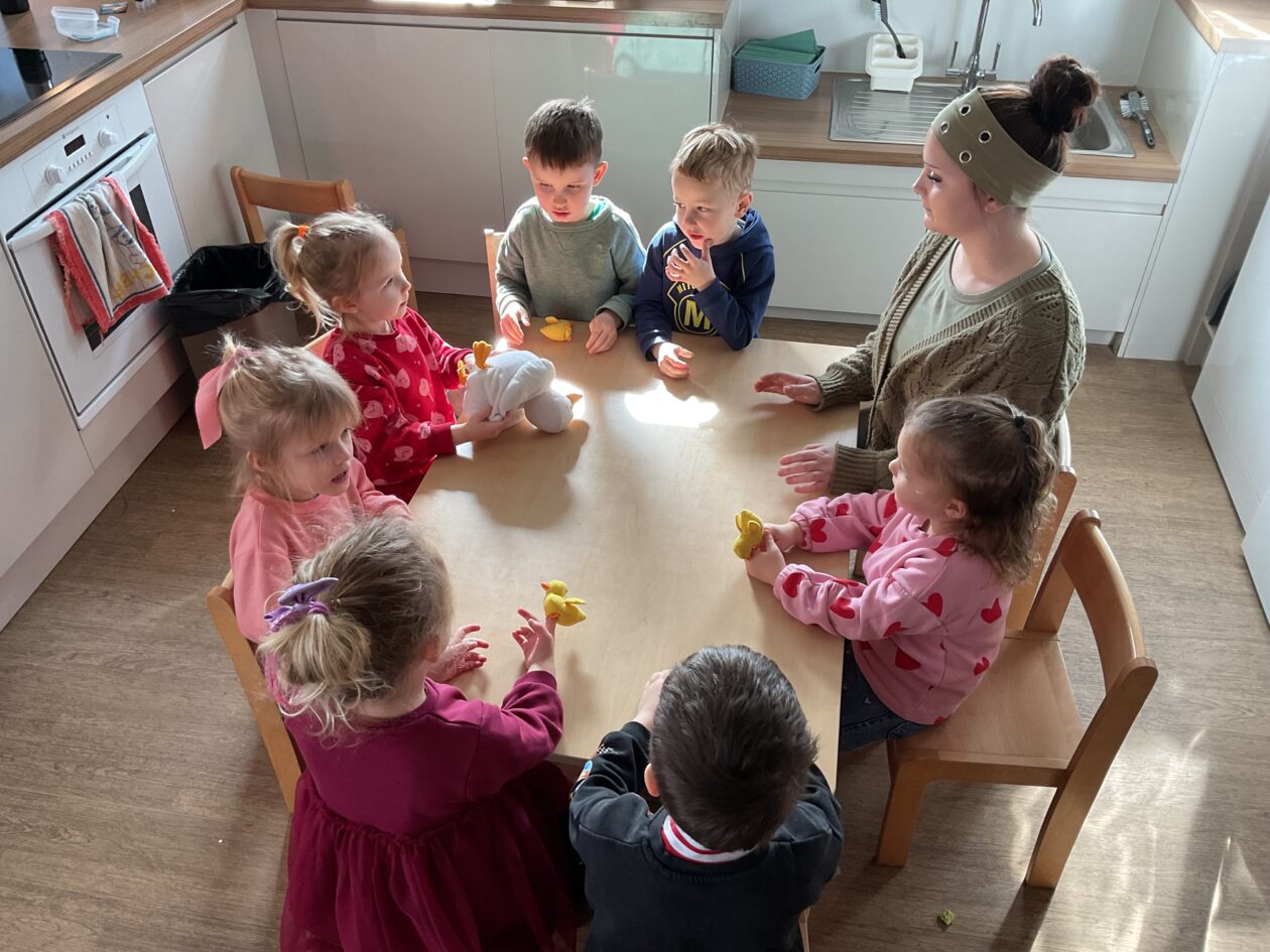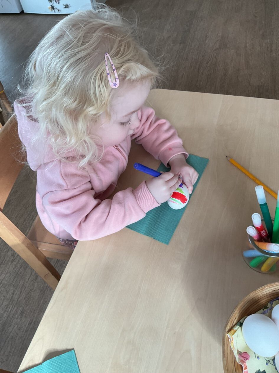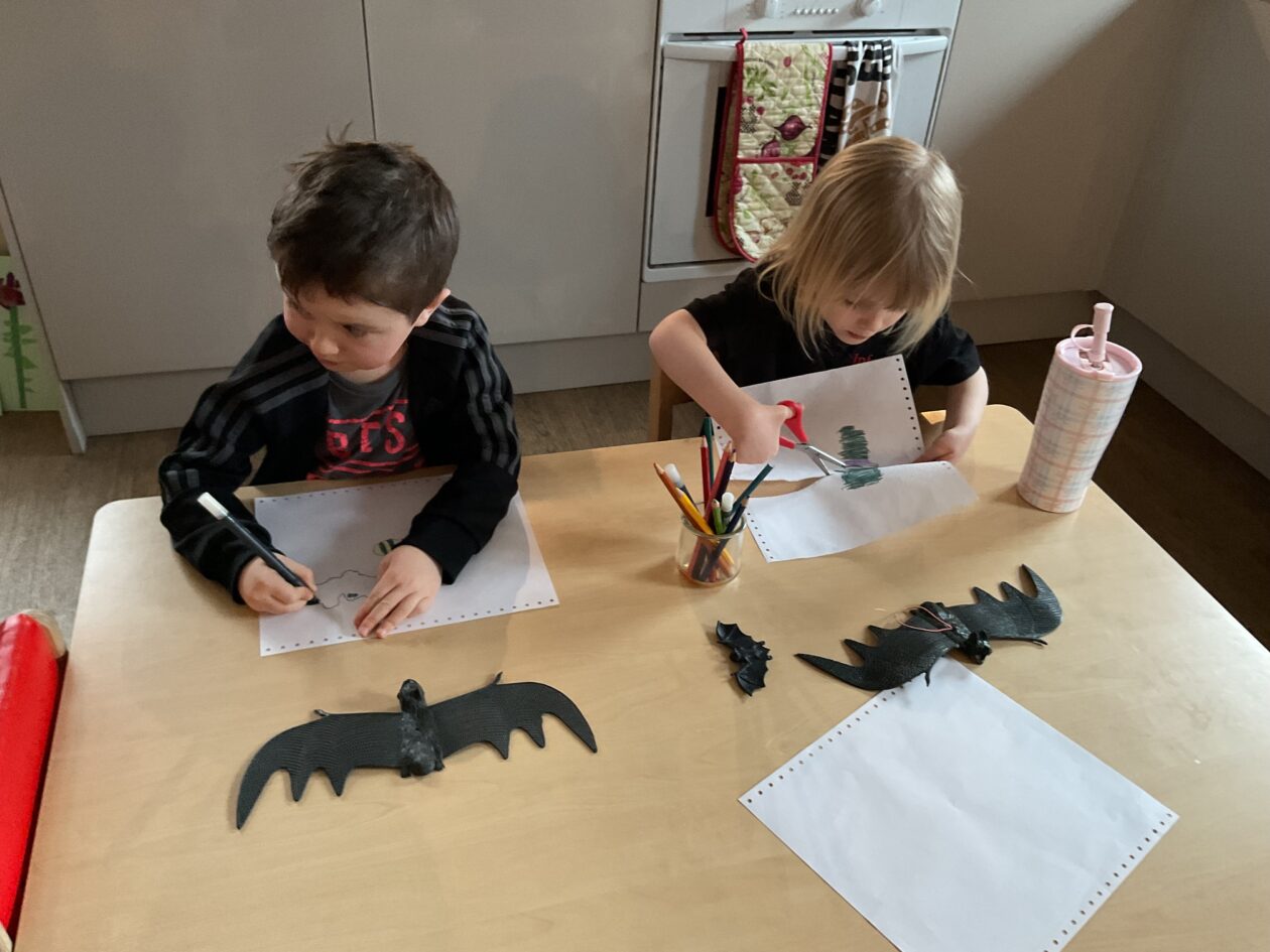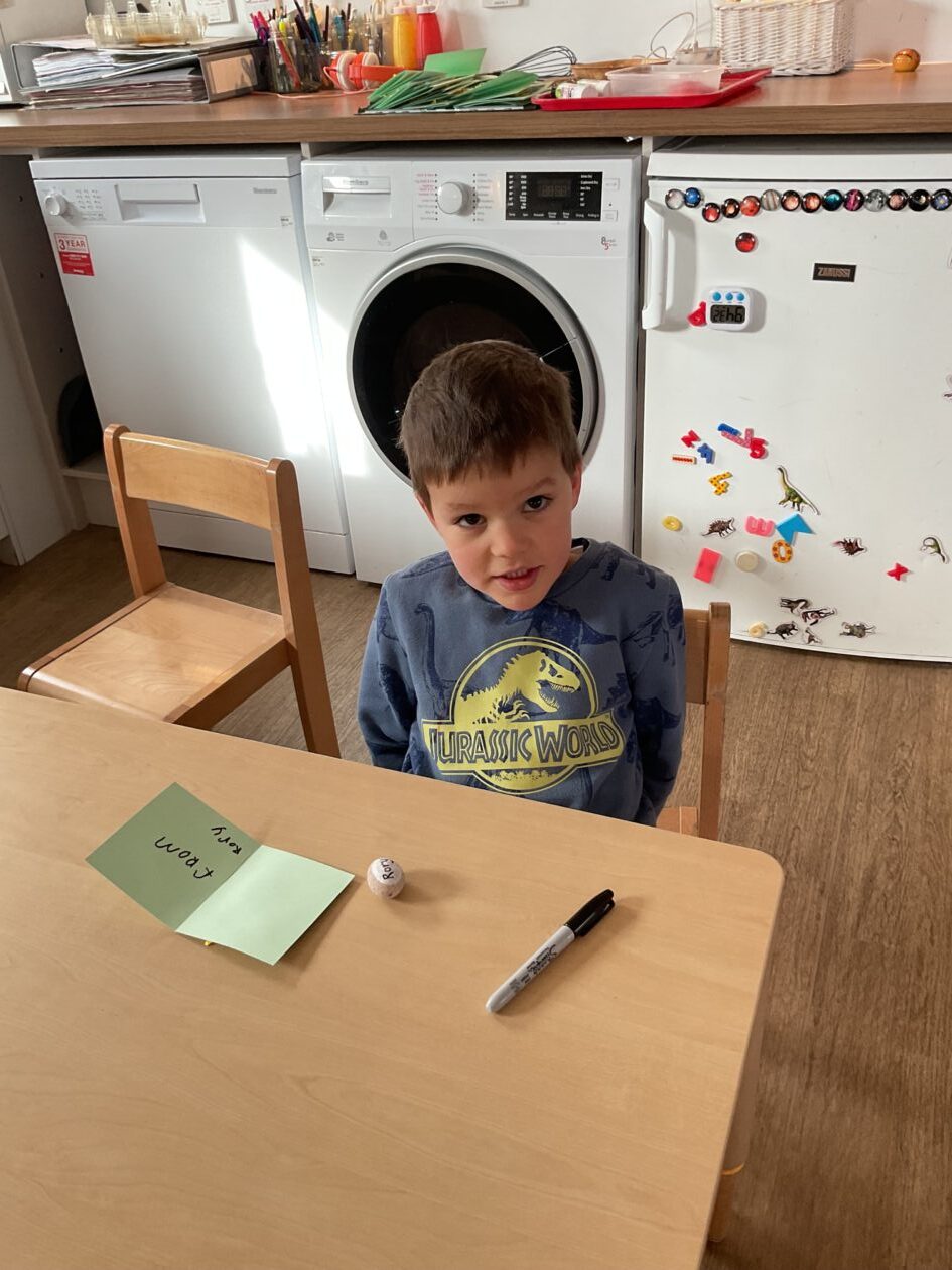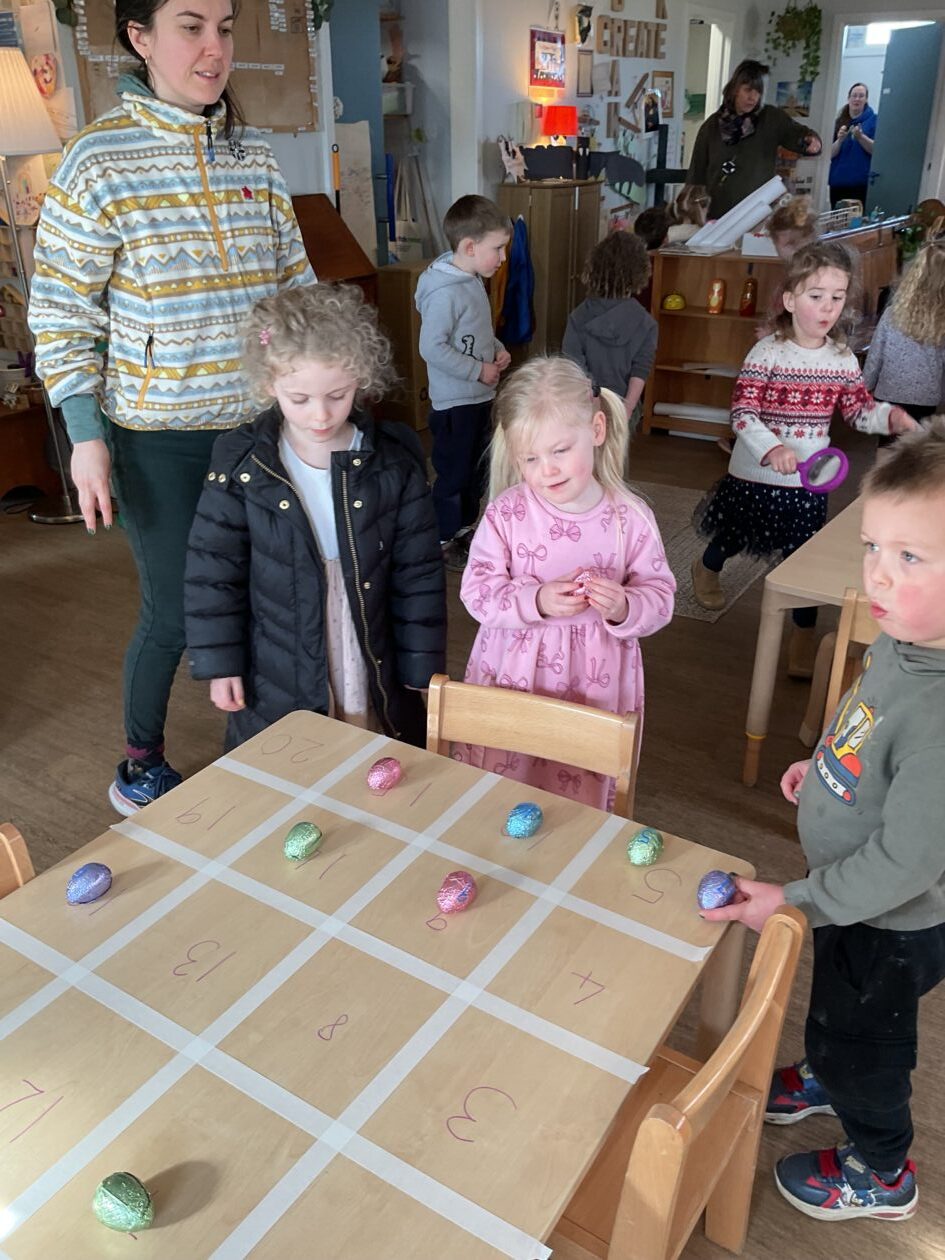 The bairns asked if we could deliver something to our neighbours next to nursery. They settled on Easter chick cards using shredded paper for feathers. The bairns also decorated eggs by drawing a pattern on a piece of kitchen roll, wrapping up their egg and spraying it with water to transfer the colour to their egg shell. The bairns asked for an egg hunt. We numbered the eggs and they matched them up the numbers on the table. Some of the eggs were very well hidden but not well enough for our intrepid hunters!