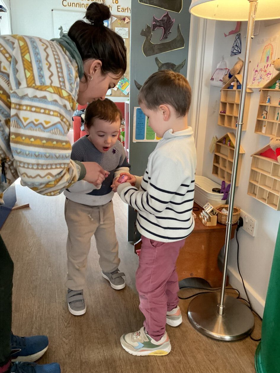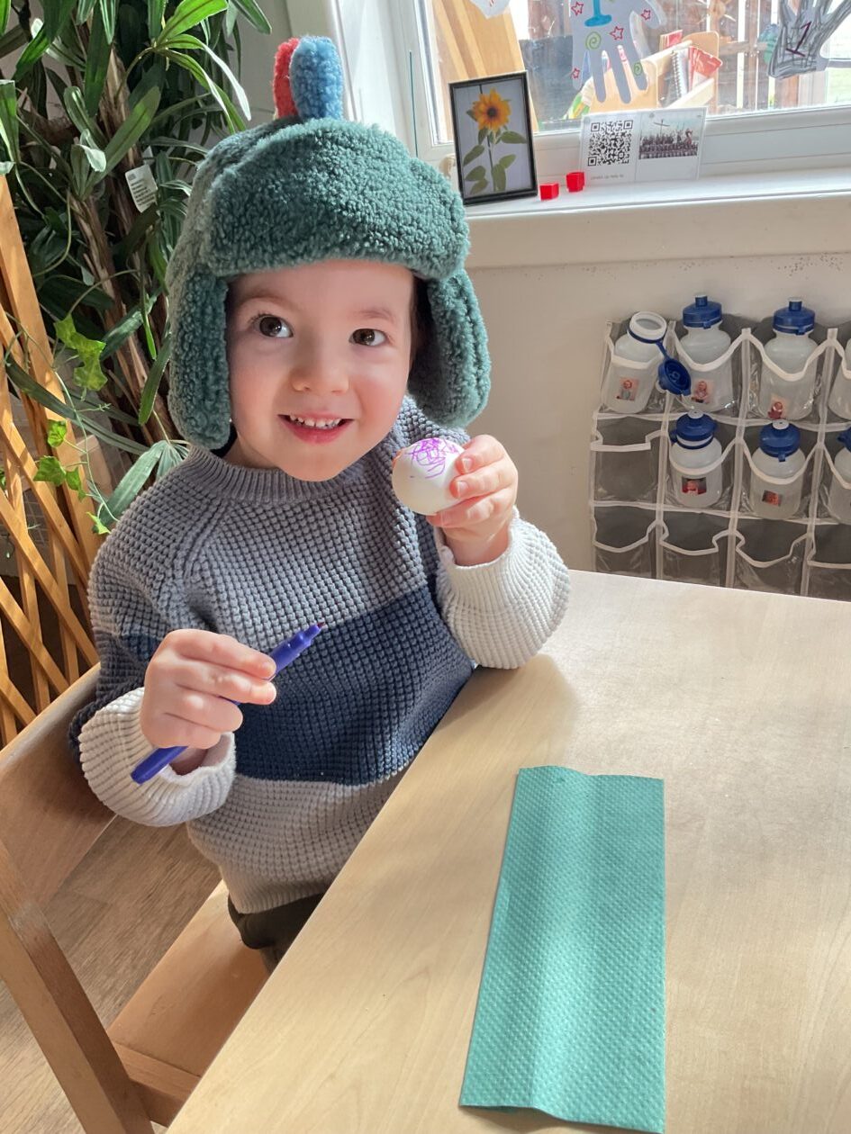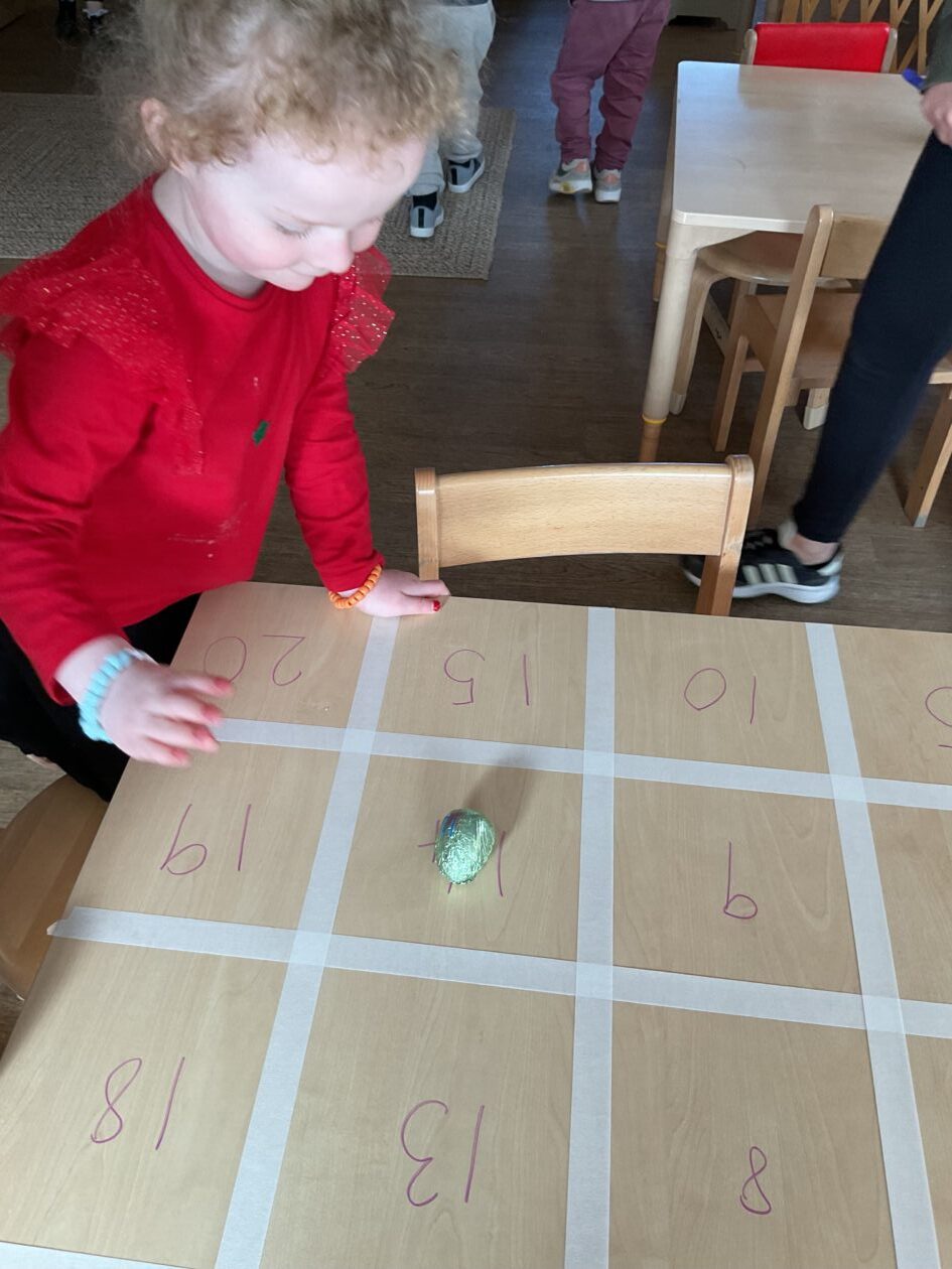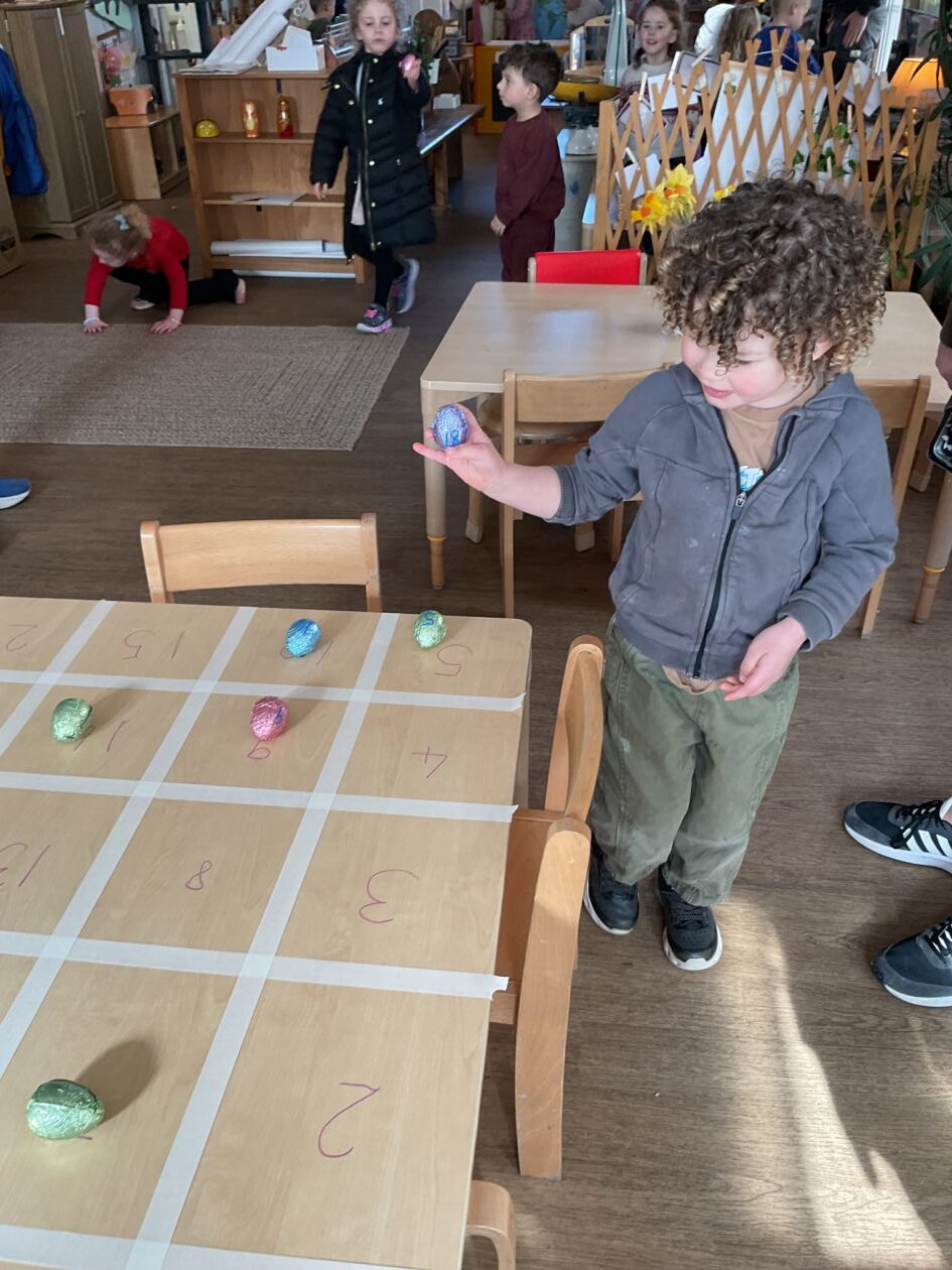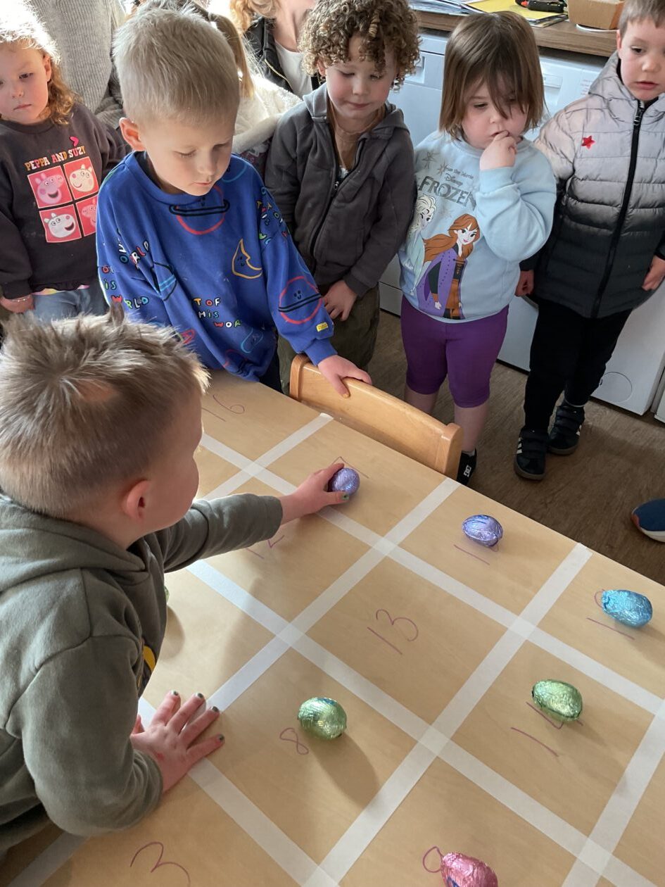 The bairns asked if we could deliver something to our neighbours next to nursery. They settled on Easter chick cards using shredded paper for feathers. The bairns also decorated eggs by drawing a pattern on a piece of kitchen roll, wrapping up their egg and spraying it with water to transfer the colour to their egg shell. The bairns asked for an egg hunt. We numbered the eggs and they matched them up the numbers on the table. Some of the eggs were very well hidden but not well enough for our intrepid hunters!