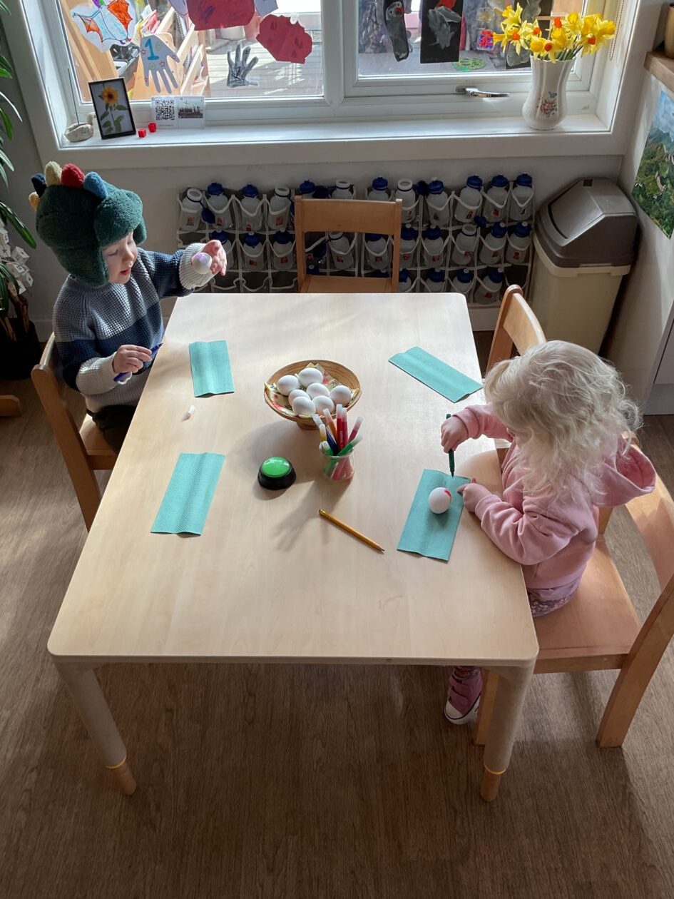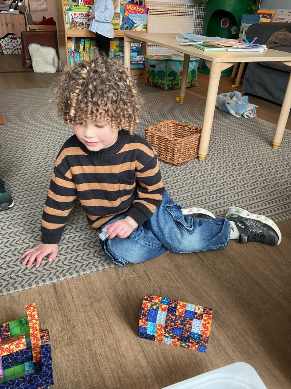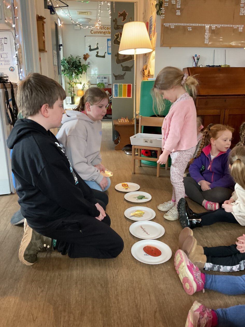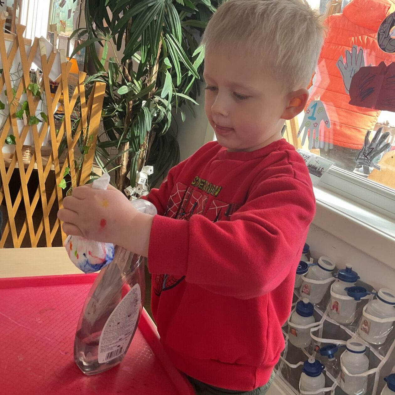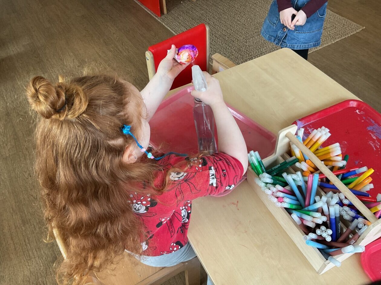 The bairns asked if we could deliver something to our neighbours next to nursery. They settled on Easter chick cards using shredded paper for feathers. The bairns also decorated eggs by drawing a pattern on a piece of kitchen roll, wrapping up their egg and spraying it with water to transfer the colour to their egg shell. The bairns asked for an egg hunt. We numbered the eggs and they matched them up the numbers on the table. Some of the eggs were very well hidden but not well enough for our intrepid hunters!