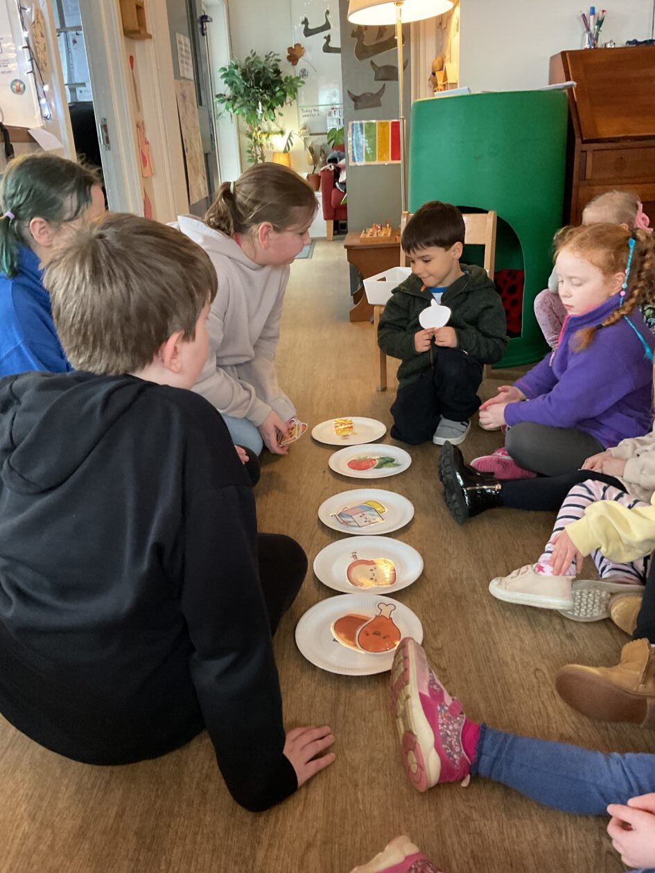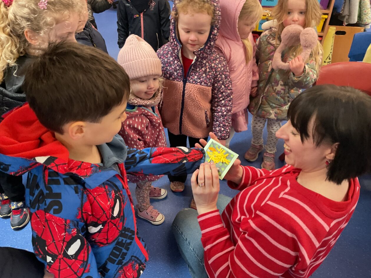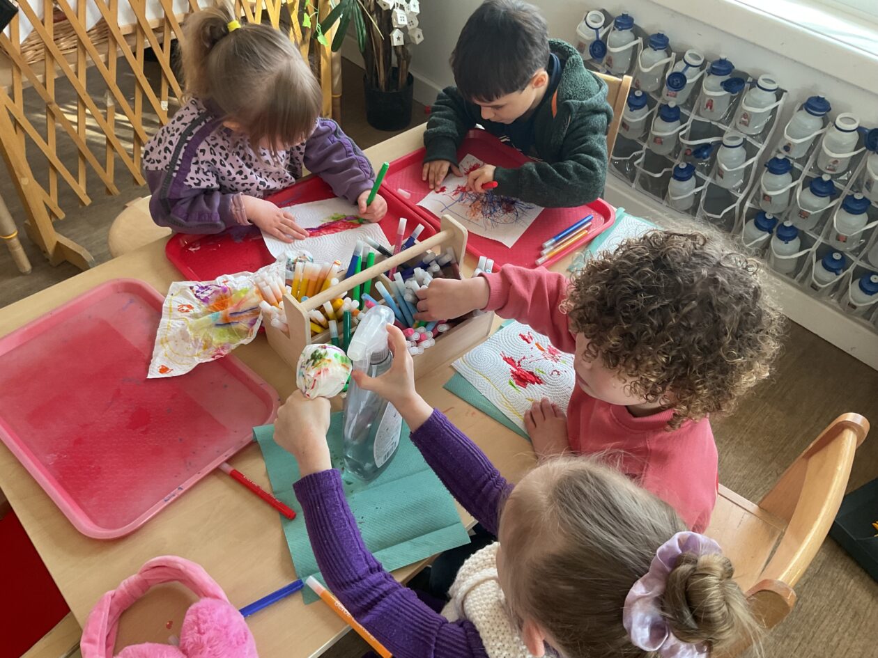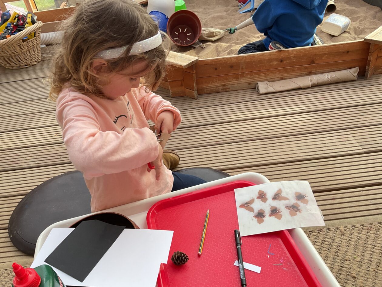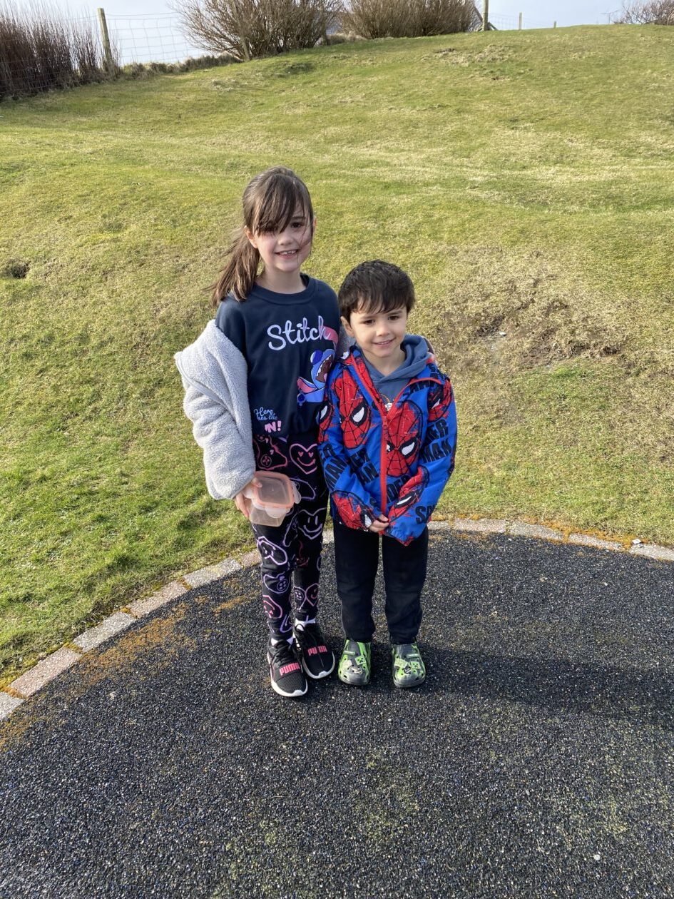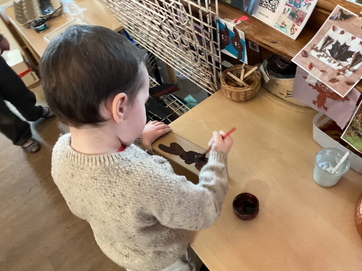 The bairns asked if we could deliver something to our neighbours next to nursery. They settled on Easter chick cards using shredded paper for feathers. The bairns also decorated eggs by drawing a pattern on a piece of kitchen roll, wrapping up their egg and spraying it with water to transfer the colour to their egg shell. The bairns asked for an egg hunt. We numbered the eggs and they matched them up the numbers on the table. Some of the eggs were very well hidden but not well enough for our intrepid hunters!