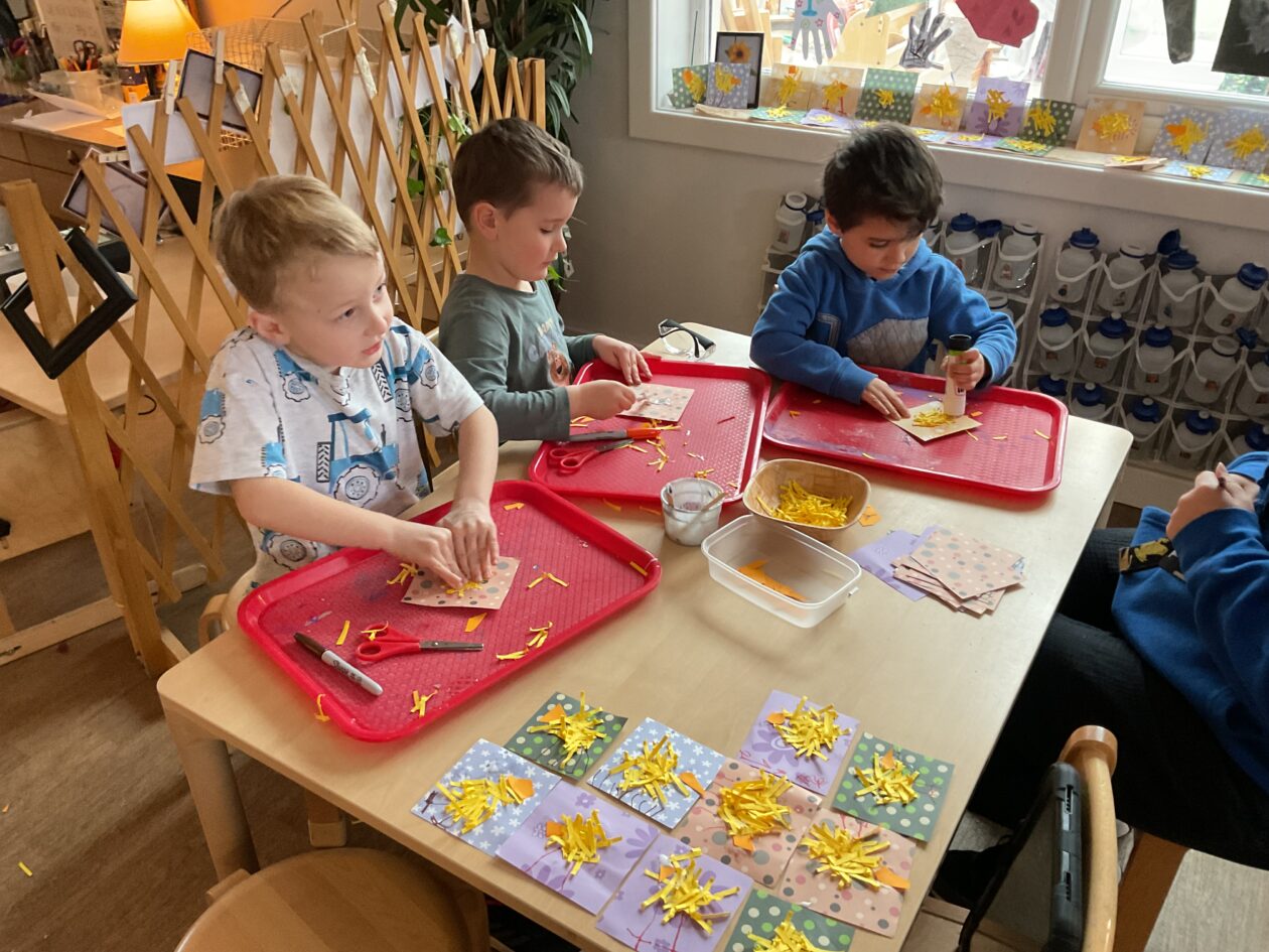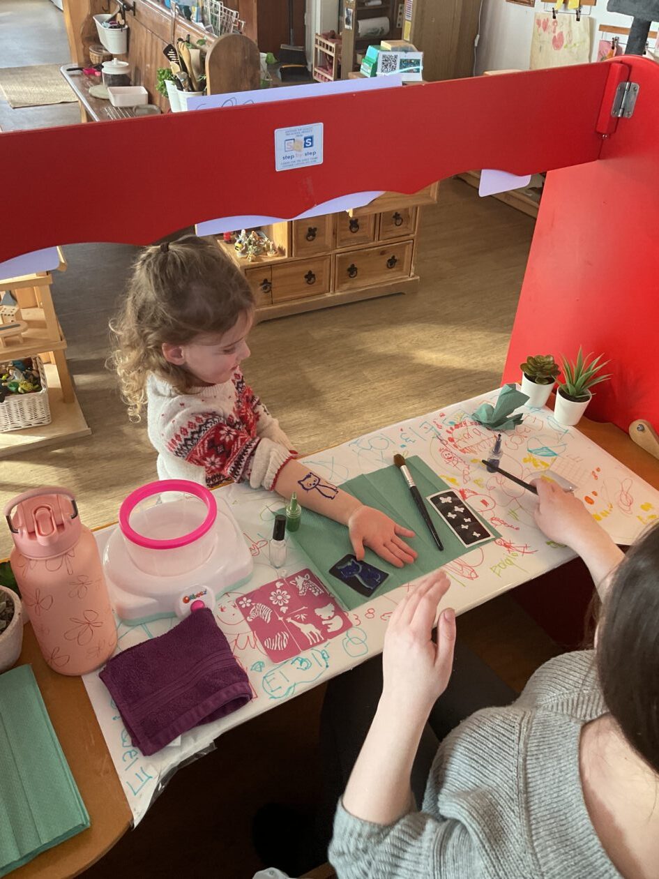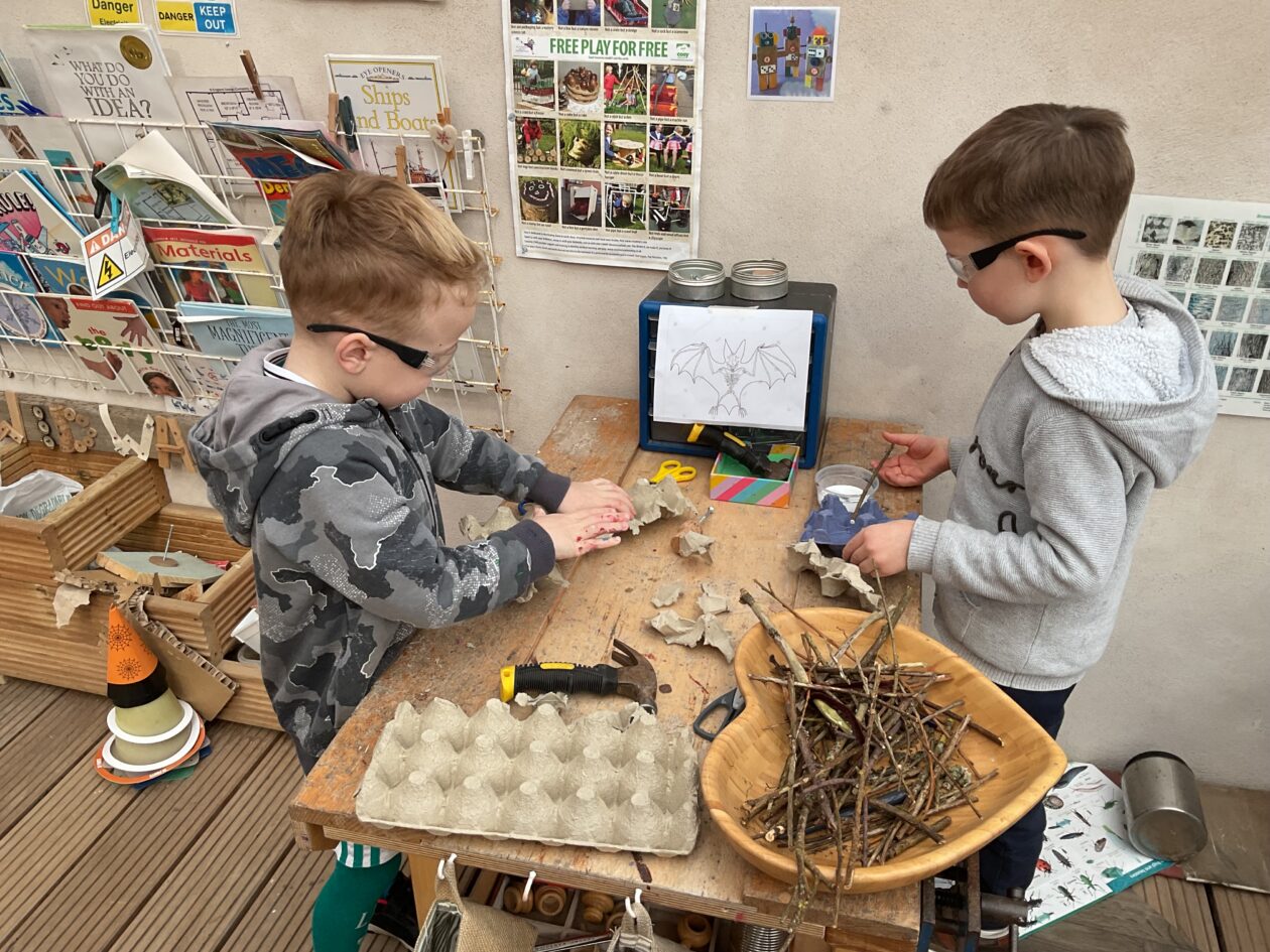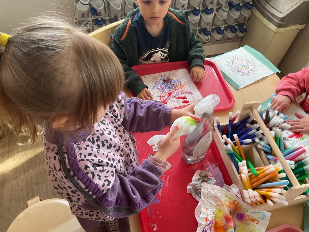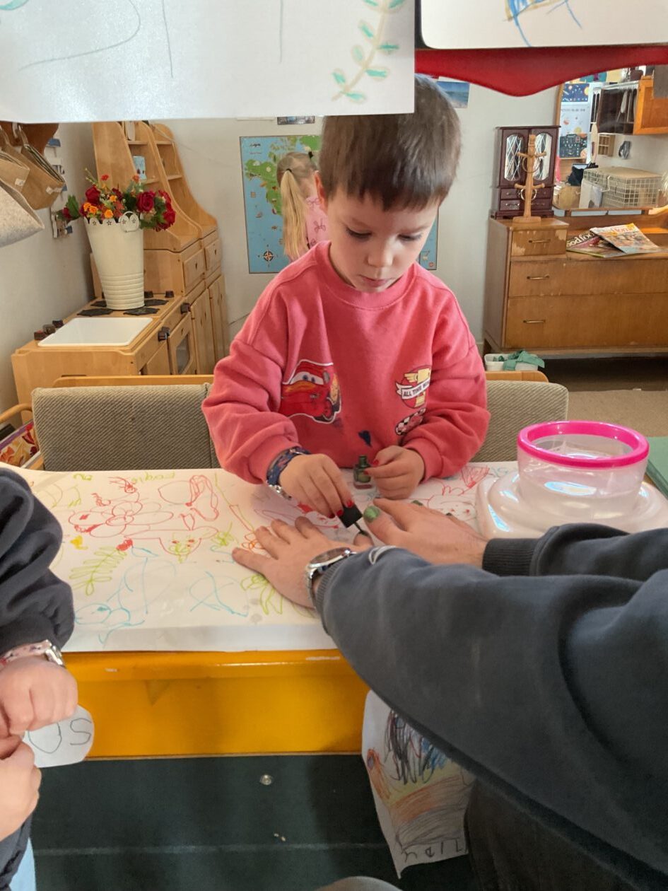 The bairns asked if we could deliver something to our neighbours next to nursery. They settled on Easter chick cards using shredded paper for feathers. The bairns also decorated eggs by drawing a pattern on a piece of kitchen roll, wrapping up their egg and spraying it with water to transfer the colour to their egg shell. The bairns asked for an egg hunt. We numbered the eggs and they matched them up the numbers on the table. Some of the eggs were very well hidden but not well enough for our intrepid hunters!