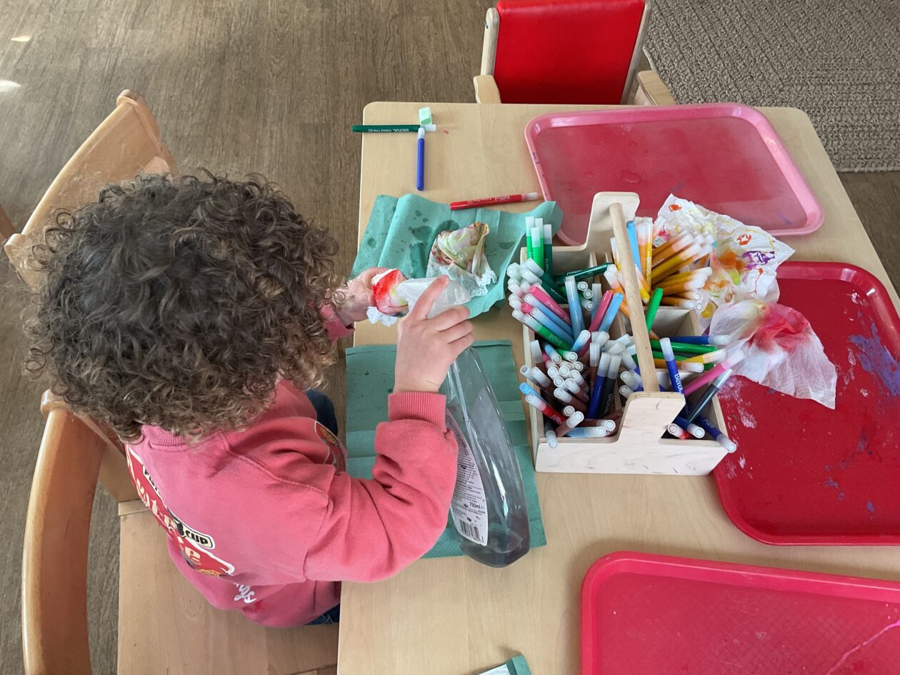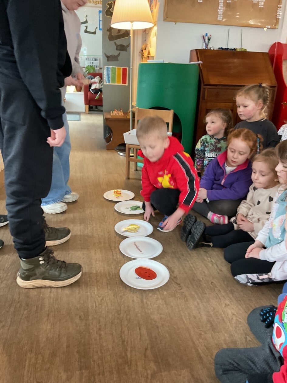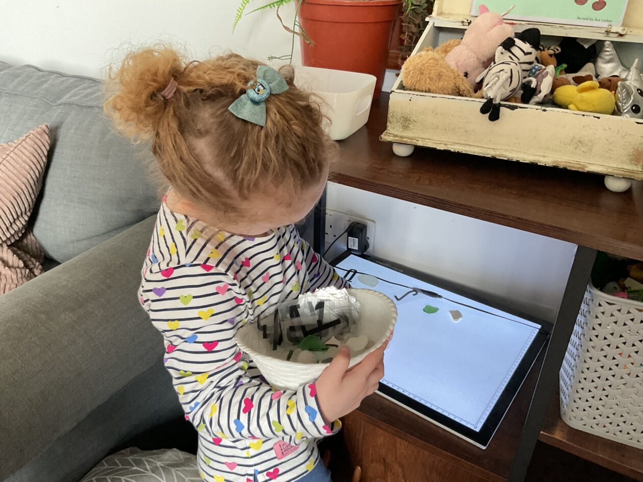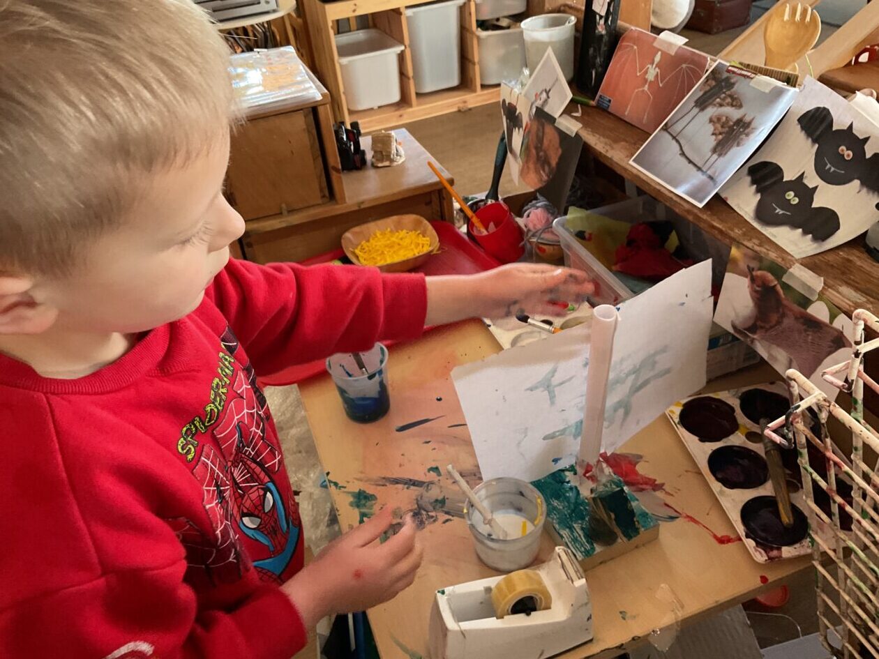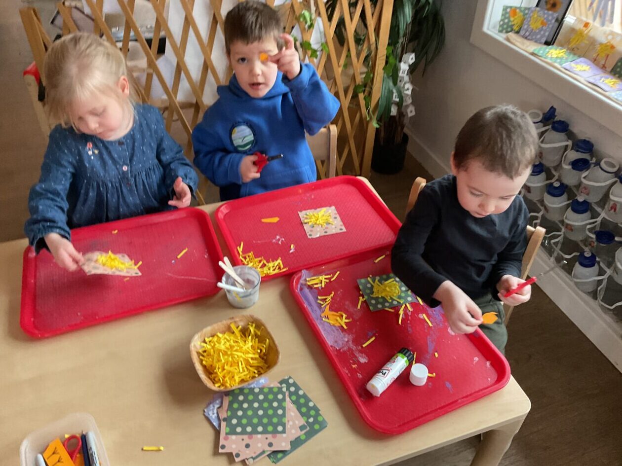 The bairns asked if we could deliver something to our neighbours next to nursery. They settled on Easter chick cards using shredded paper for feathers. The bairns also decorated eggs by drawing a pattern on a piece of kitchen roll, wrapping up their egg and spraying it with water to transfer the colour to their egg shell. The bairns asked for an egg hunt. We numbered the eggs and they matched them up the numbers on the table. Some of the eggs were very well hidden but not well enough for our intrepid hunters!