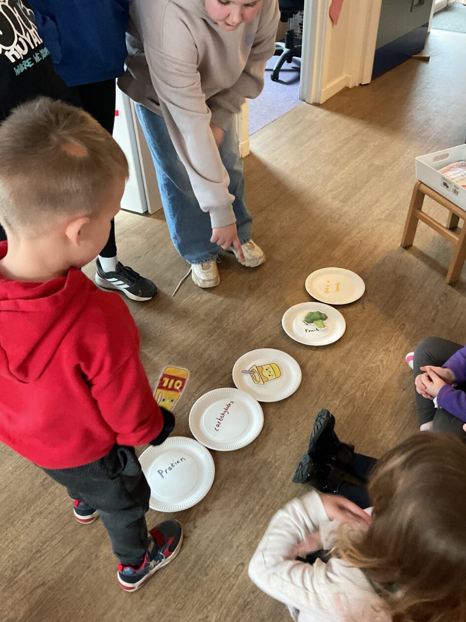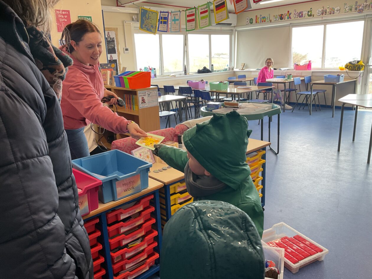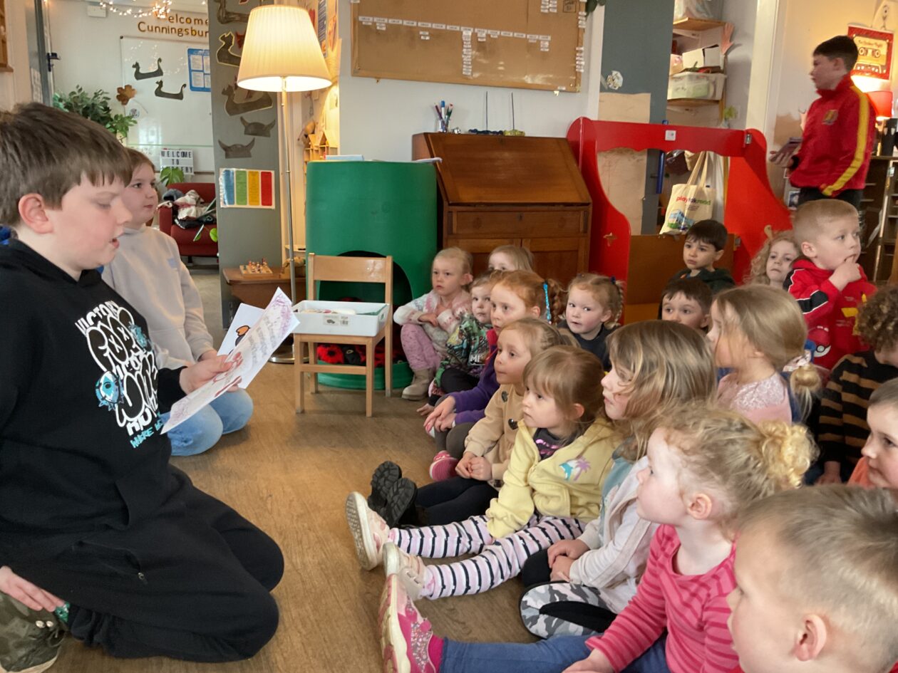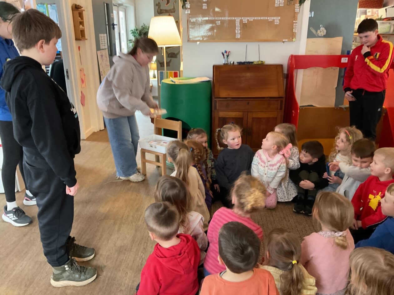We had a visit from some of the Primary 7 bairns who spoke about healthy eating, screen time and exercise. There were plenty of interactive games for the bairns to join in.