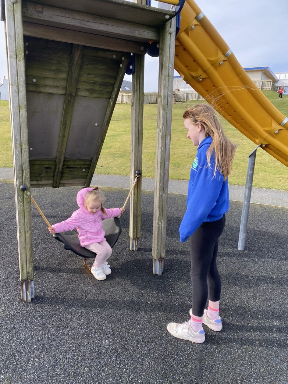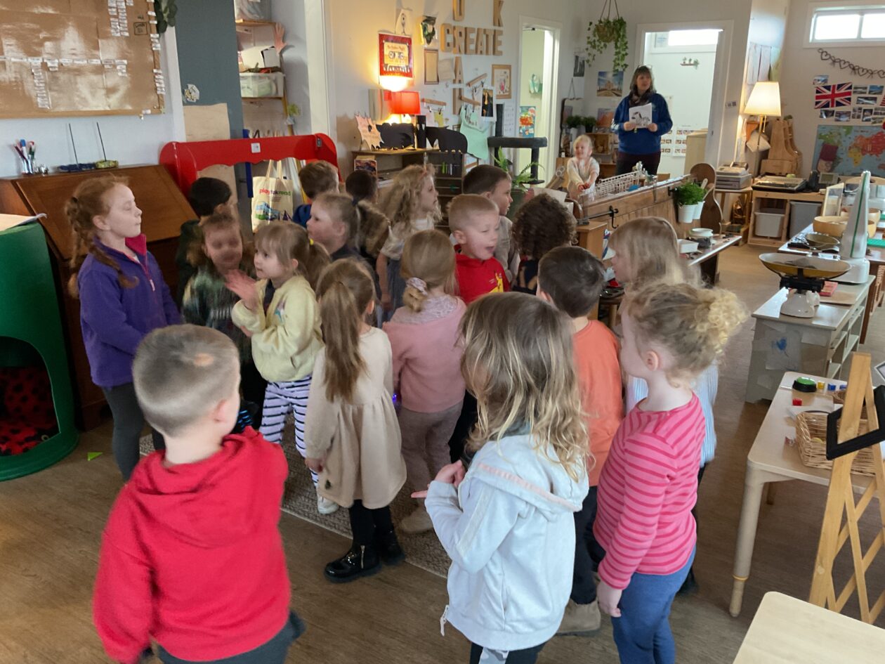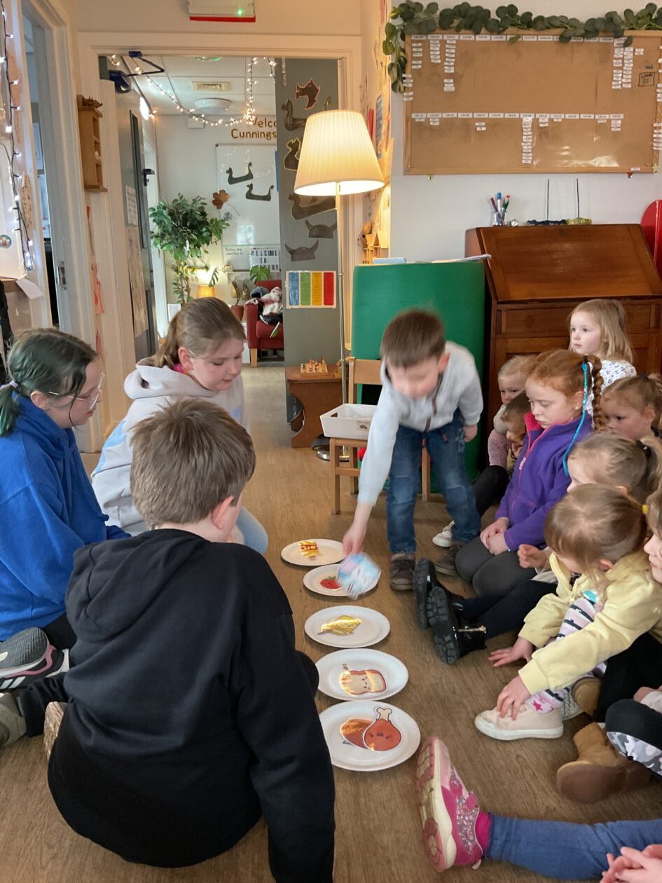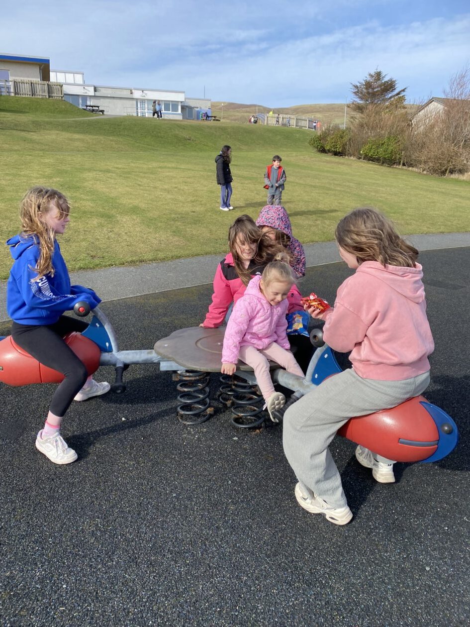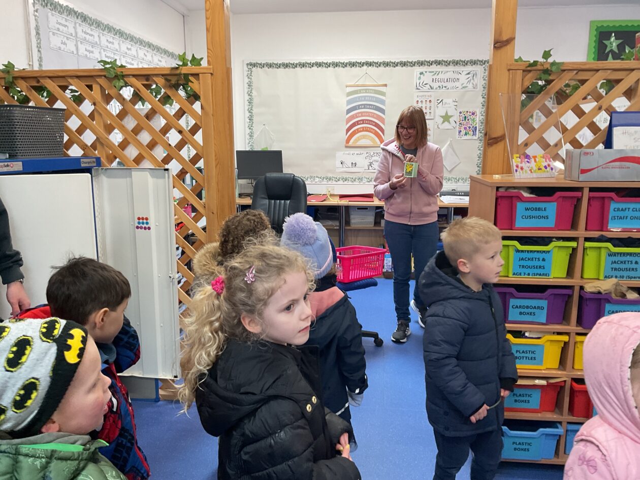 We had a visit from some of the Primary 7 bairns who spoke about healthy eating, screen time and exercise. There were plenty of interactive games for the bairns to join in.