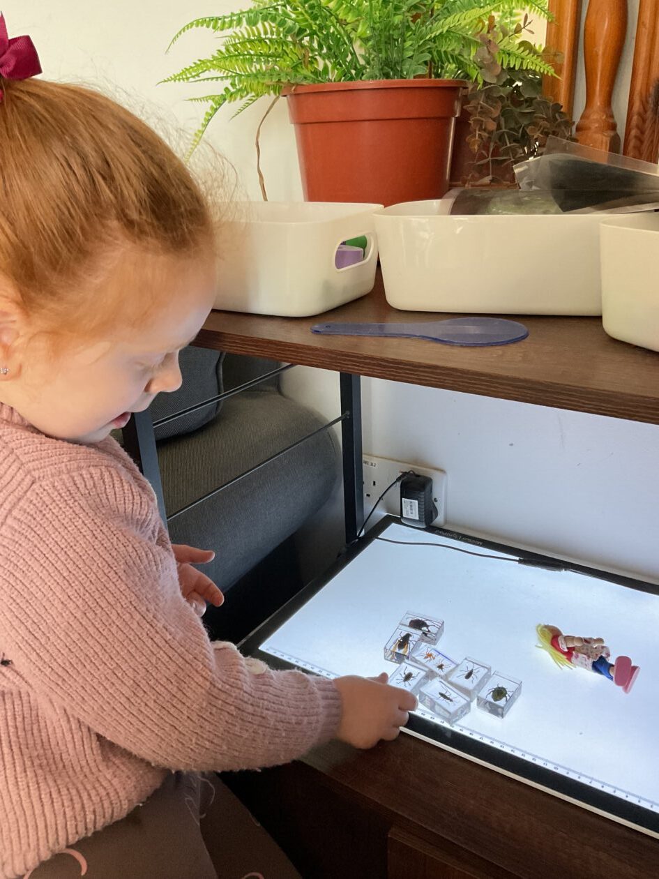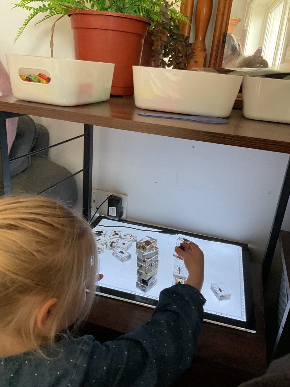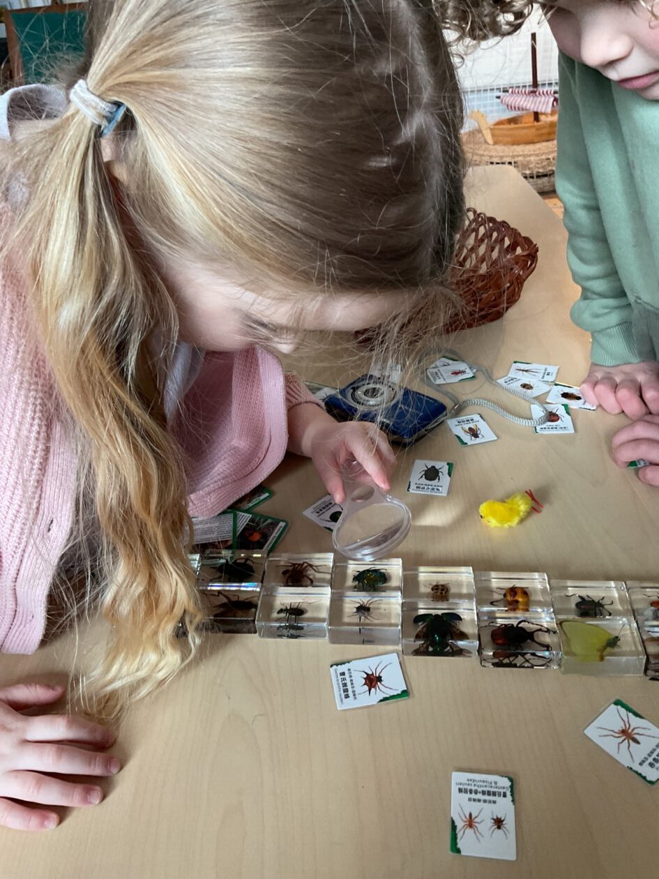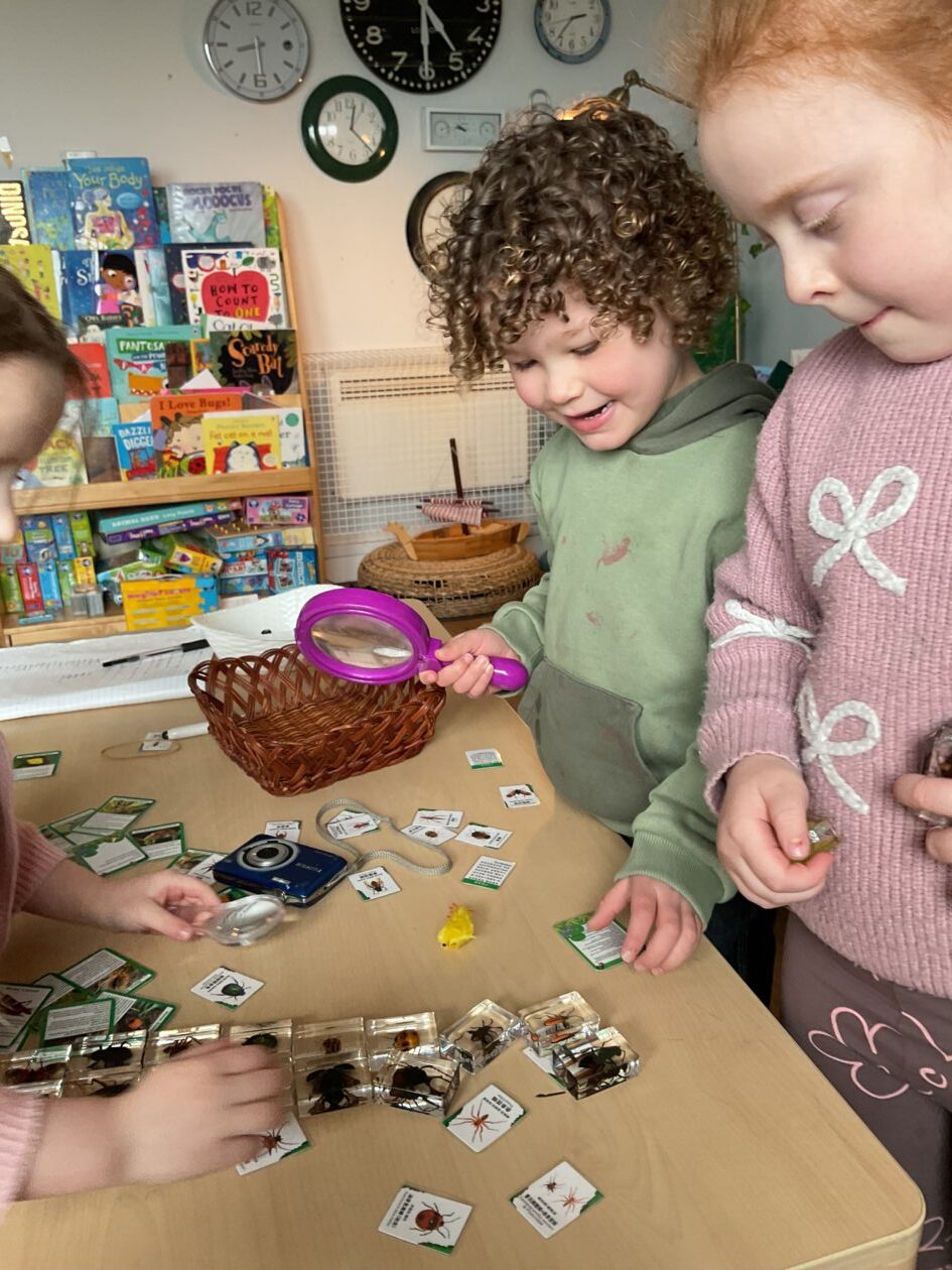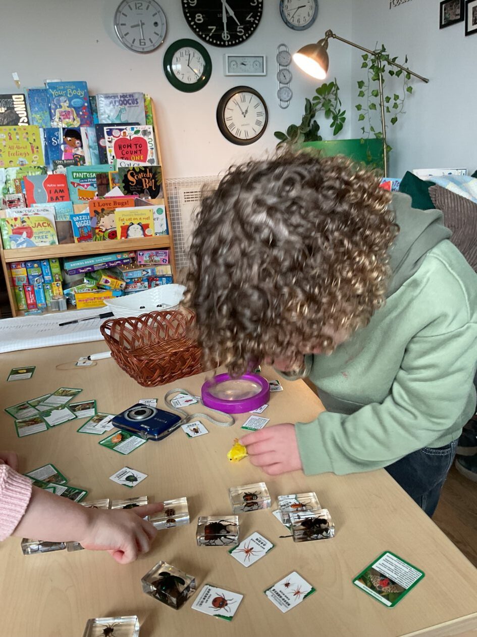 The bairns have been really interested in bugs. We were able to find a collection of bugs encased in resin. Their was rich discussion around their colours, texture and the number of legs. “What’s dis one? It looks creepy!” The bairns also used magnifying glasses to get a closer look.