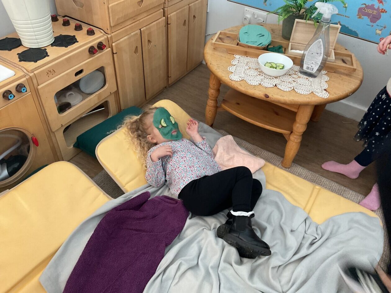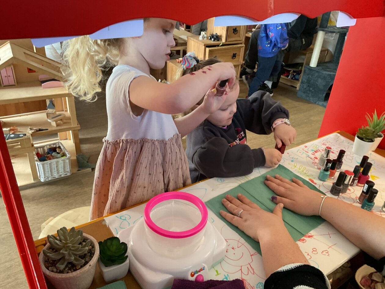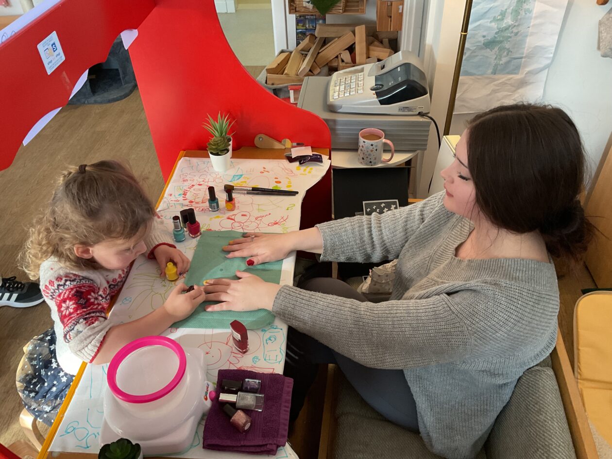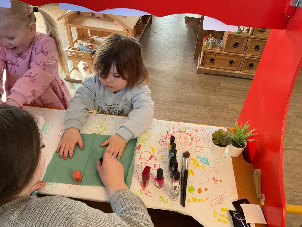 The bairns set about decorating their spa with pictures and signs. They laid out towels, blankets and mats. The bairns phoned to make an appointment for their treatment. When they arrived at the spa, they chose their nail polish colour, a tattoo and they could use the Orbeez hand and nail spa. The spa was a very popular place and there were even some appointments left for the adults!